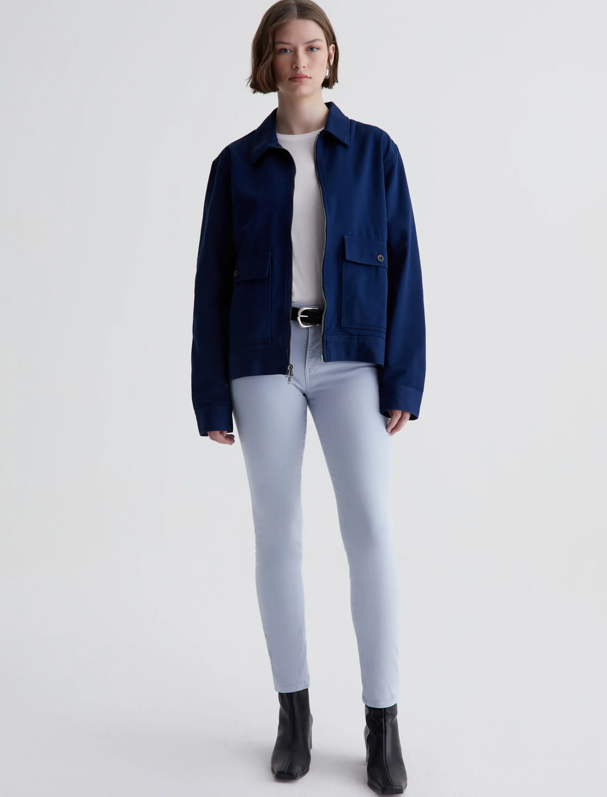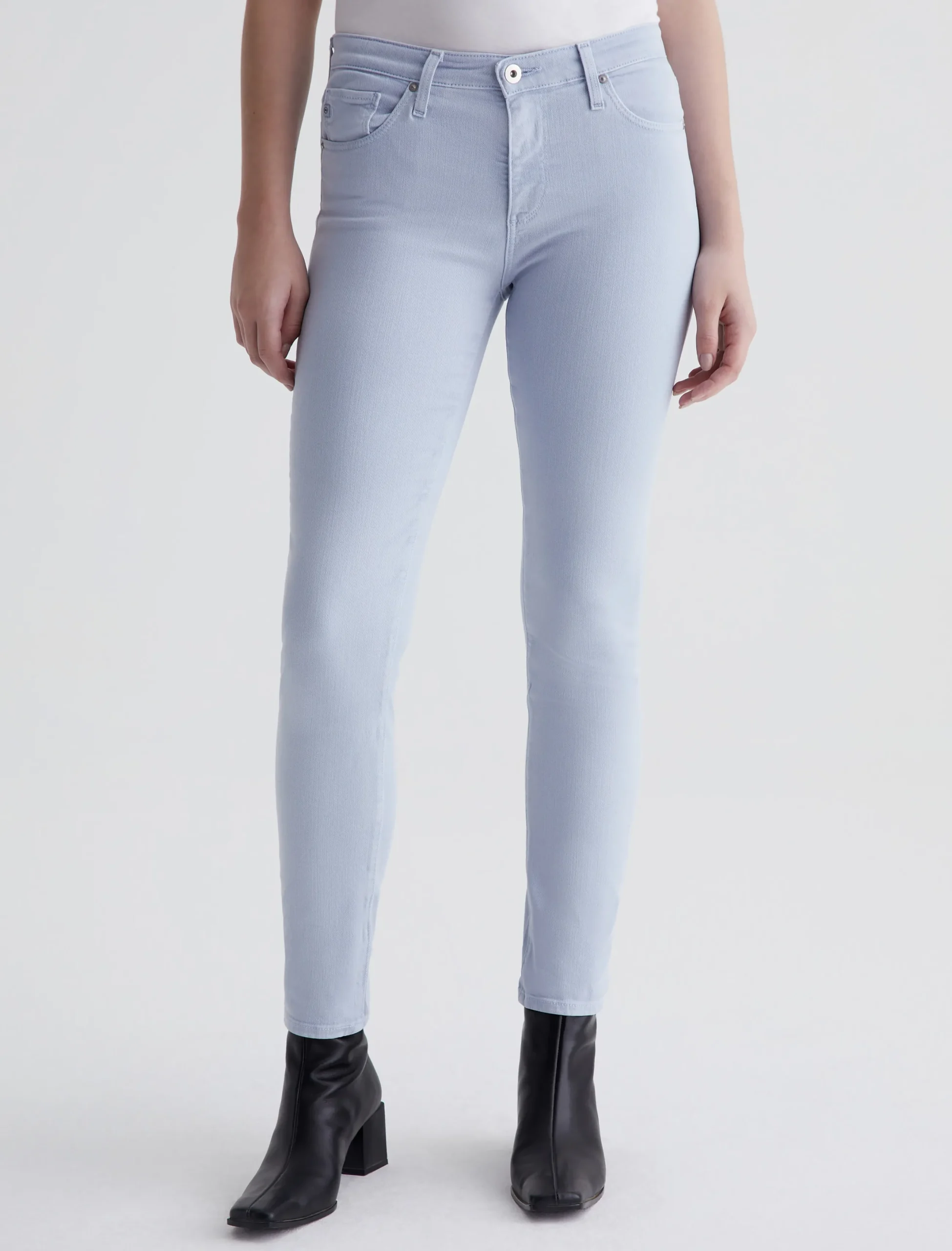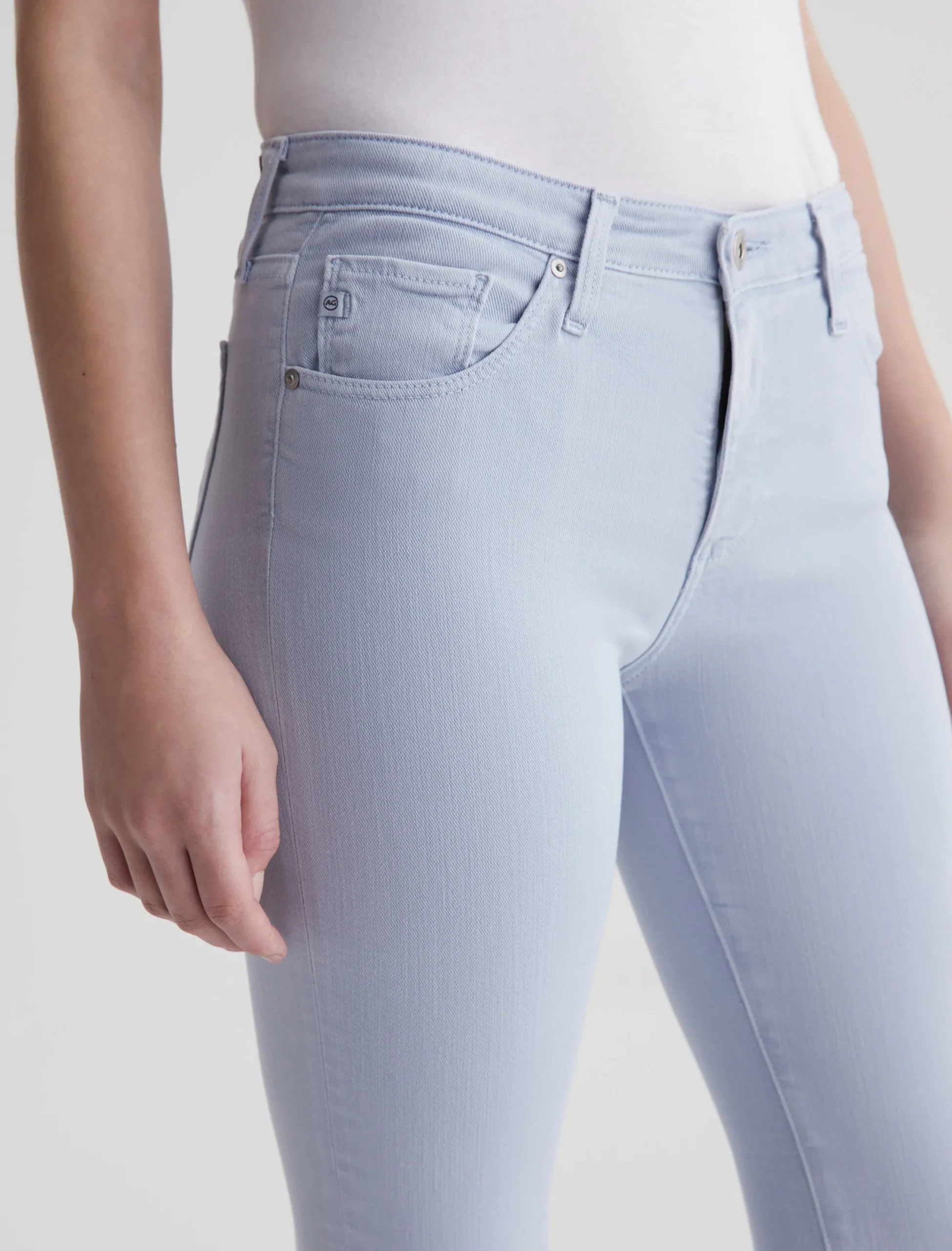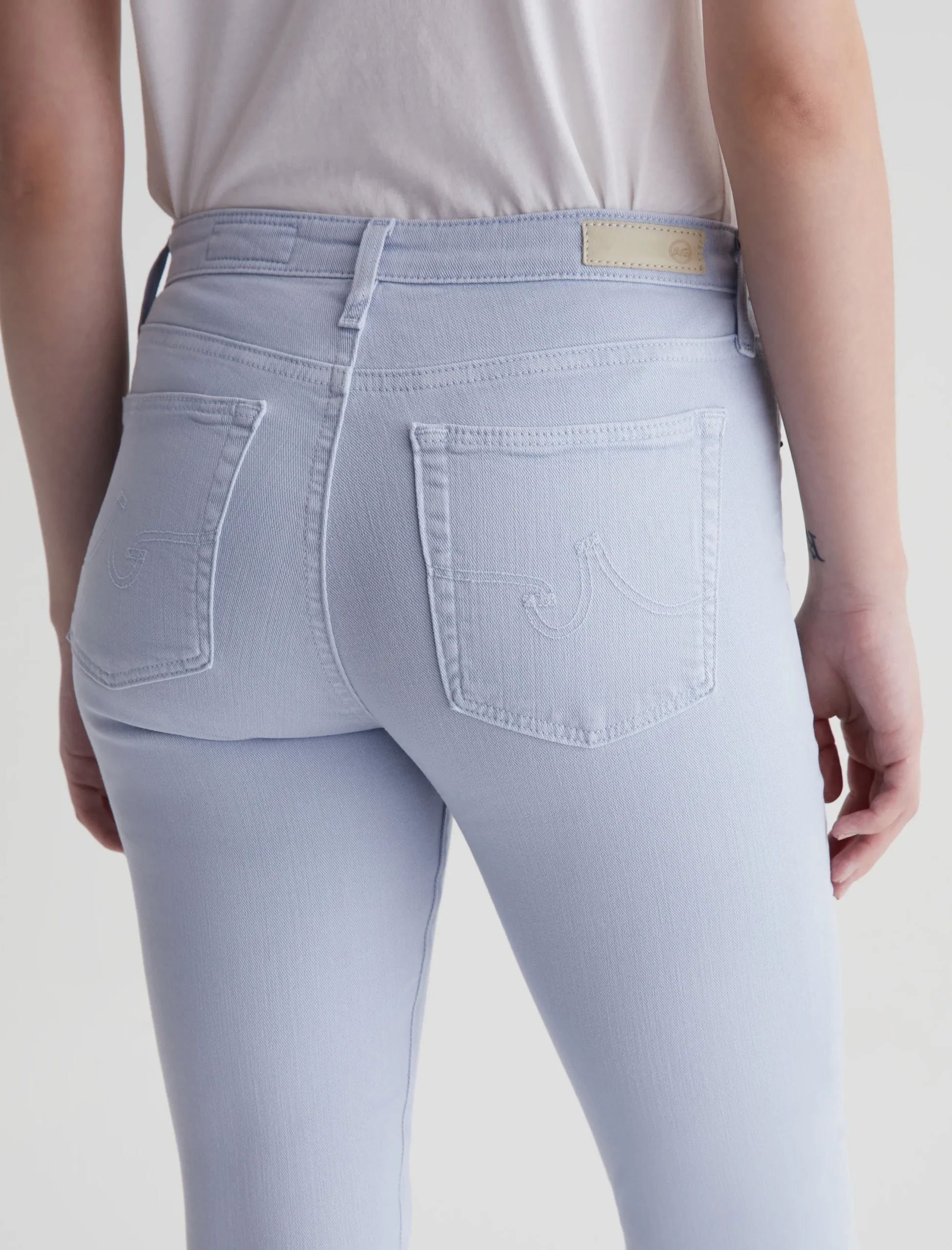 The Prima Ankle is a mid-rise cigarette jean with a fitted silhouette through the hips, slight tapering at the legs, and cropped hems that sit right at the ankle. Part of our exclusive AG Cloud Soft Denim™ offering, these women’s jeans are designed in 9.7 oz. Hyper-Soft Stretch Denim. This left-hand twill fabric has special construction that allows the yarns to gently relax and untwist for a luxe, supple feel. It’s designed to get softer with every wear.
