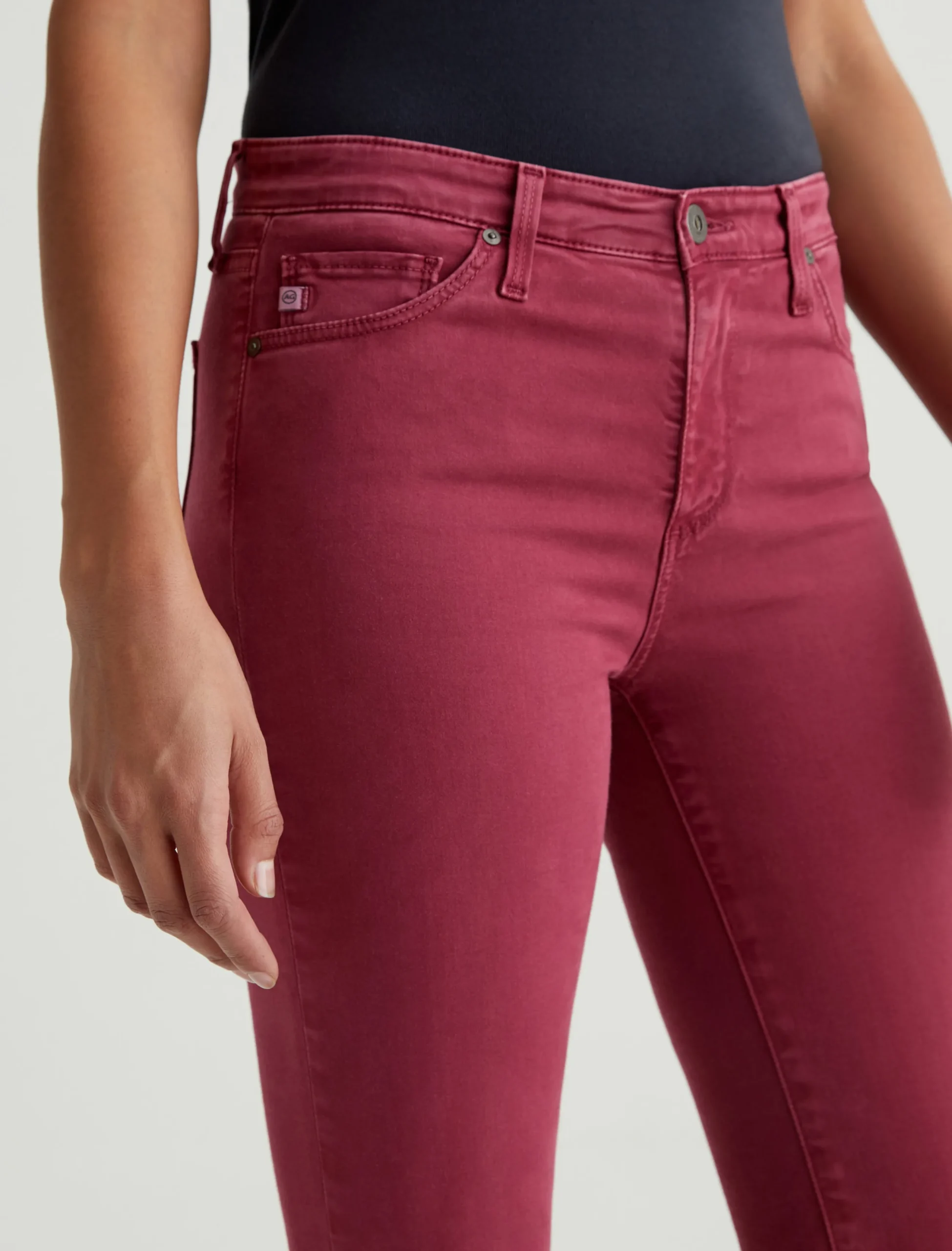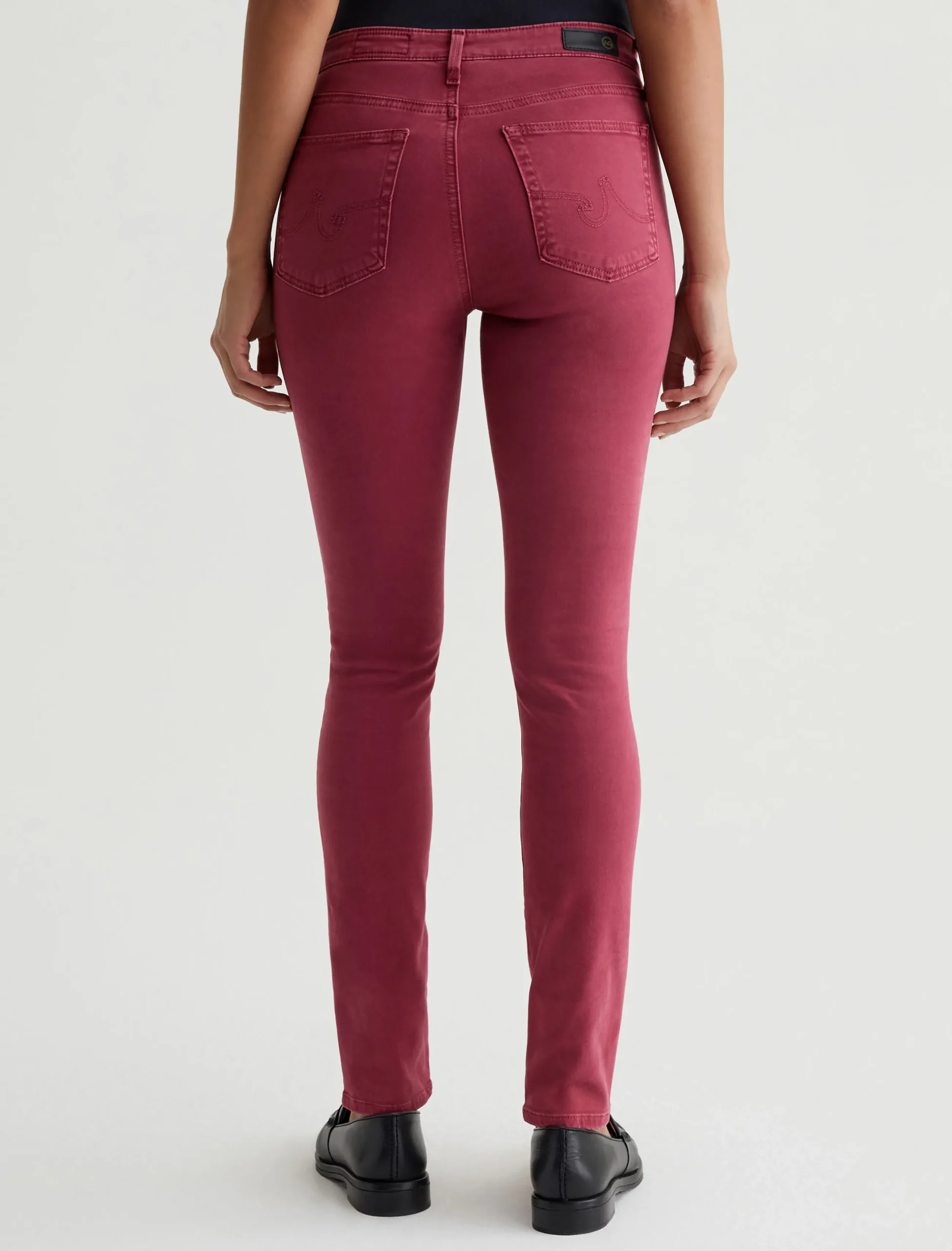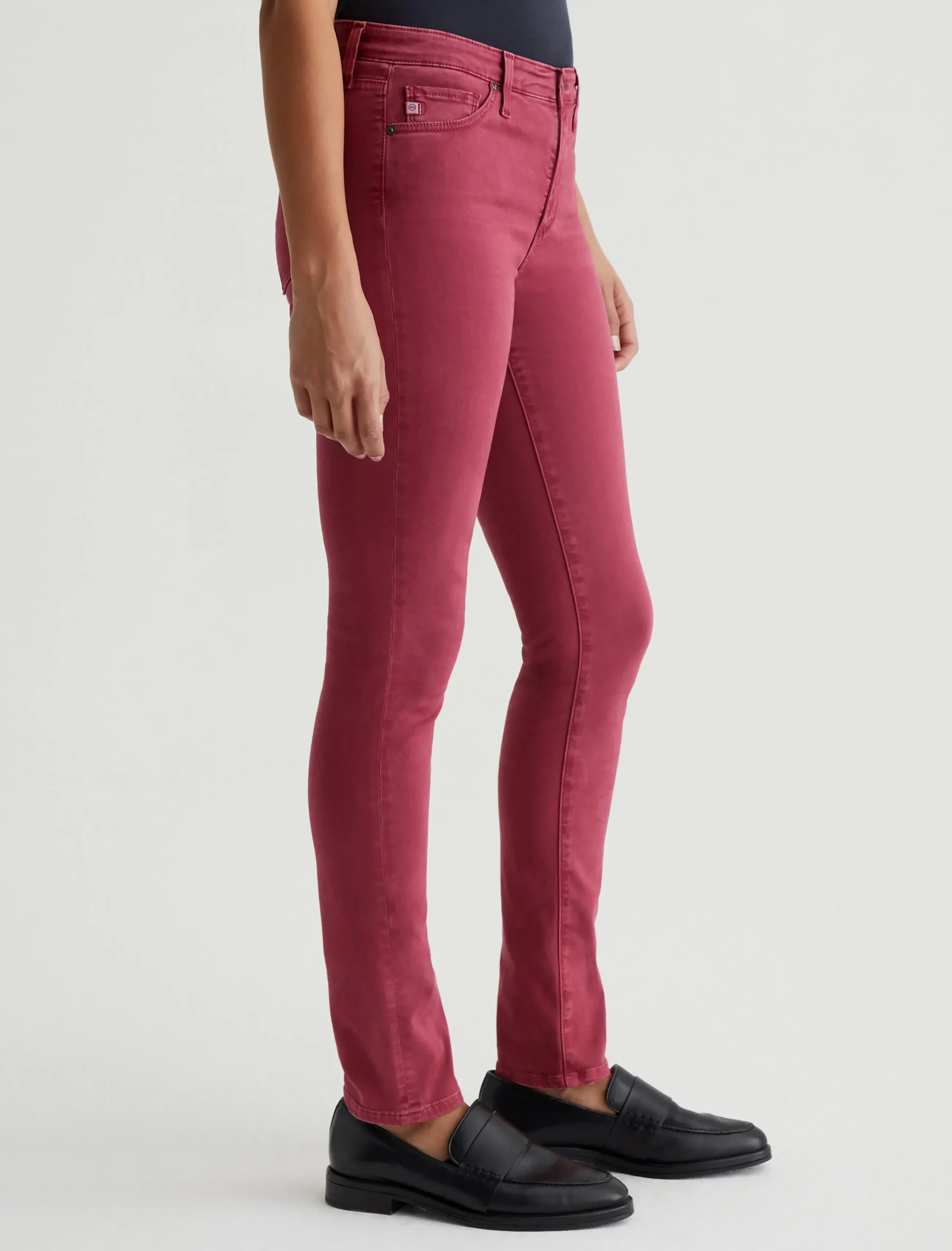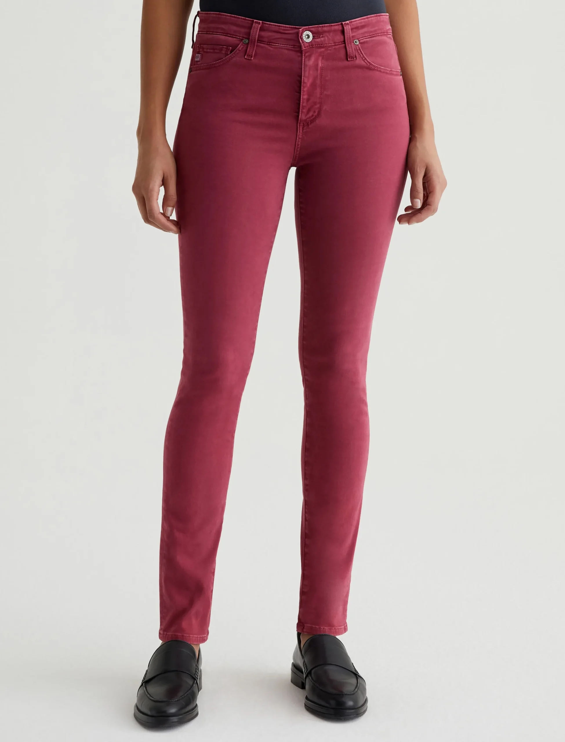 Prima is a mid-rise cigarette pant for women, updated in a rich burgundy color with subtle fading at the seams and edges. Fittedthrough the hips with slight tapering at the legs, this pair comes in 7.8 oz. Luscious Super Stretch Sateen that’s lightweight and comfortable with flexible construction.