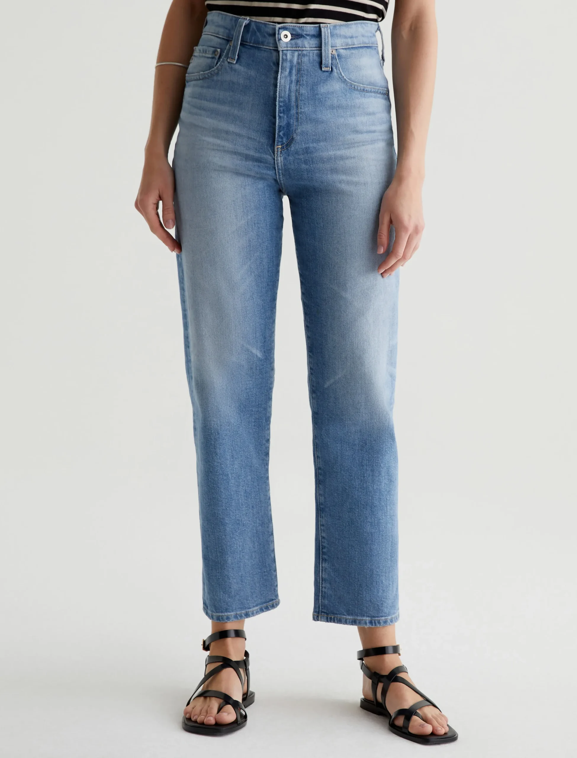 A high-rise straight with the perfect vintage-inspired fit. Rian features a super-high waist and a roomy cut through the hips and legs, finishing at an ankle-skimming length. These women’s straight-leg jeans are made from 11.75 oz. Vintage Comfort Stretch Denim in a light indigo wash. It’s got a 22-year AG-ed™ finish, complete with an authentic fade pattern and subtle wear at the pockets and hems.