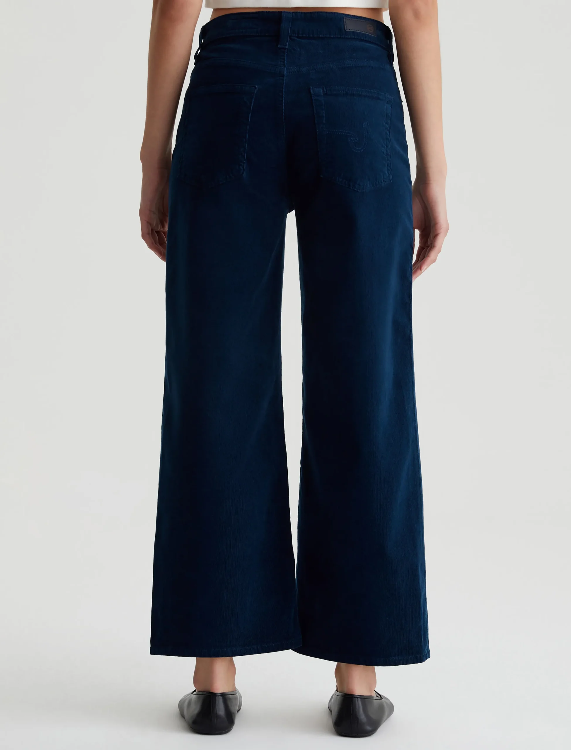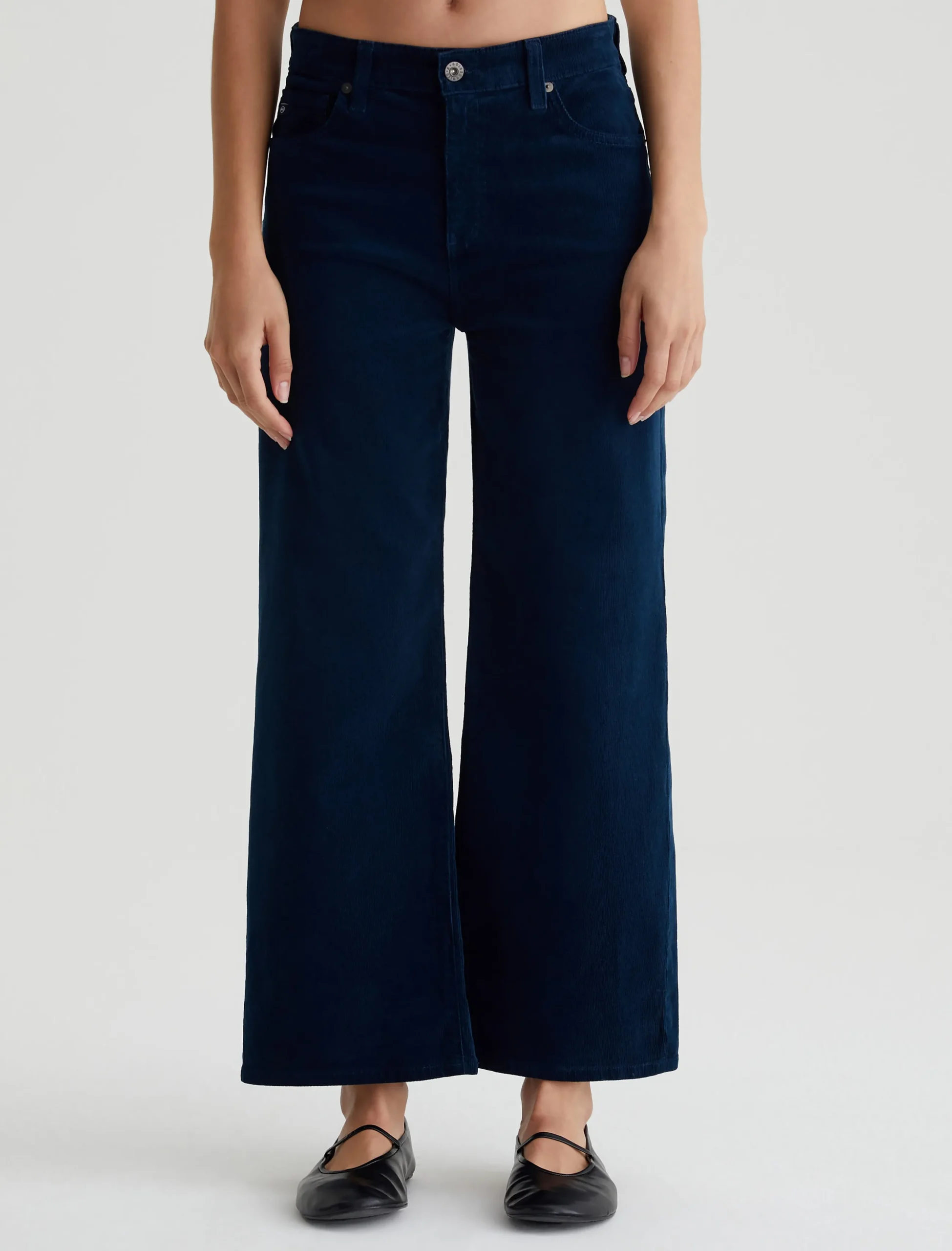 Our Saige Wide Leg Crop features velvety-soft stretch corduroy in a deep, oceanic blue shade. A mid-rise silhouette with loose, cropped legs, this pair can easily be dressed up or down to take your look from daytime to nights out.