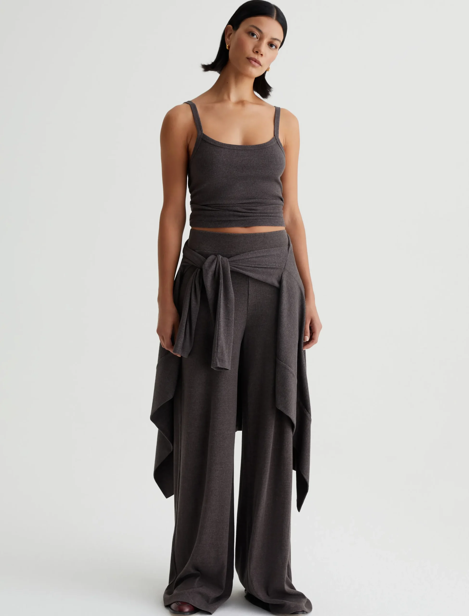 Perfect for lounging, our Sourie wide-leg pants are relaxed and easy to wear in a cozy mélange rib knit. The pair slips on effortlessly and stays comfortable thanks to its elasticized waist. Layer on our matching tank and cardigan for a set that’s got year-round potential.
