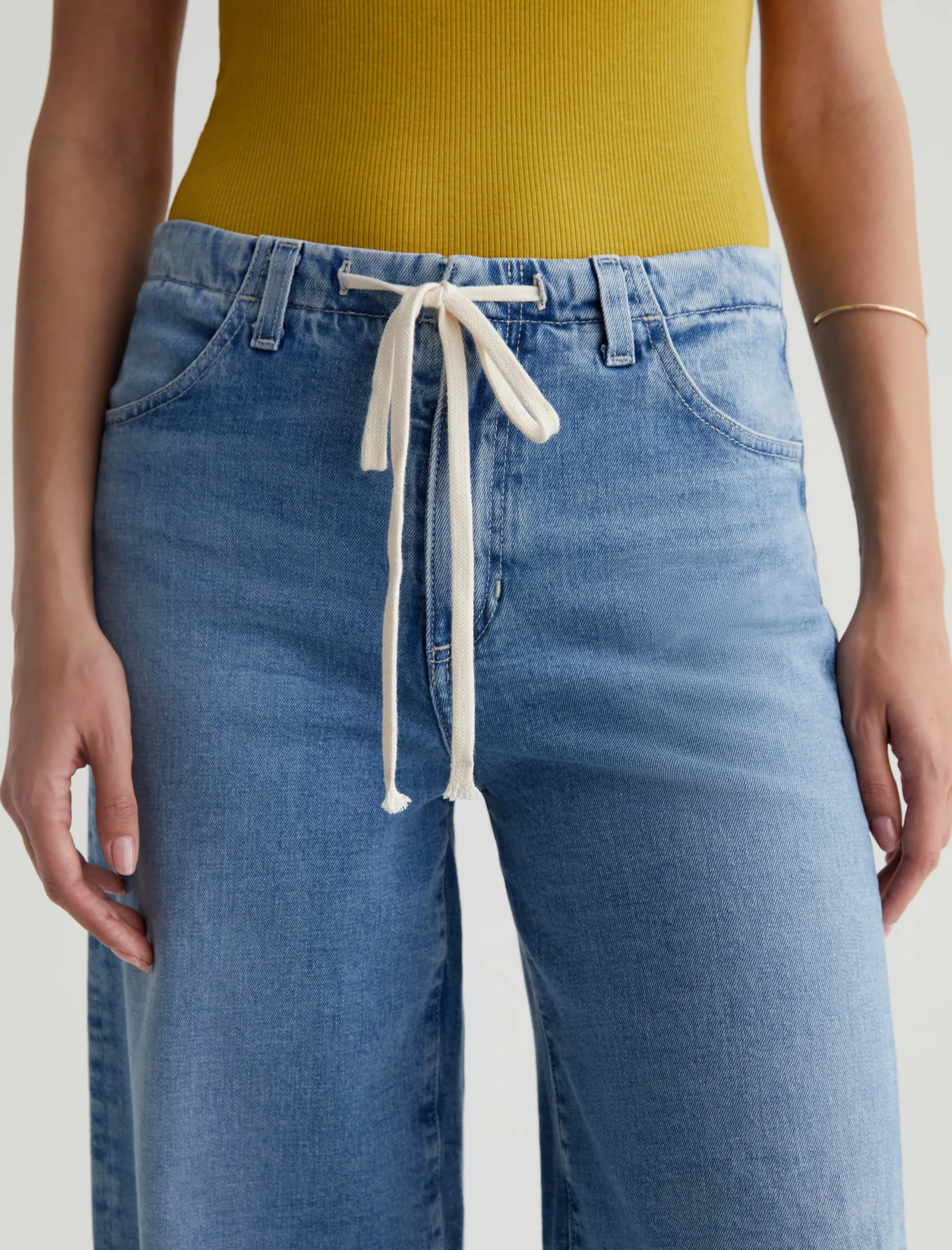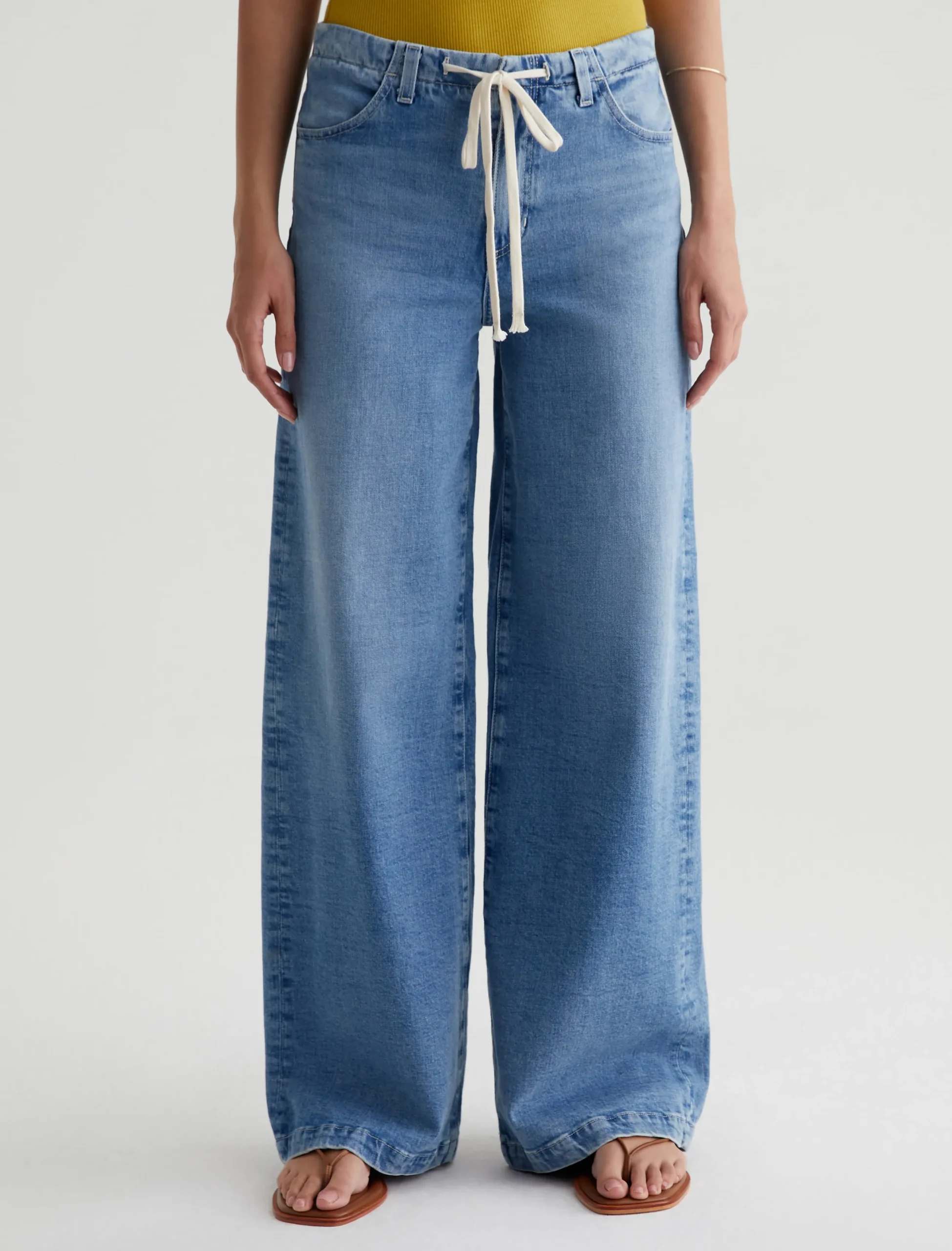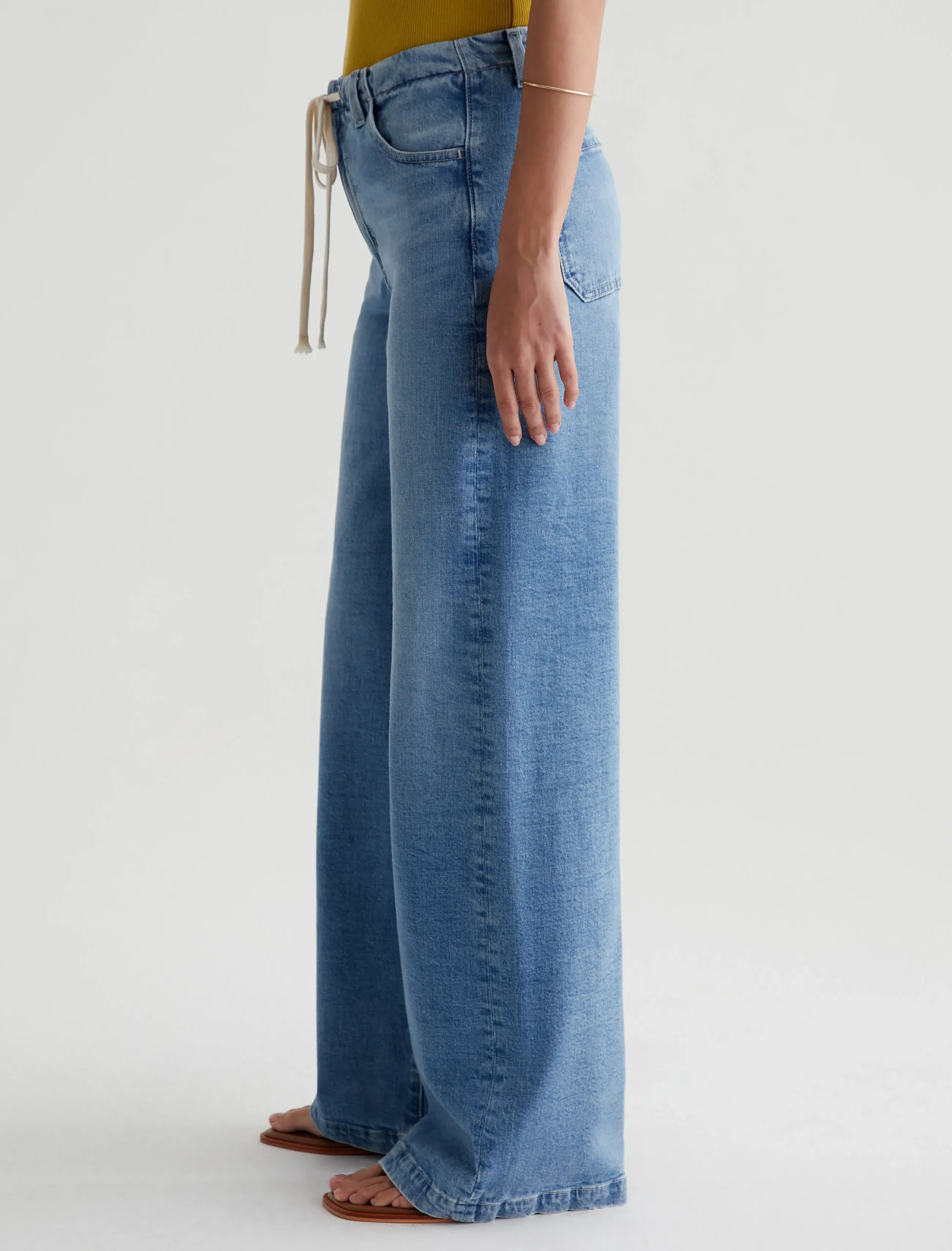An easy-wearing update to our best-selling Stella Palazzo pants. Slung low on the waist and cinched by a contrasting cotton tie, this wide-leg pair comes in 11 oz. Journey Denim with a comfort stretch and a faded indigo wash. It’s the ideal balance of laid-back and sophisticated styling.