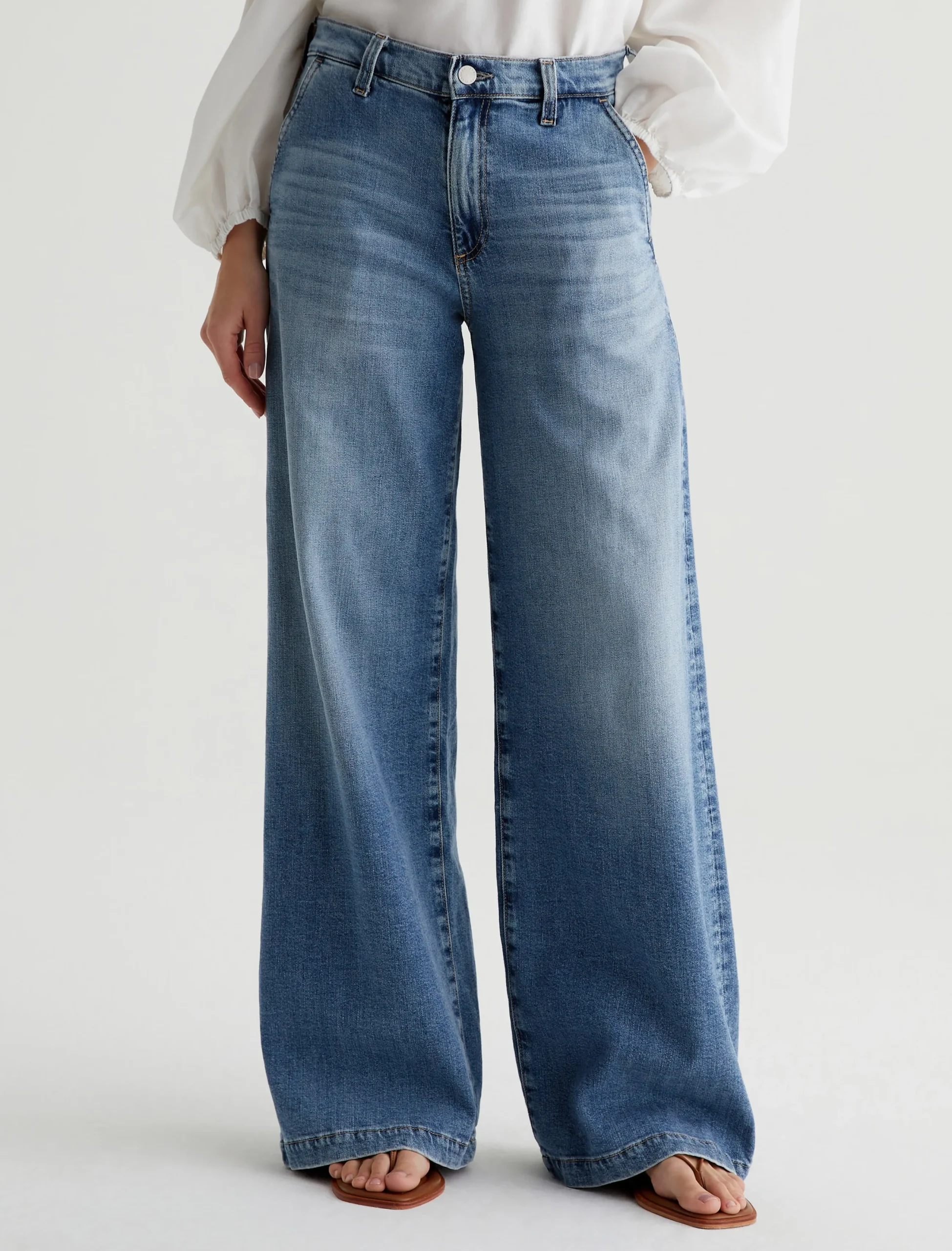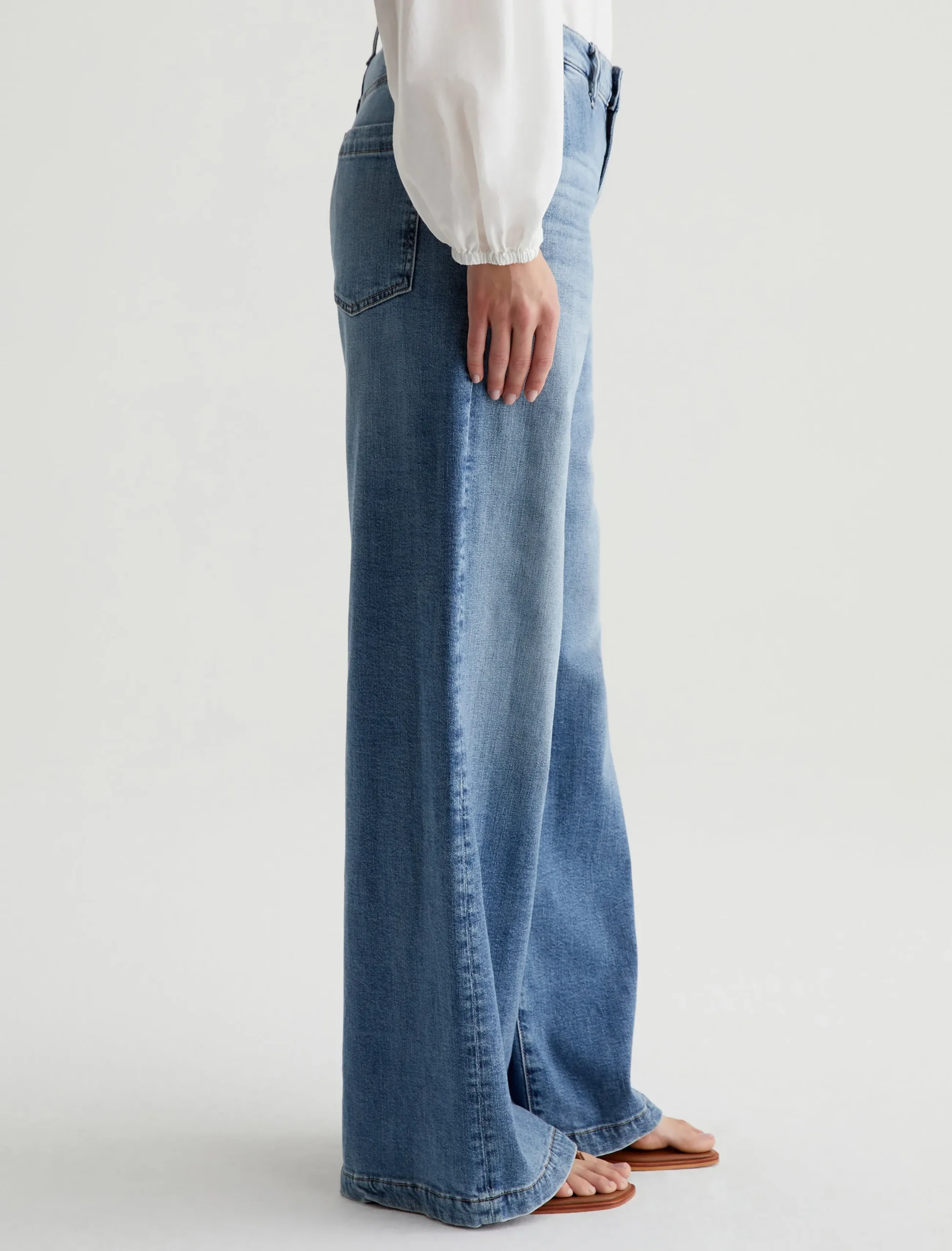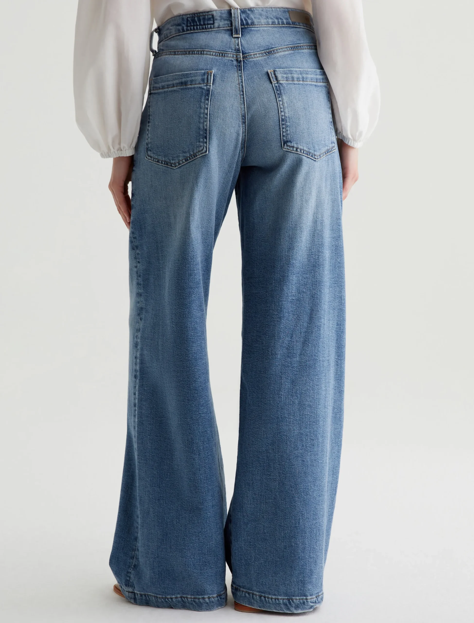Our Stella palazzo pants are designed to be slung low on the waist and feature a super-wide cut through the legs. Crafted from 10 oz. Daytripper Stretch Denim, these wide-leg pants come in a light indigo wash with fading and whiskering. Slant pockets finish the look.