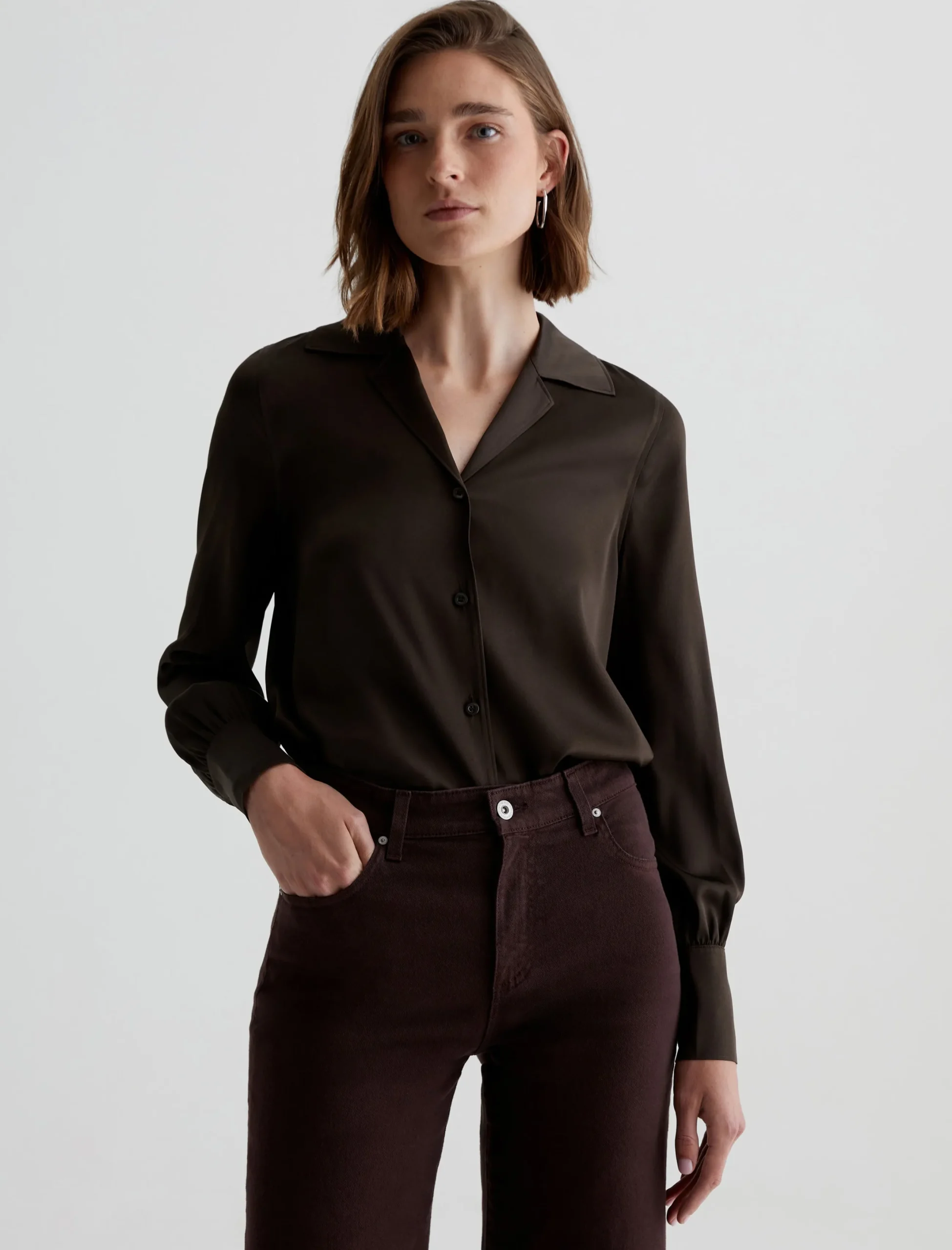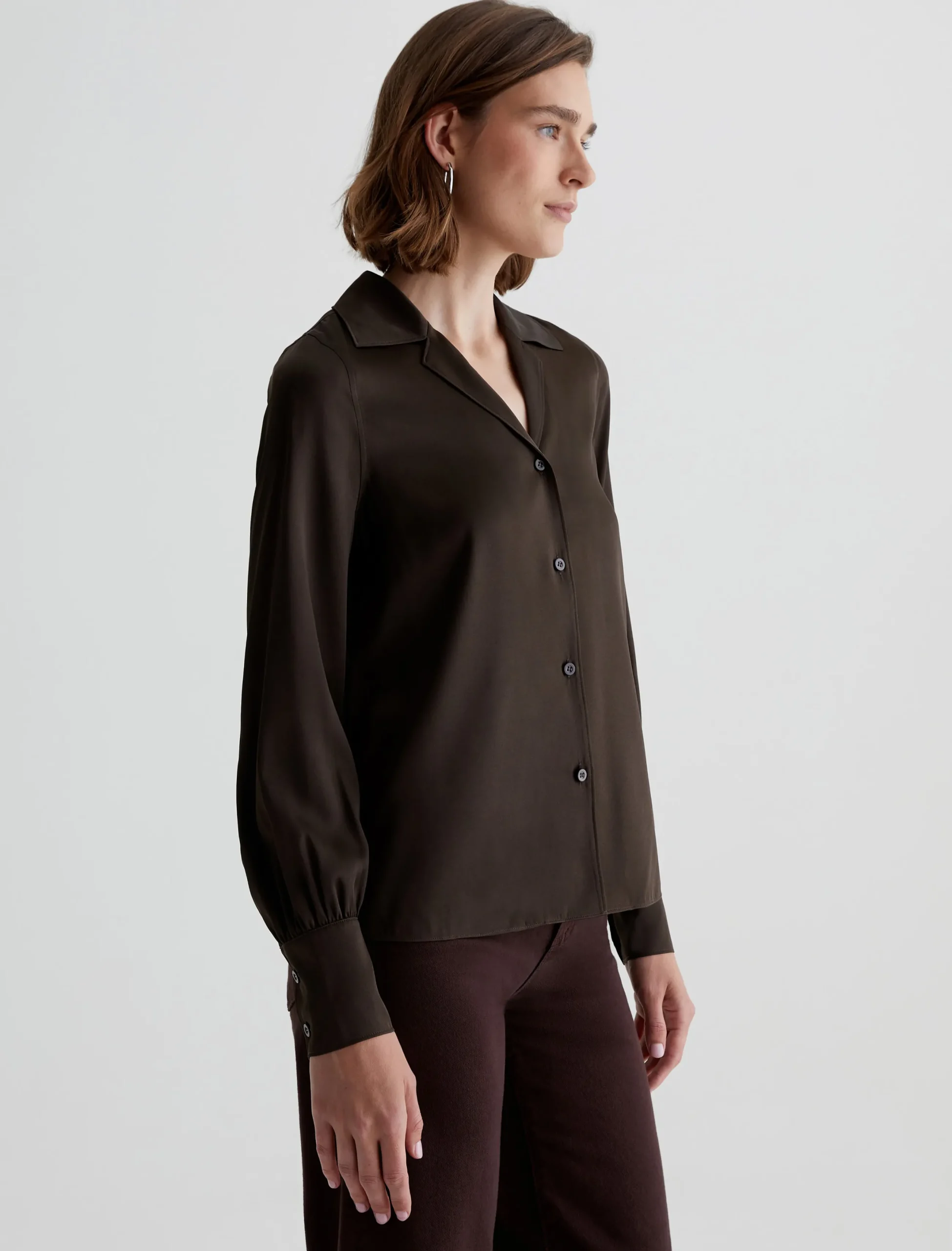 Perfect for any season, the Valerie Blouse is crafted from lustrous silk twill woven with a touch of stretch. A notched collar opens the neckline, while puffed sleeves add subtle volume.