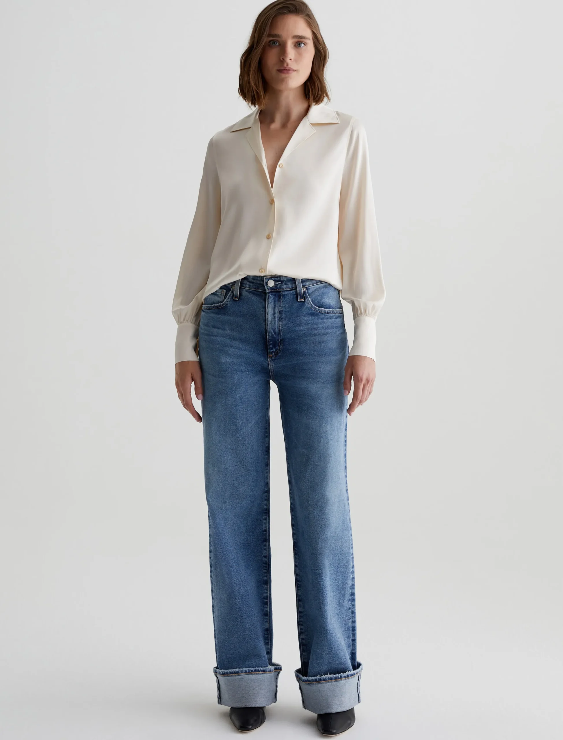 Perfect for any season, the Valerie Blouse is crafted from lustrous silk twill woven with a touch of stretch. A notched collar opens the neckline, while puffed sleeves add subtle volume.