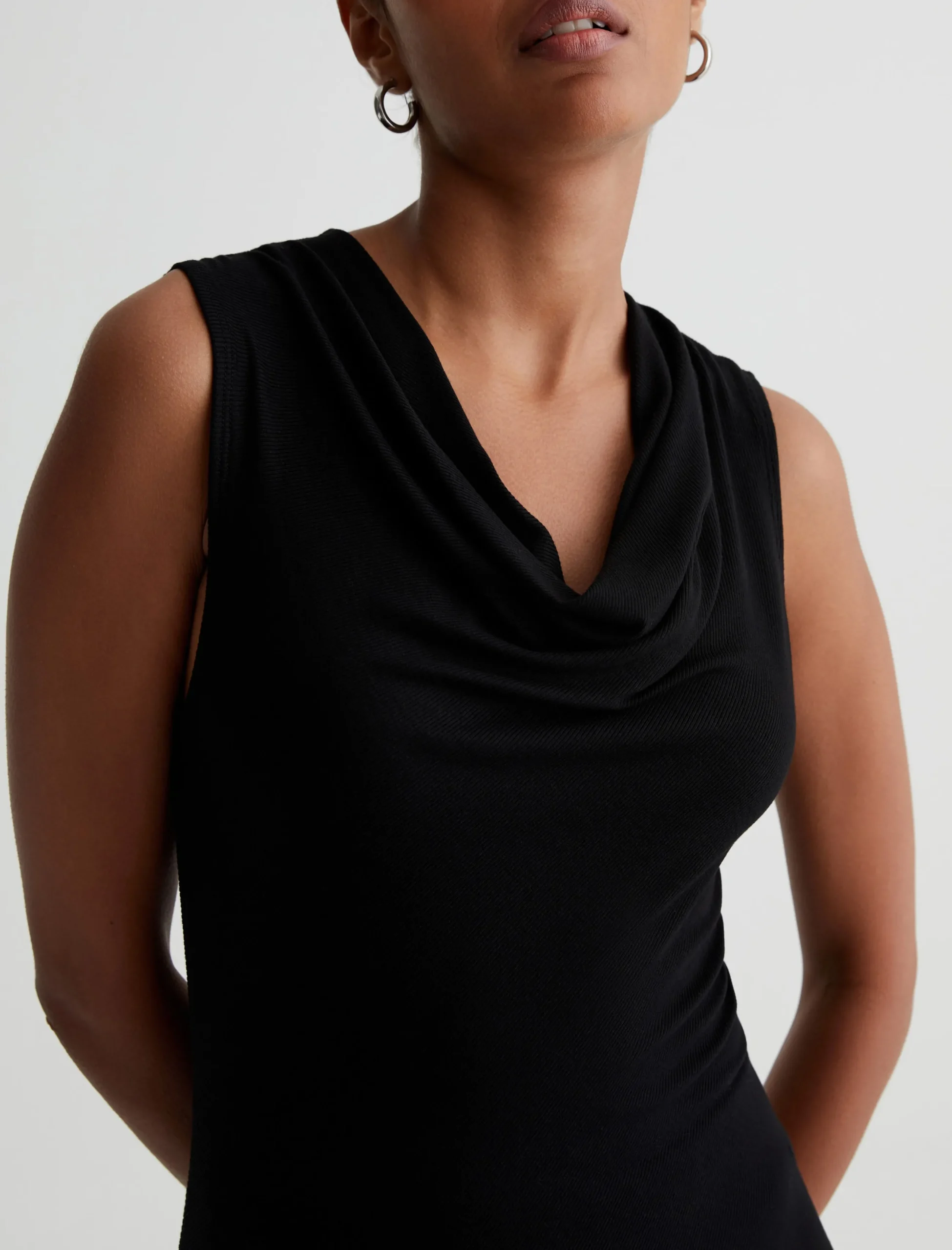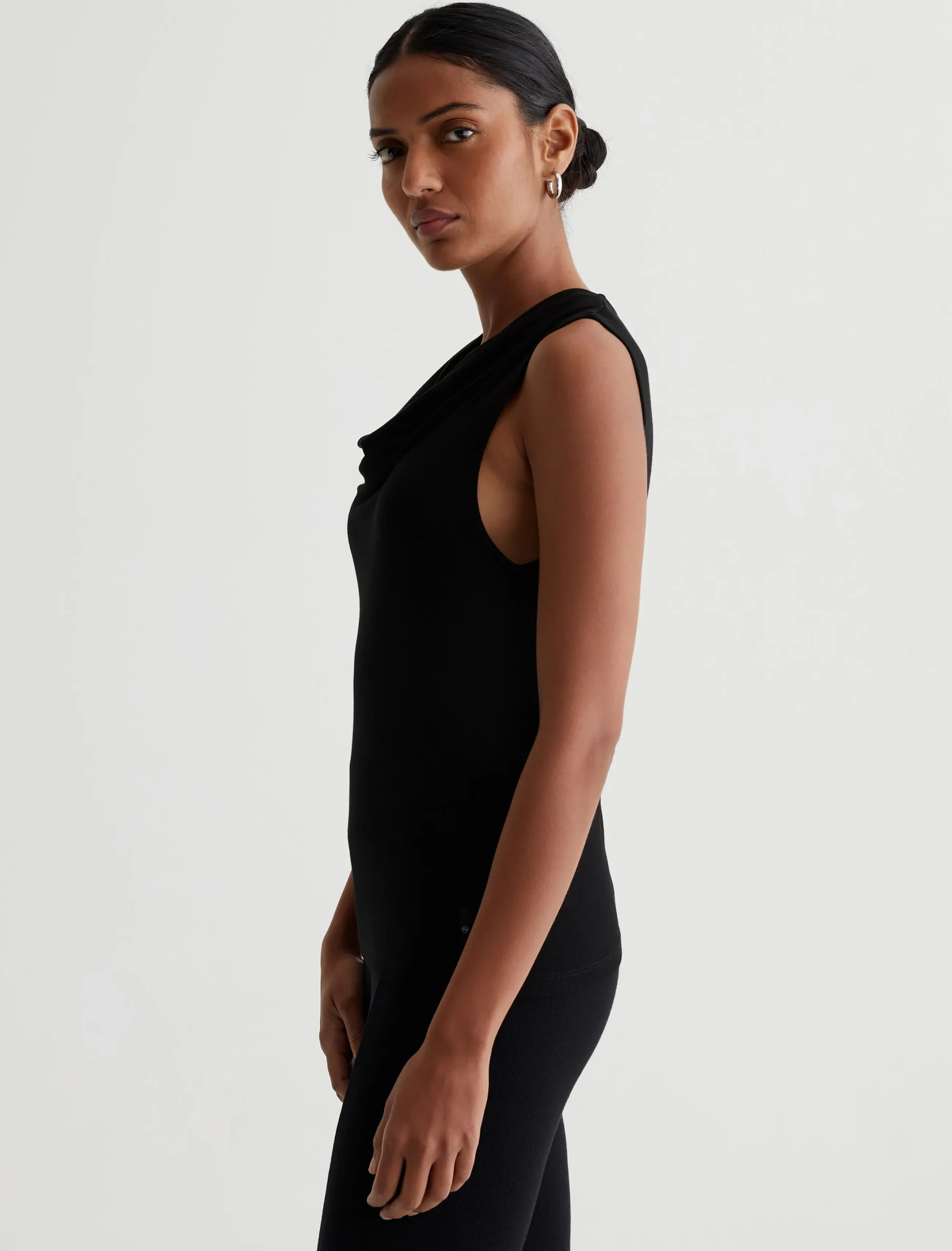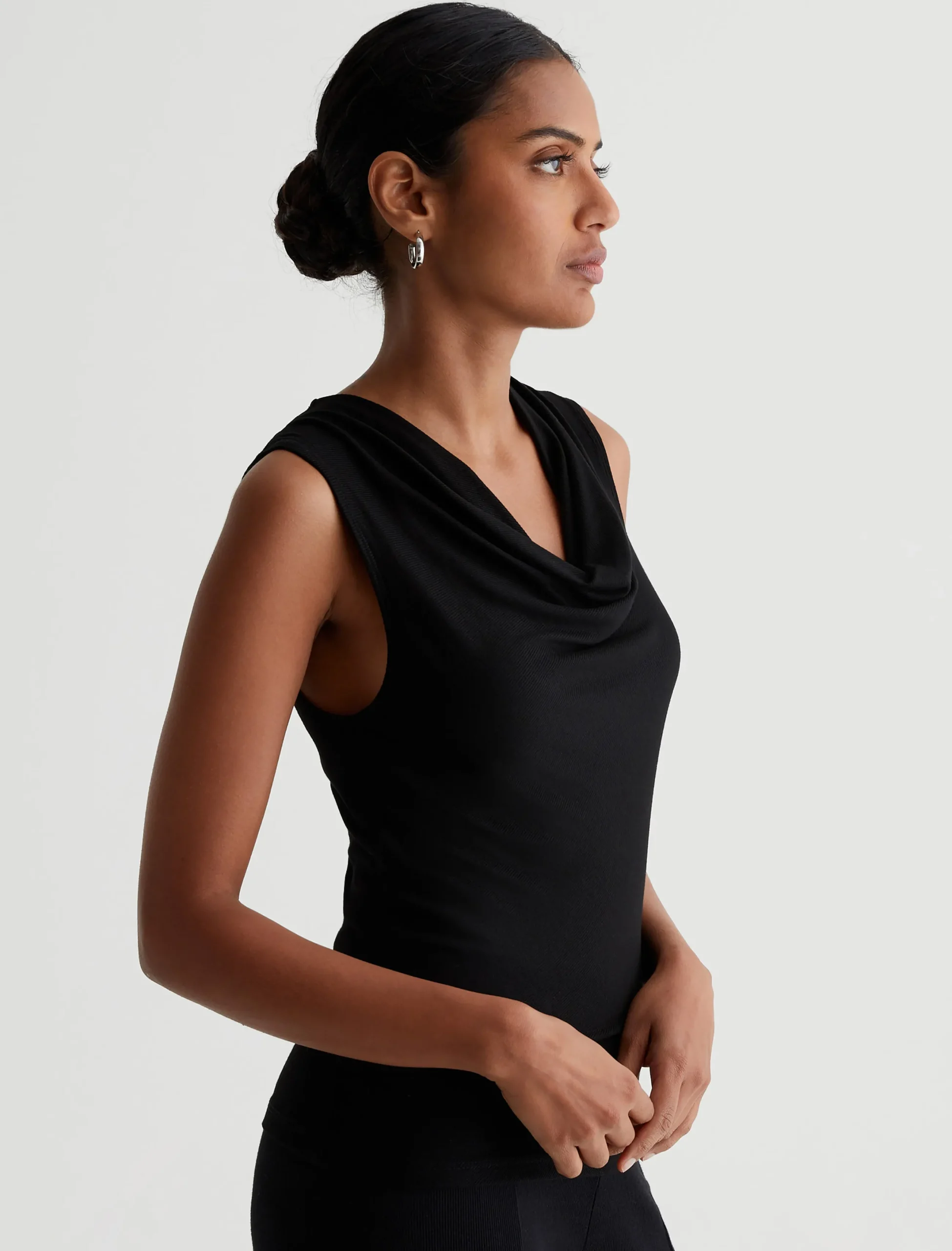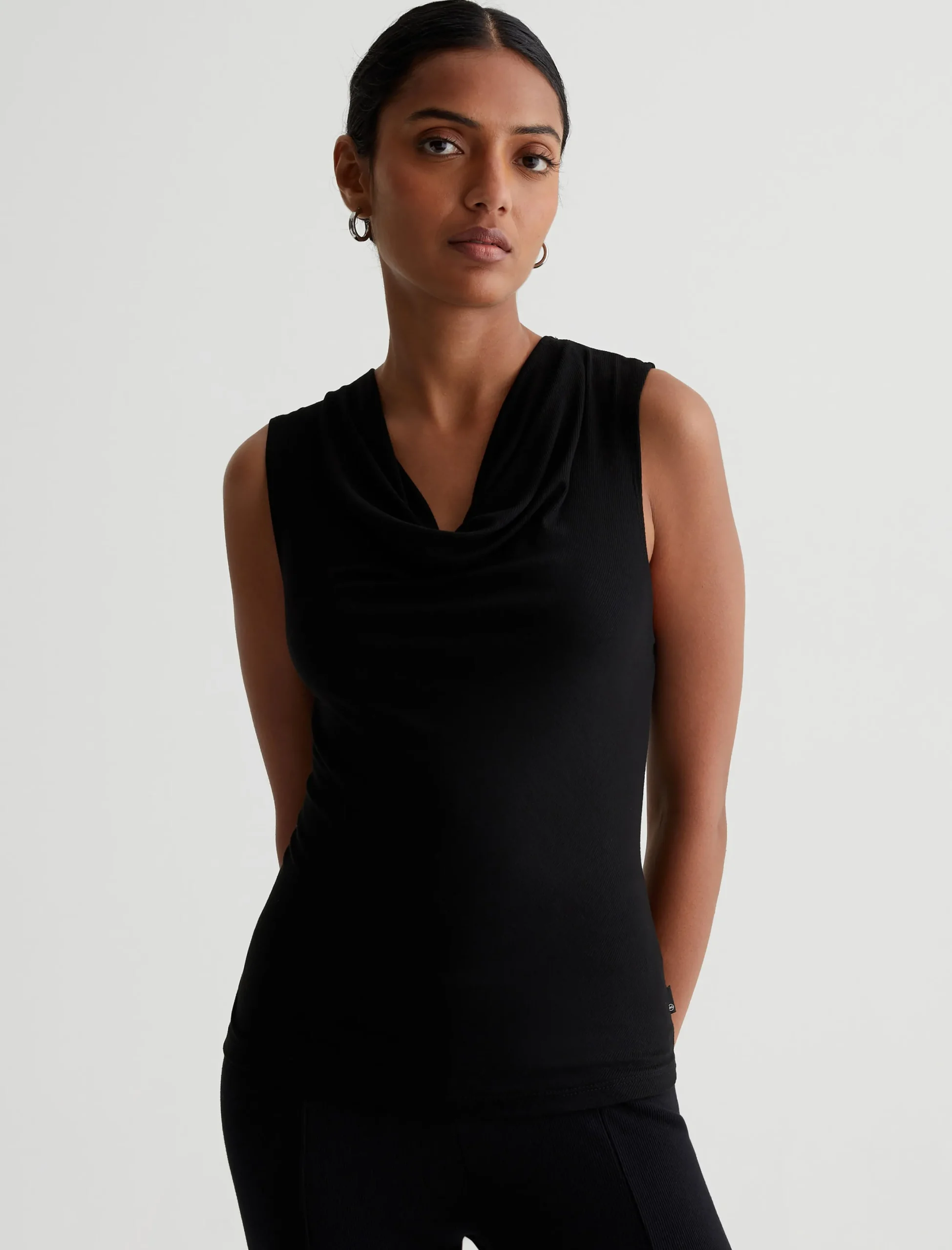The Vibia Top has a slim fit with a draped cowl neckline. It’s cut on the bias in 2×1 Lyocell Rib for an ultra-flattering silhouette and soft stretch comfort.