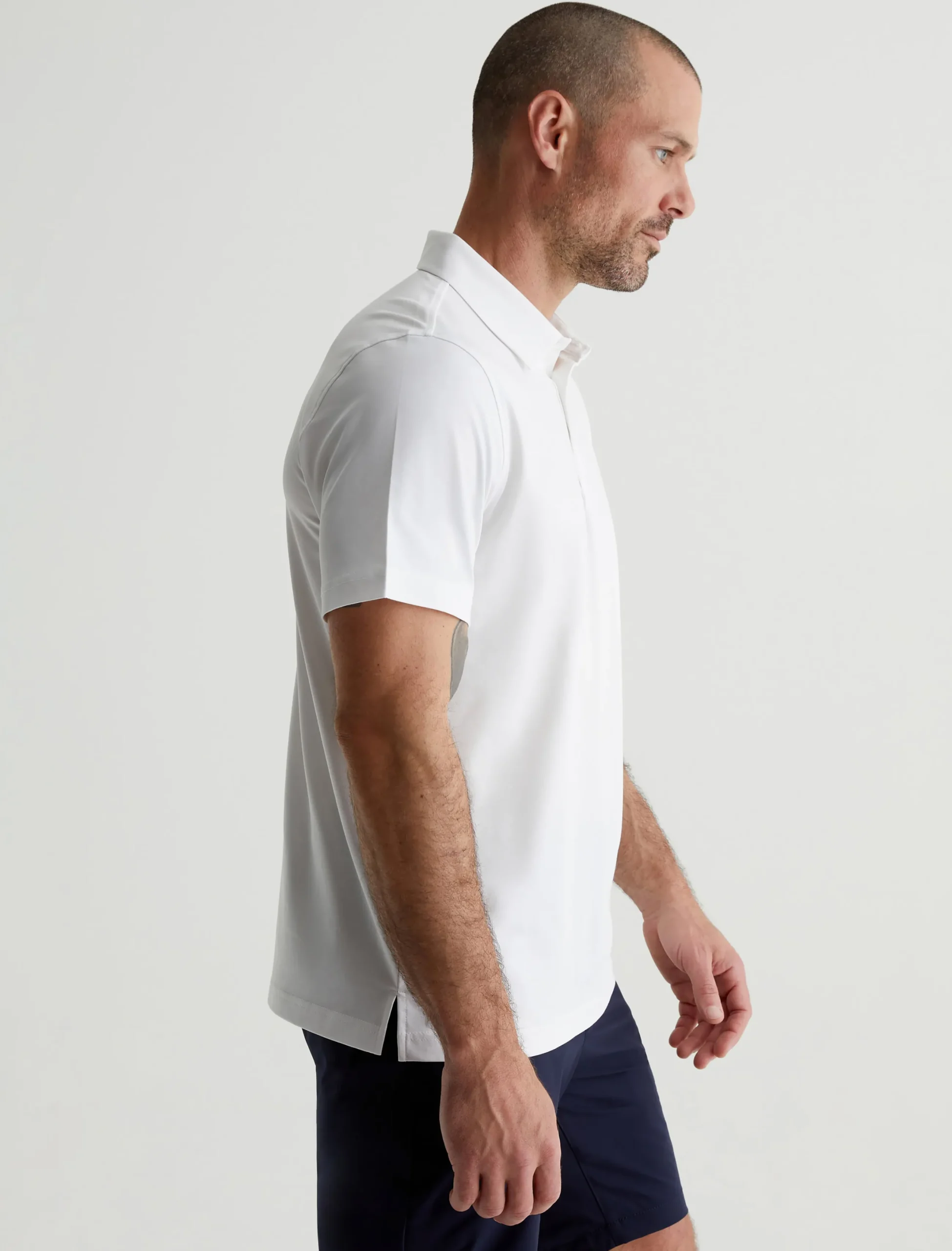 Stay cool and comfortable in any situation with the Ace Active Performance Polo. Designed for a classic short-sleeve fit in white, the style features Performance Stay-Dry Jersey that combines the softness of cotton with high-tech moisture-wicking construction. It’s designed to keep you drier than the typical jersey. Details include a spread collar, button placket, and a silicone heat transfer logo on the left sleeve.