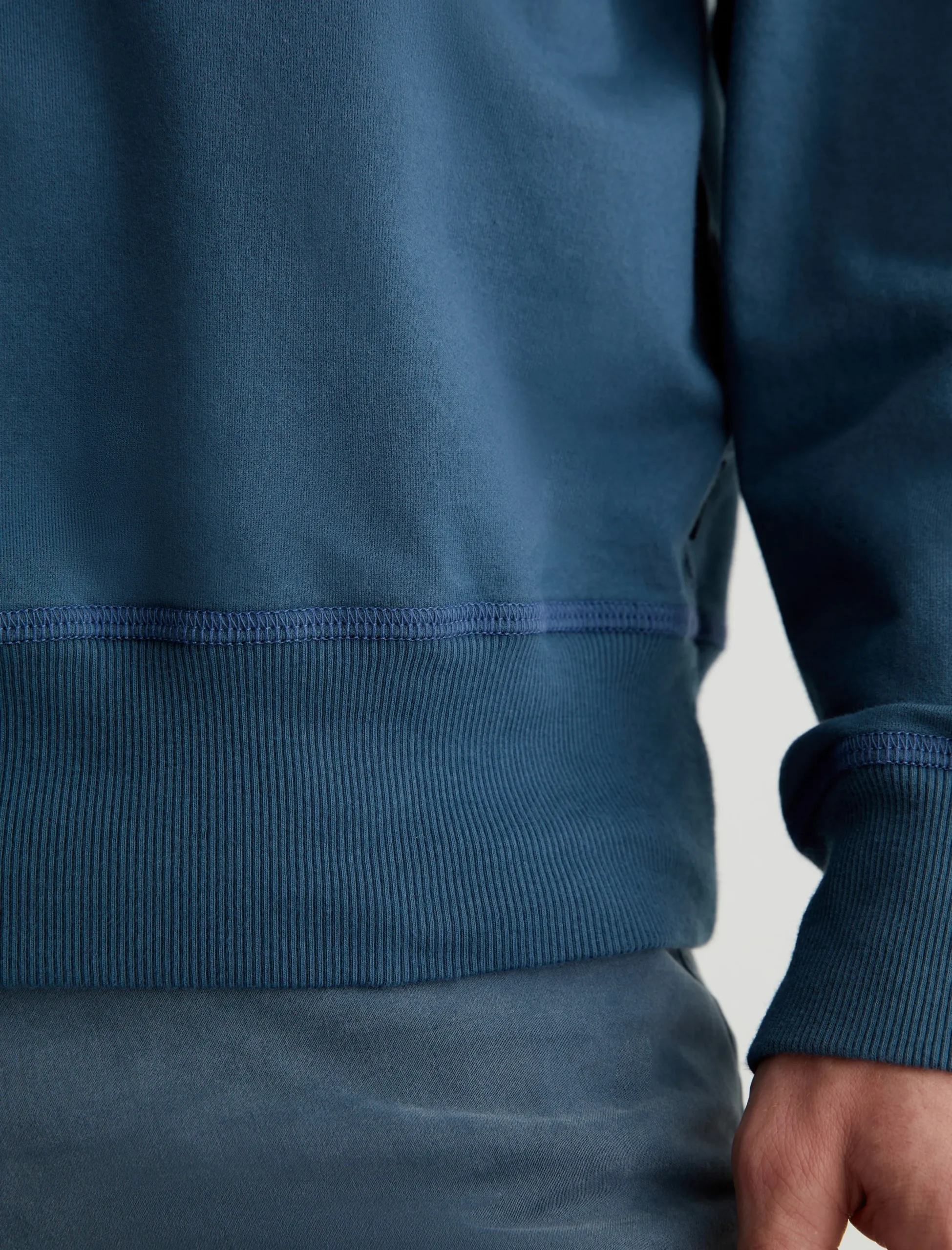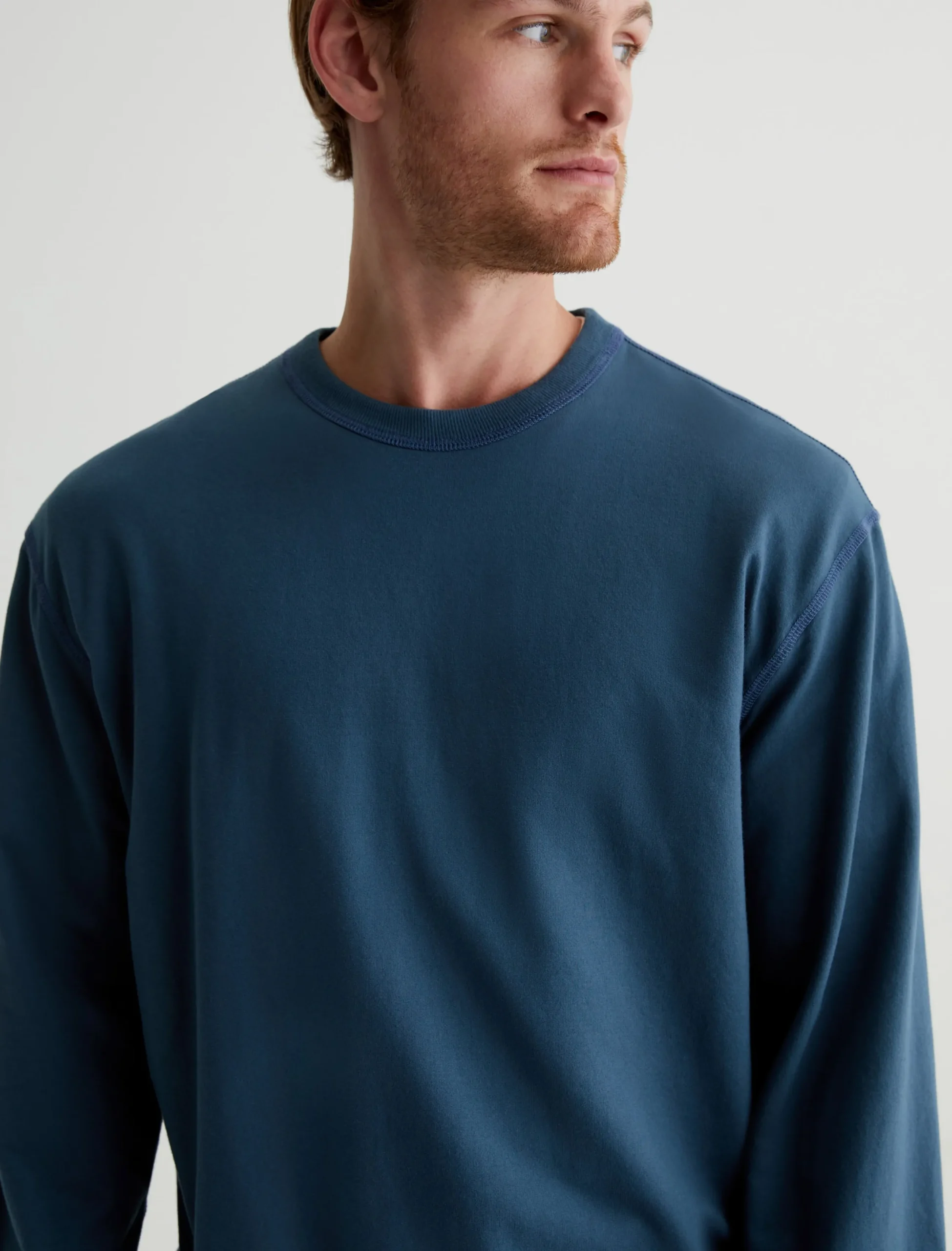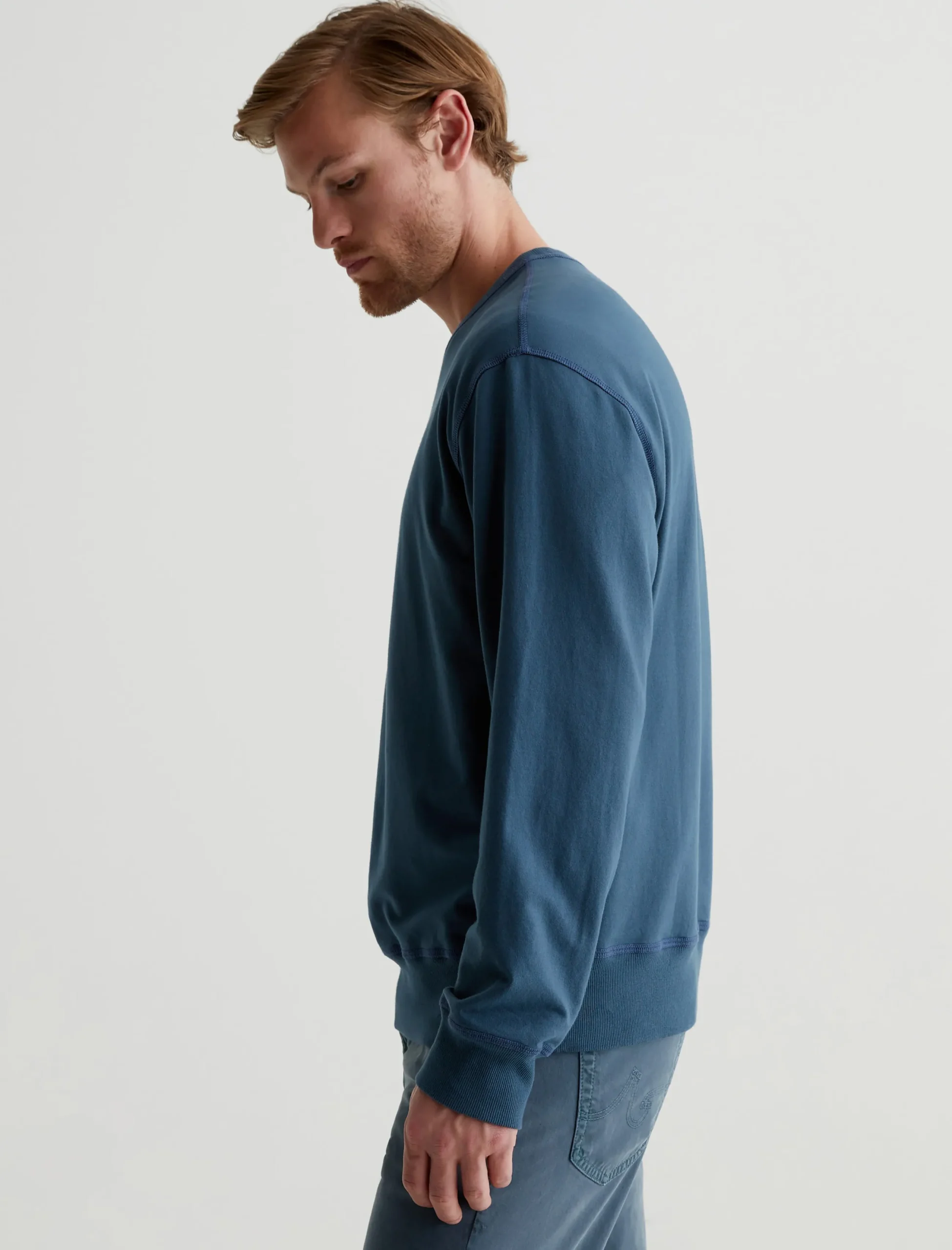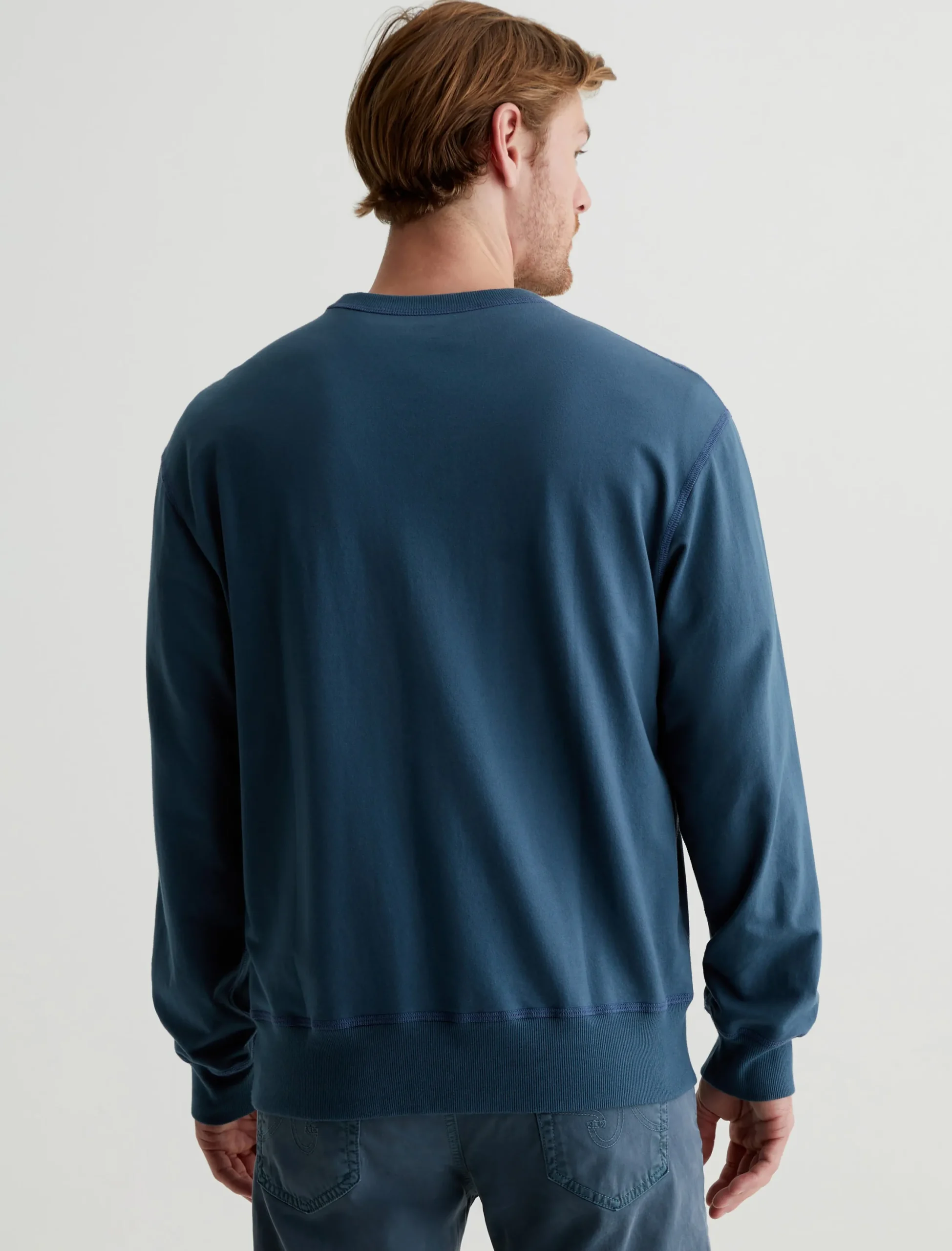 The Arc Crew is a relaxed crewneck sweatshirt made from lightweight stretch-blend terry in an oceanic blue shade. Perfect for casual days, this long-sleeve style features rib trim at the collar, cuffs, and hem.