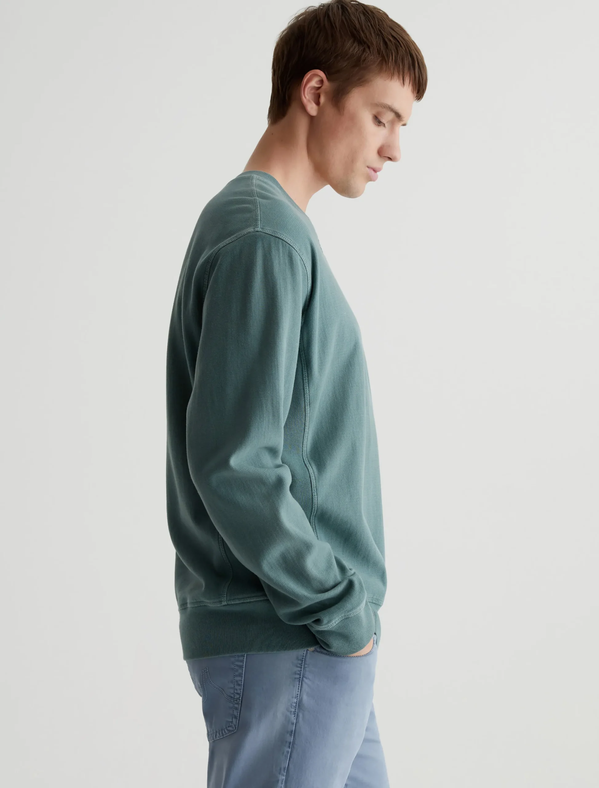 The Arc Panelled Sweatshirt is a classic crewneck pullover in a relaxed fit. Made from 100% cotton Essential Luxe Terry that’s been sulfur-dyed for a slightly faded green color, this men’s long-sleeve style has ribbed side panels, rib trim, and overlock stitching at the seams.