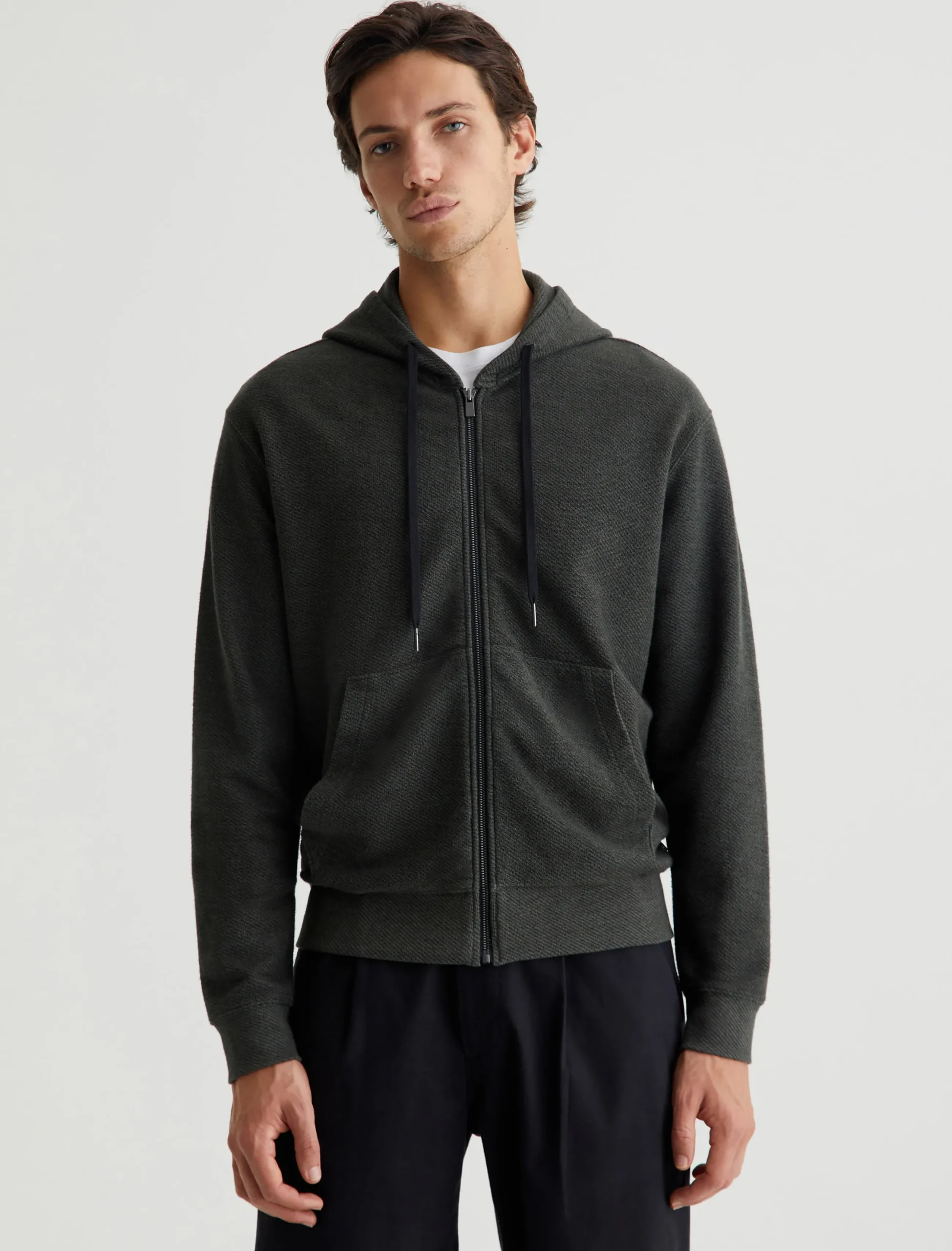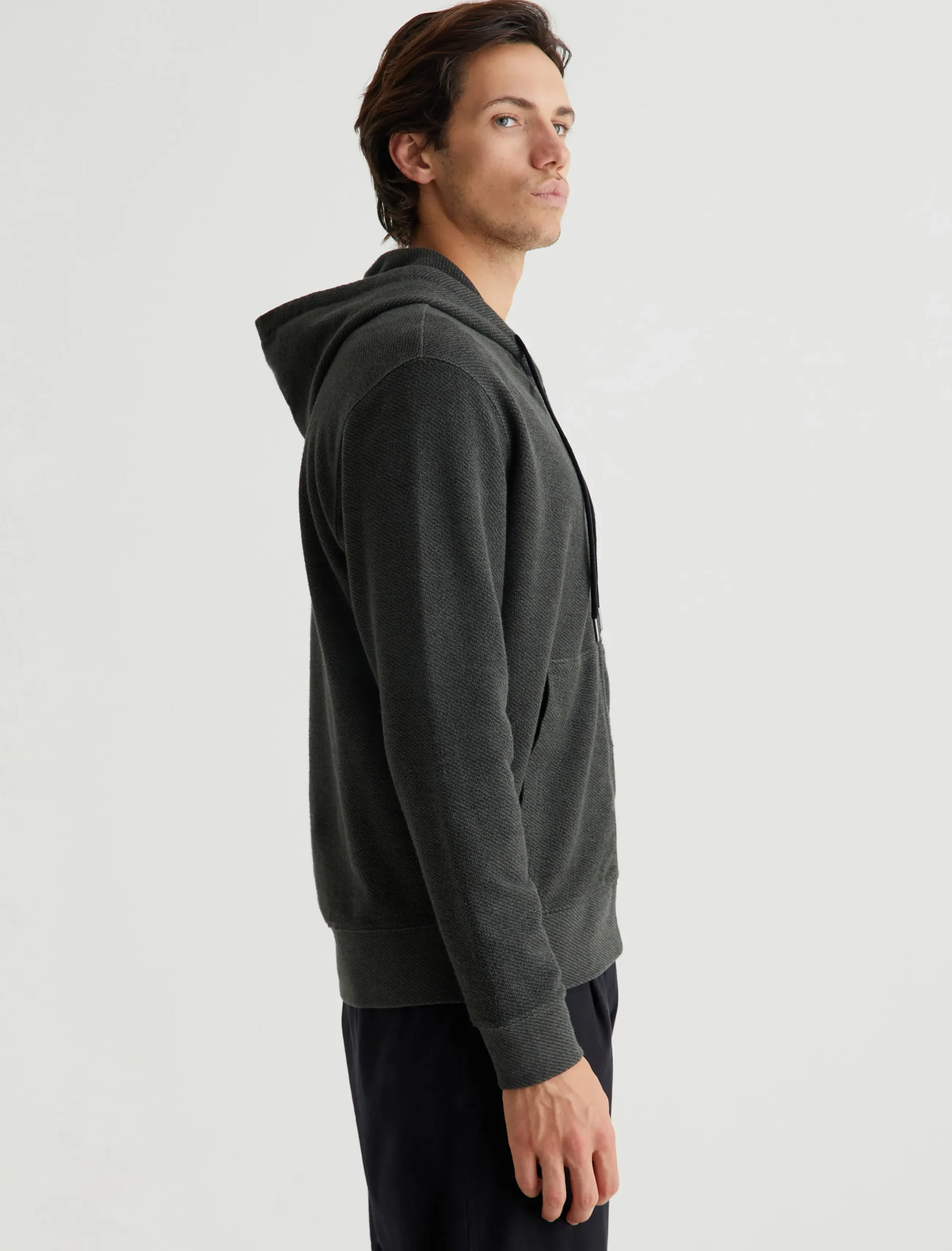 The Arc Zip Hoodie is your new go-to for casual days. It’s relaxed and easy to wear in 100% cotton terry with the textured side facing out. Done here in dark green with a speckled appearance, this cozy layer features an adjustable drawstring hood, roomy pockets at the front, and soft banded trim.