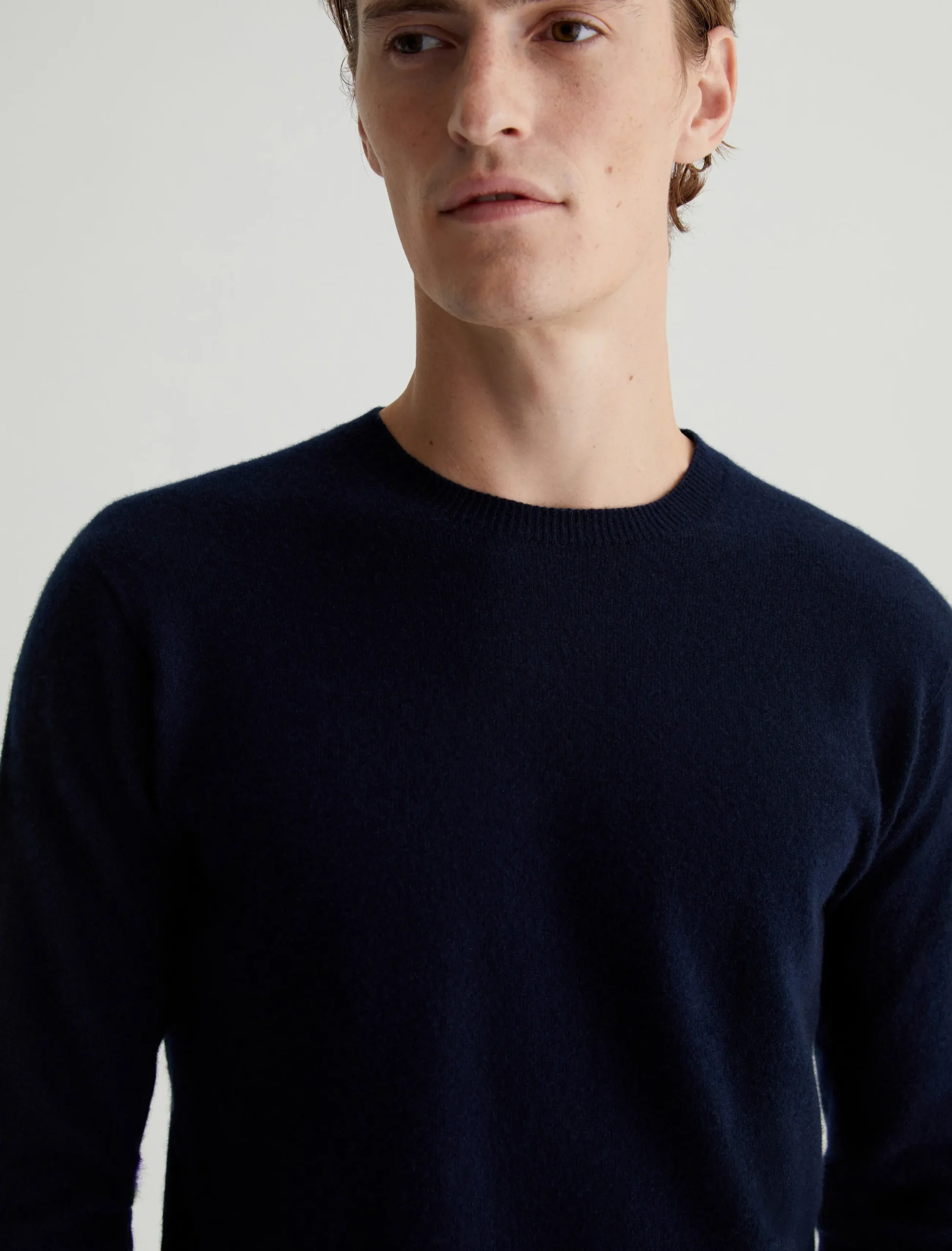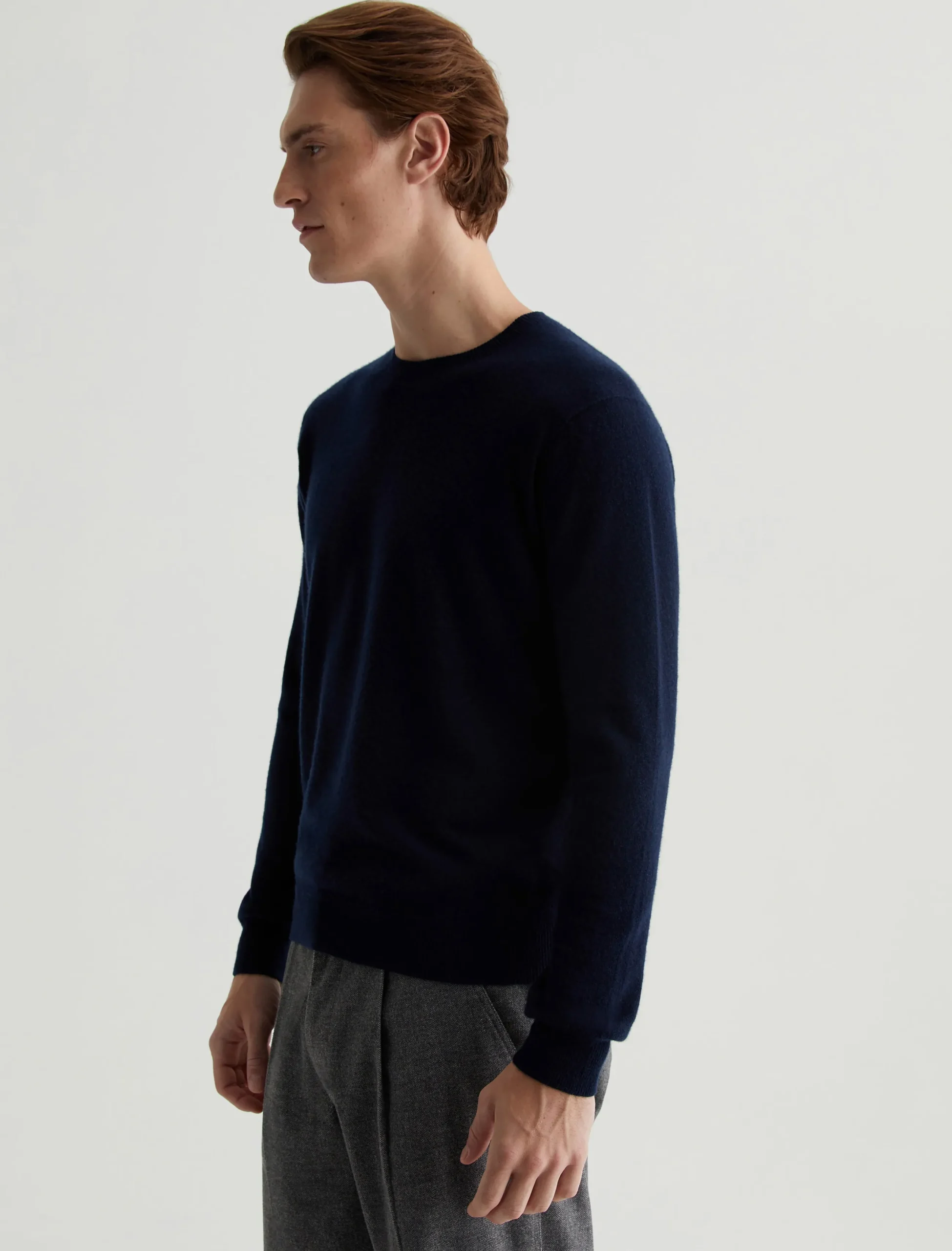 The Beck Crew is a classic-fit crewneck sweater with long sleeves, ribbed detailing, and a timeless navy shade. Spun from soft cashmere, it’s a luxe staple to wear on its own or layered under a jacket.