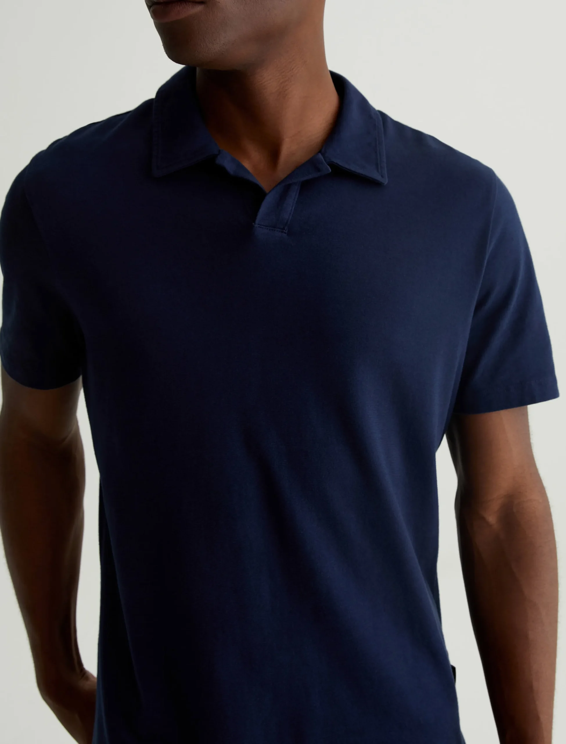 The Bryce Johnny Collar shirt is a classic short-sleeve polo tee with a relaxed neckline and pointed collar. Crafted from our Light Cotton Jersey in a timeless navy shade, it’s soft and easy to wear—the perfect companion to a pair of jeans or something a little more tailored.