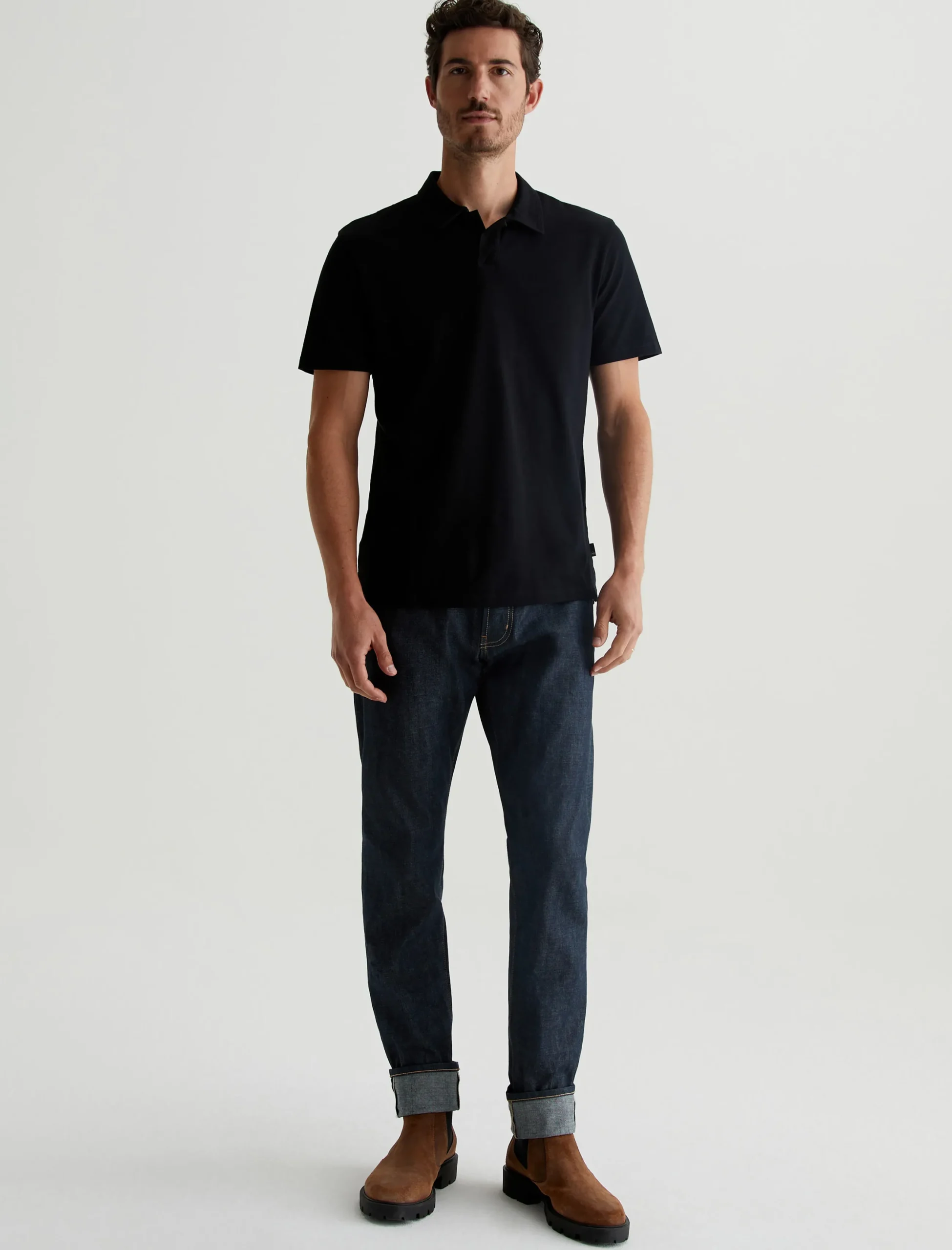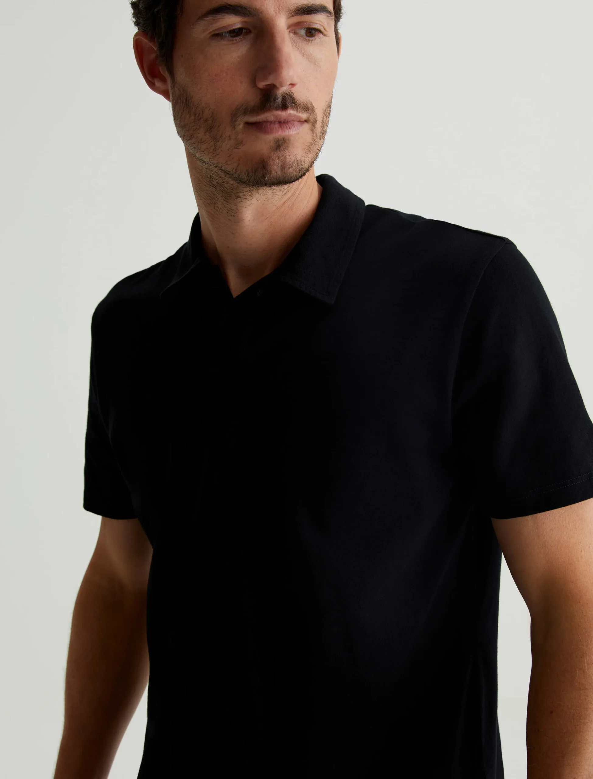 The Bryce Johnny Collar shirt is a classic short-sleeve polo tee with a relaxed neckline and pointed collar. Crafted from our Light Cotton Jersey in black, it’s soft and easy to wear—the perfect companion to a pair of jeans or something a little more tailored.