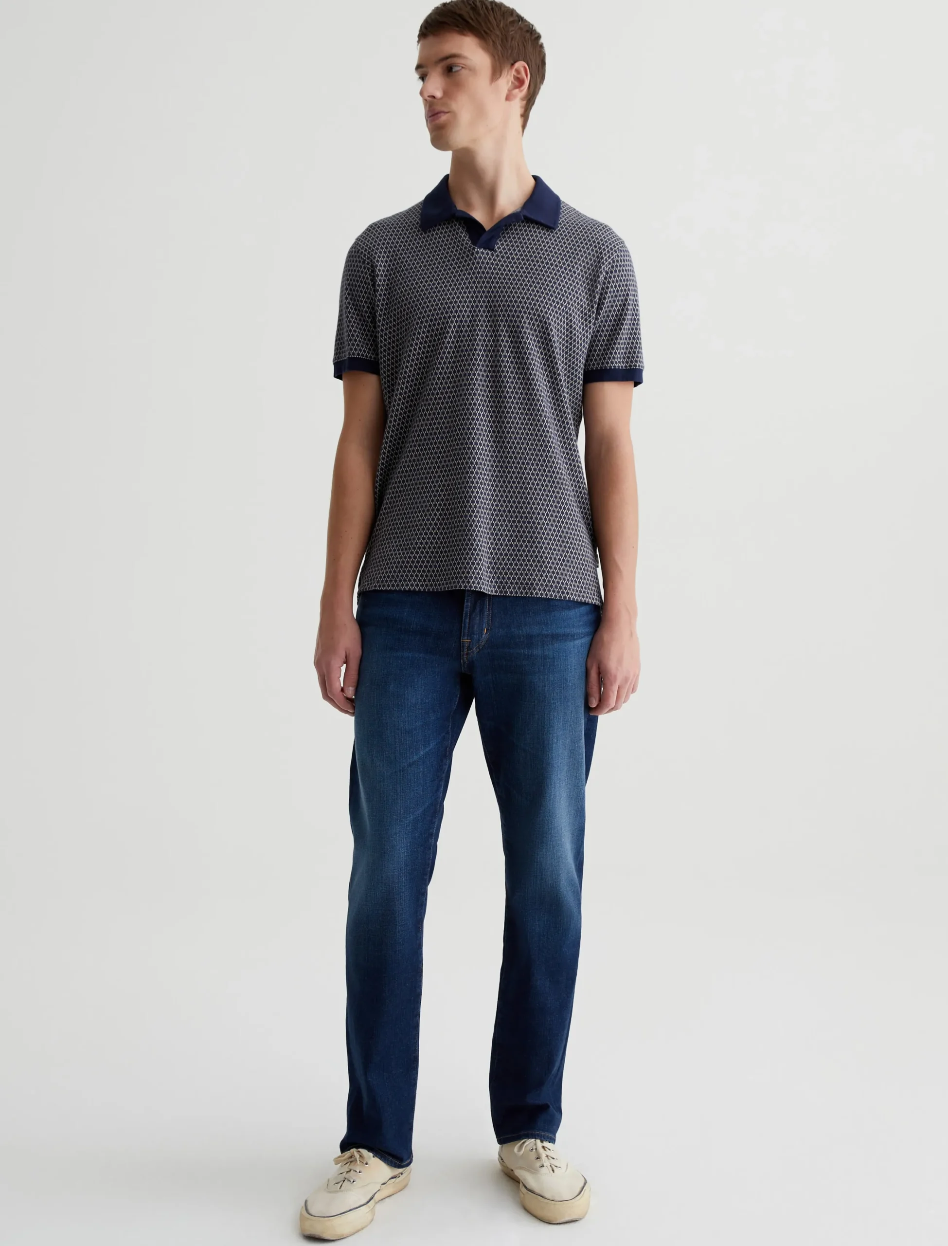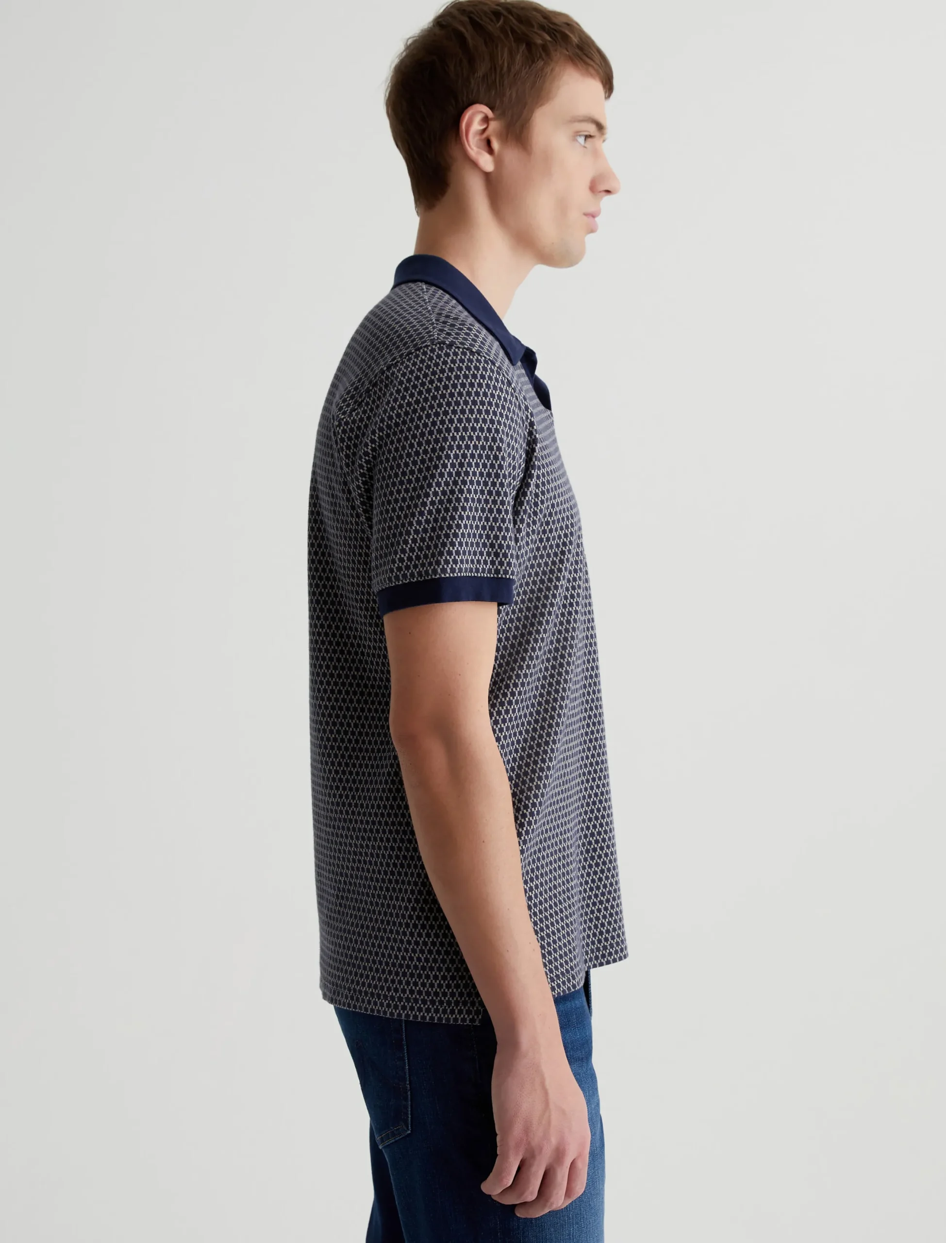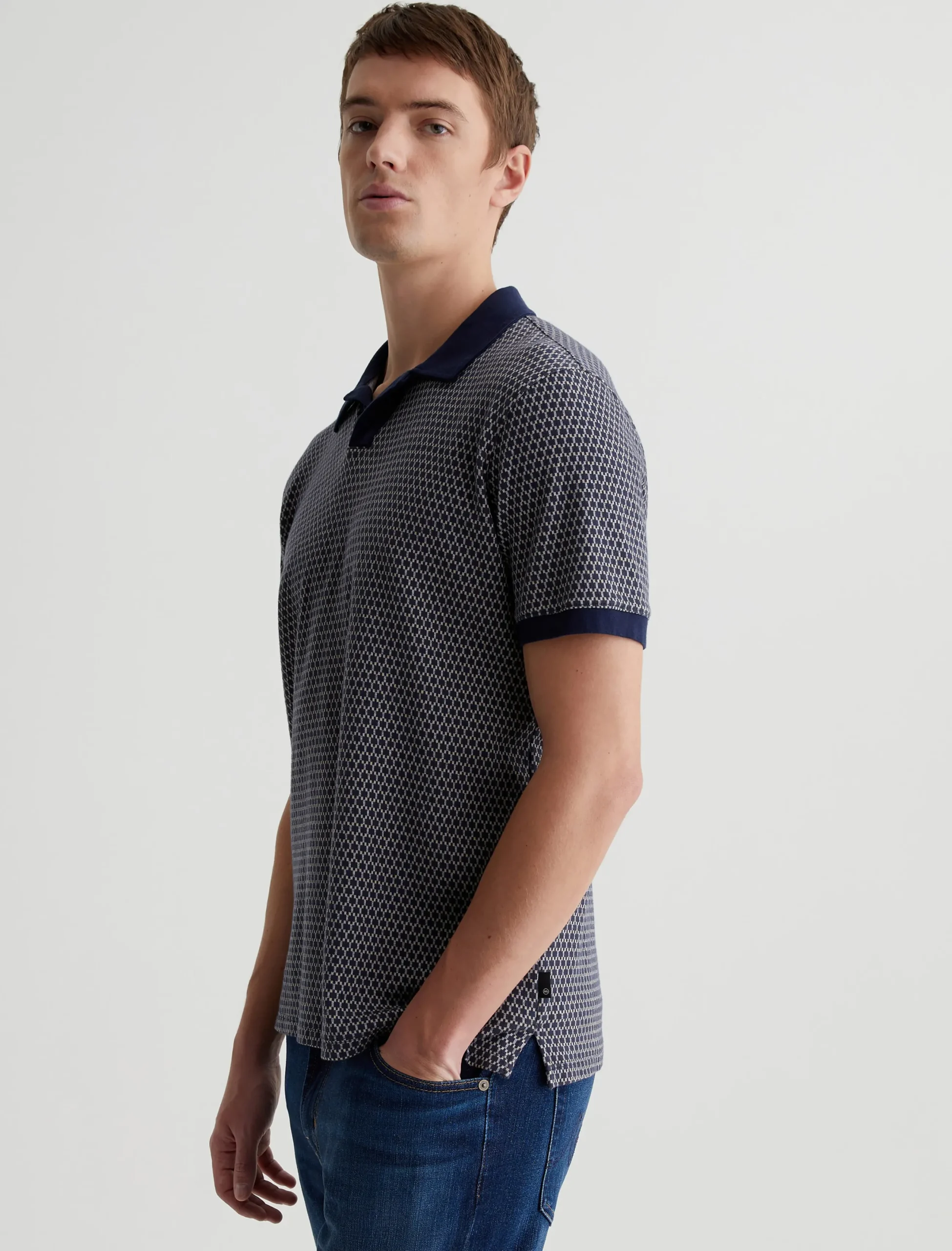 The Bryce Johnny Collar shirt is a classic short-sleeve polo tee with a relaxed neckline and pointed collar. An effortless way to bring pattern interest into your everyday wardrobe, it’s crafted from Luxe Heavy Jacquard and accented by solid navy trim.