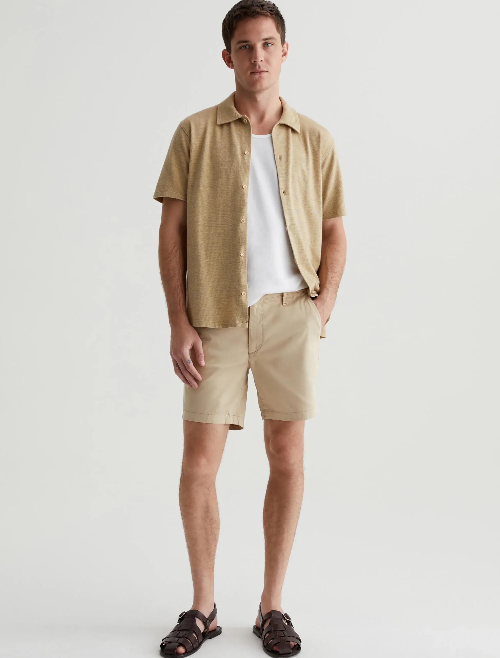The Cipher Short is a warm-weather essential with a classic tailored look. Crafted from 7.4 oz. Brighton Sueded Sateen in a khaki shade, this comfortable stretch-blend style has a slim fit that lands at mid-thigh.