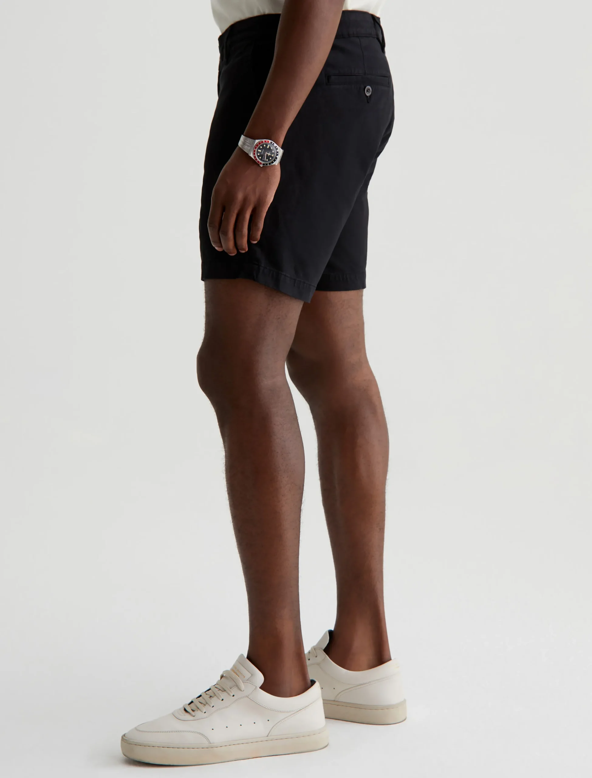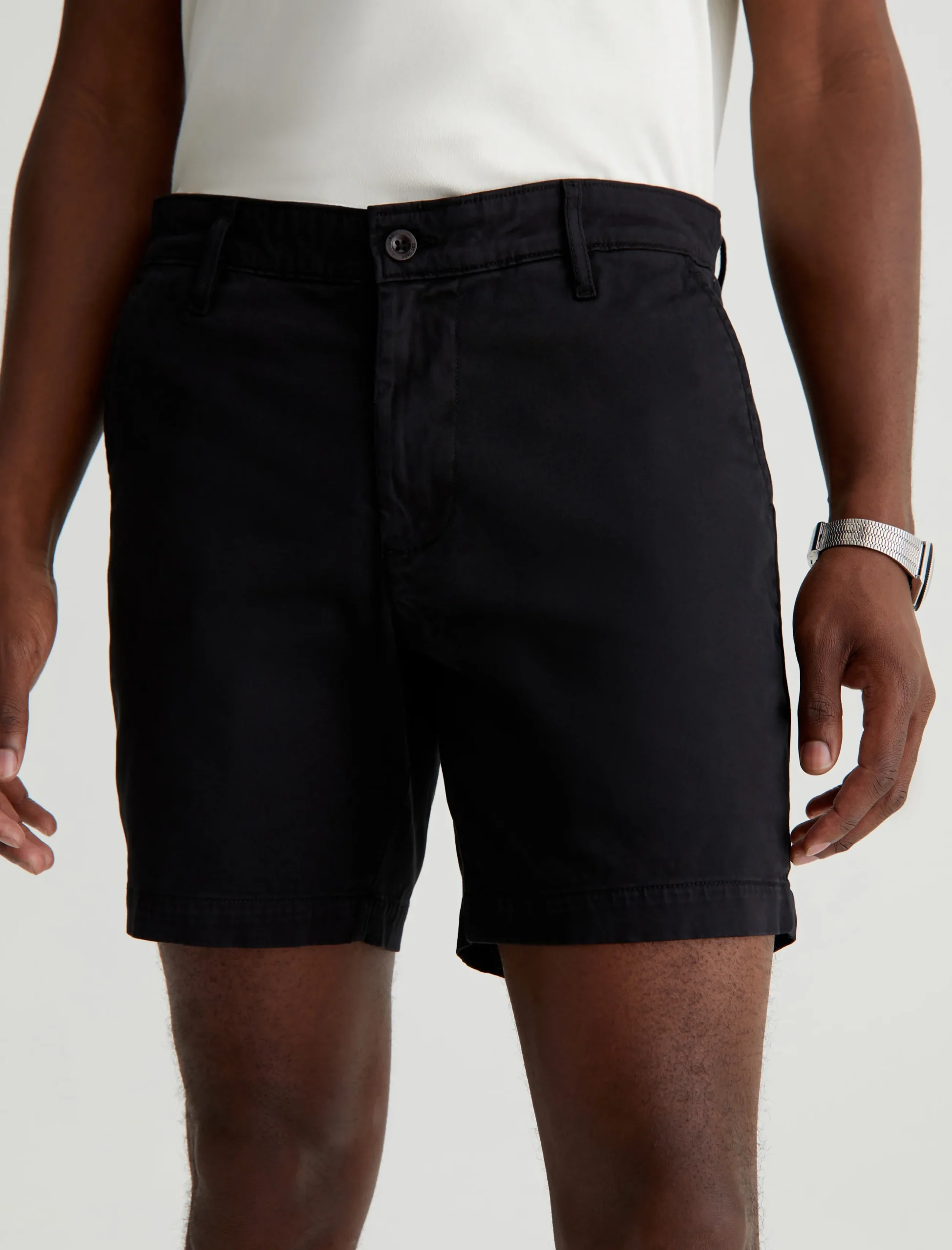 The Cipher Short is a warm-weather essential with a timeless tailored look and a luxuriously soft finish. Made from 7.4 oz. Brighton Sueded Sateen in black, this comfortable stretch-blend style has a mid-rise waist and a slim fit that lands at mid-thigh.