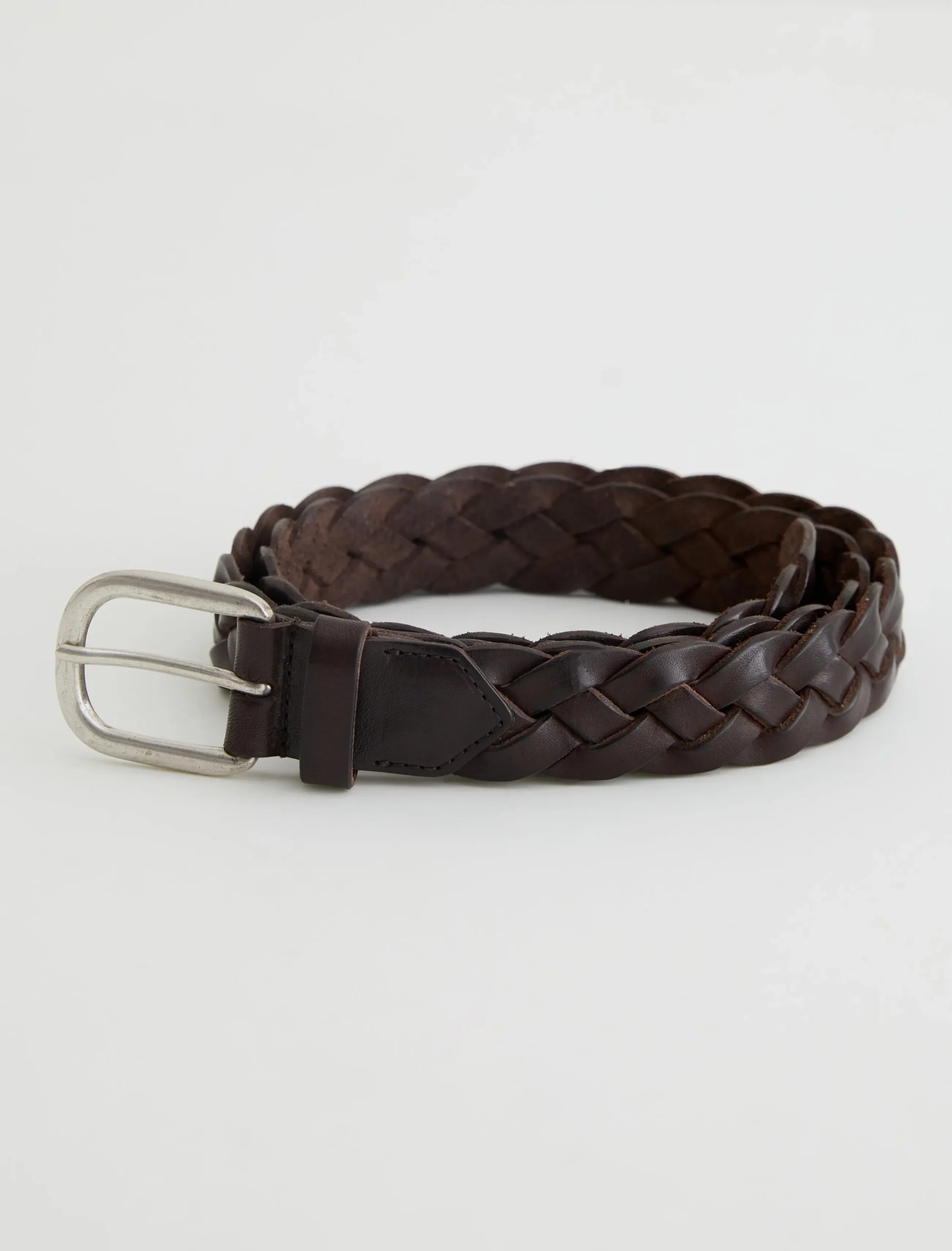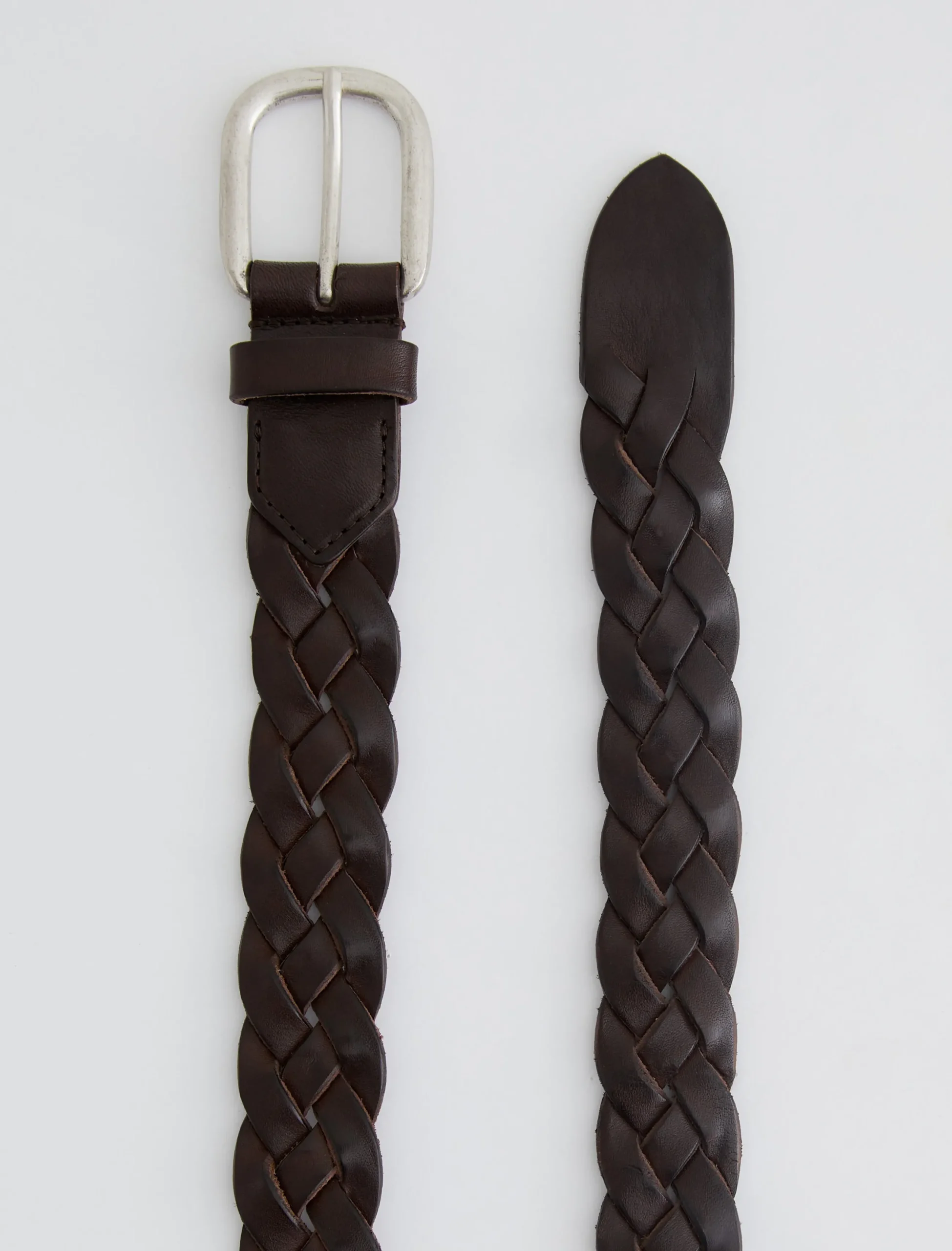 Made from smooth Italian leather, this braided men’s belt comes in rich, dark brown shade. It’s finished by a silver-tone buckle with a rounded shape.