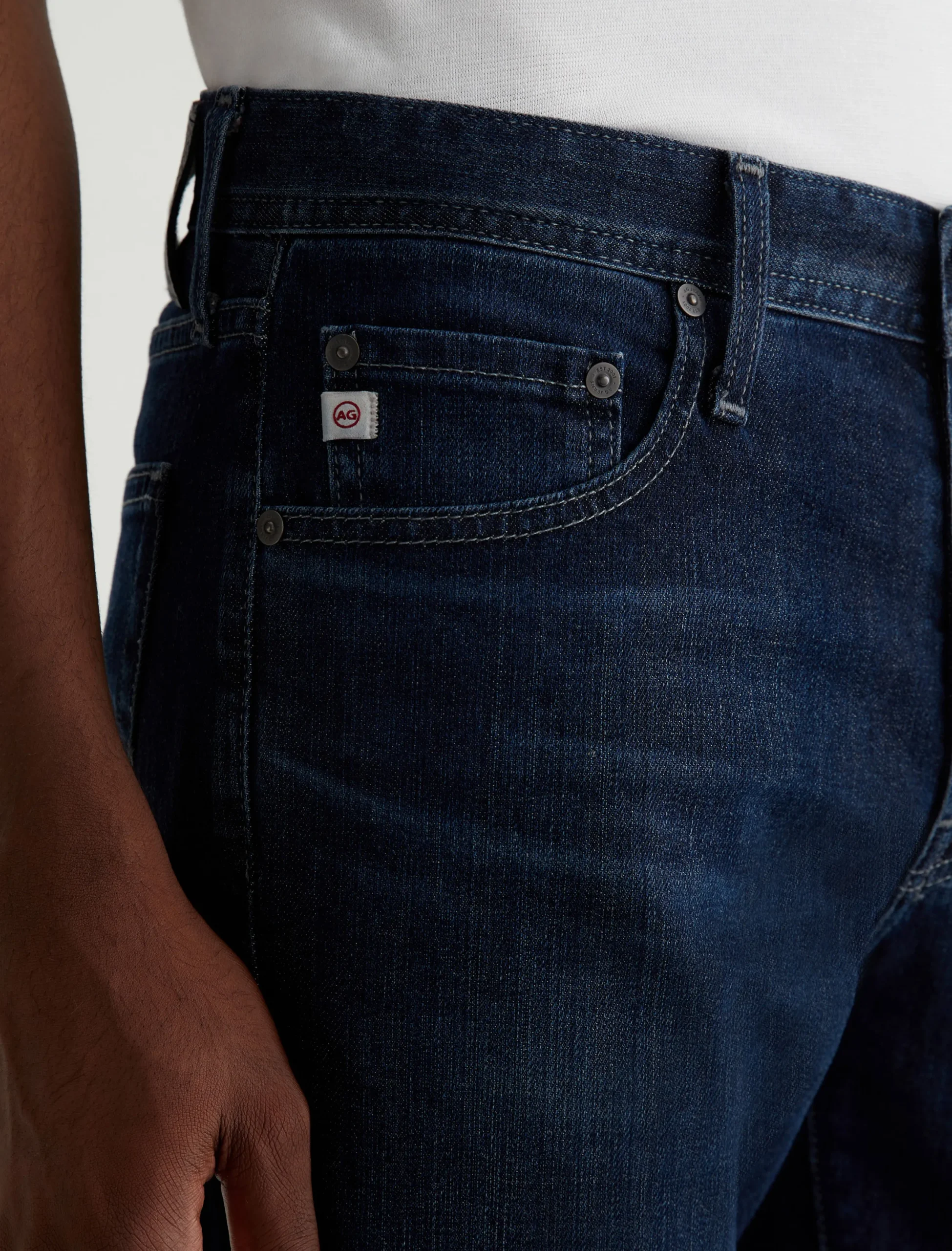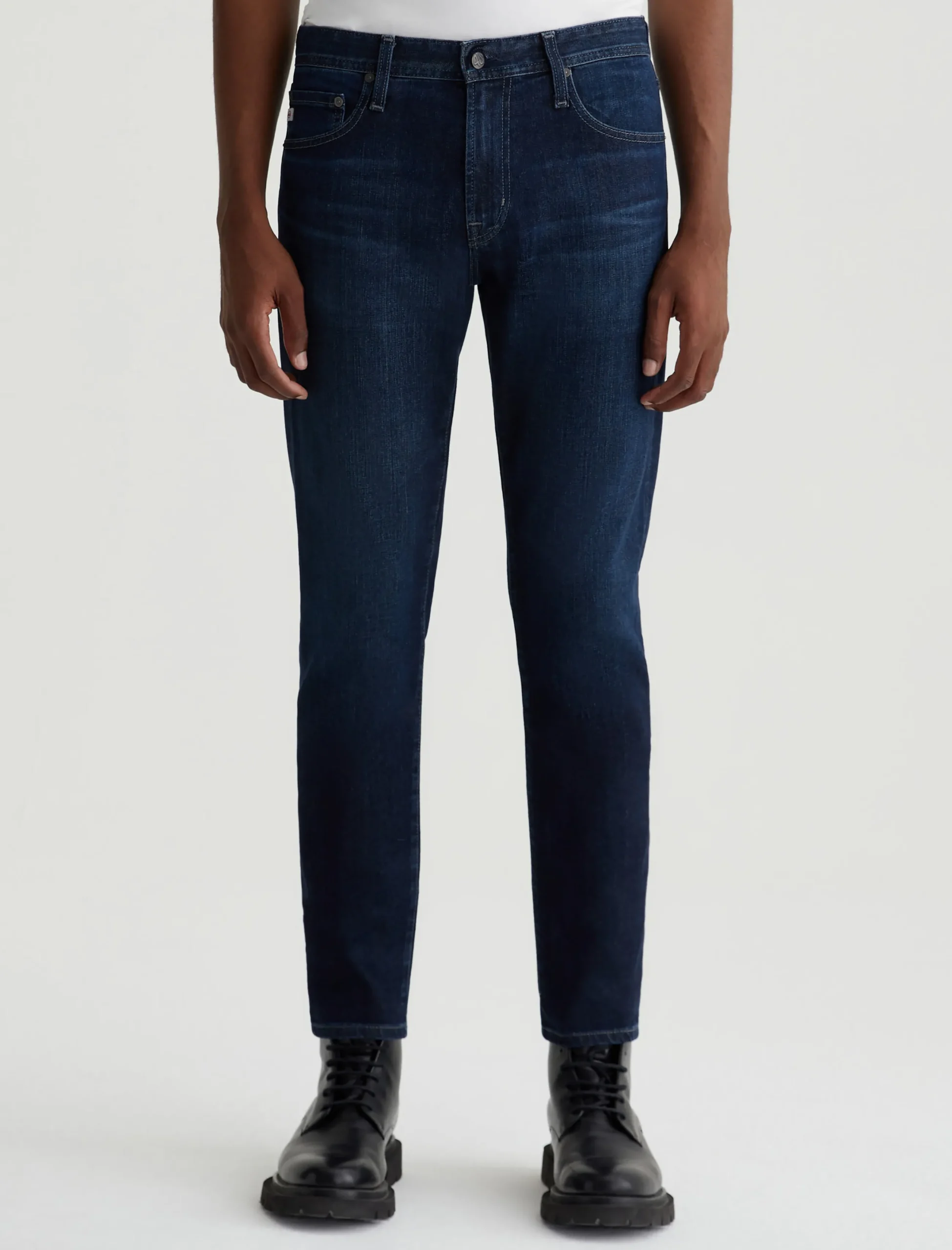 Dylan features a slim skinny silhouette in a dark blue wash with a subtle 4-year AG-ed™ fade.. Made from 11 oz. Lead Denim with comfort stretch, these five-pocket jeans are cut slim through the thighs and then taper down at the leg opening.
