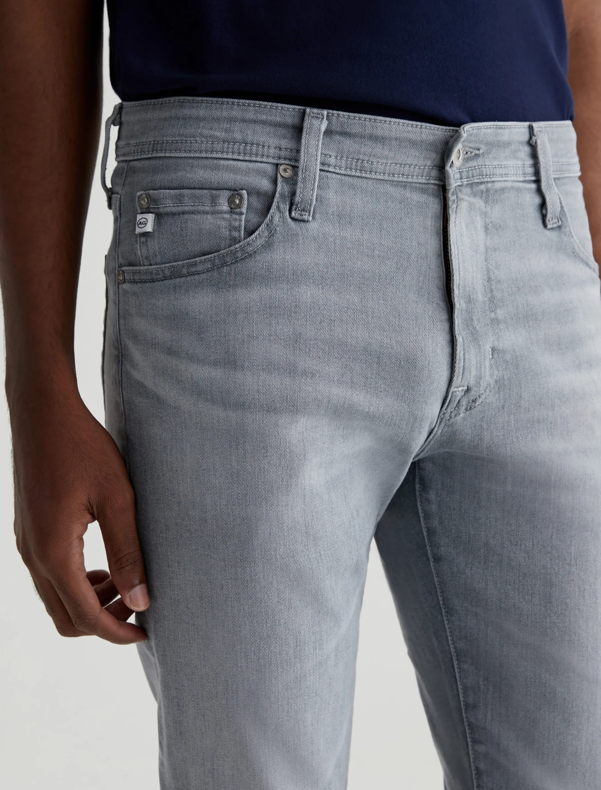Dylan is a slim skinny jean in a light grey wash with fading and whiskering. Cut slim through the thighs and tapered at the leg opening, this five-pocket men’s jean is designed in 10 oz. Ashen Stretch Denim for premium comfort.