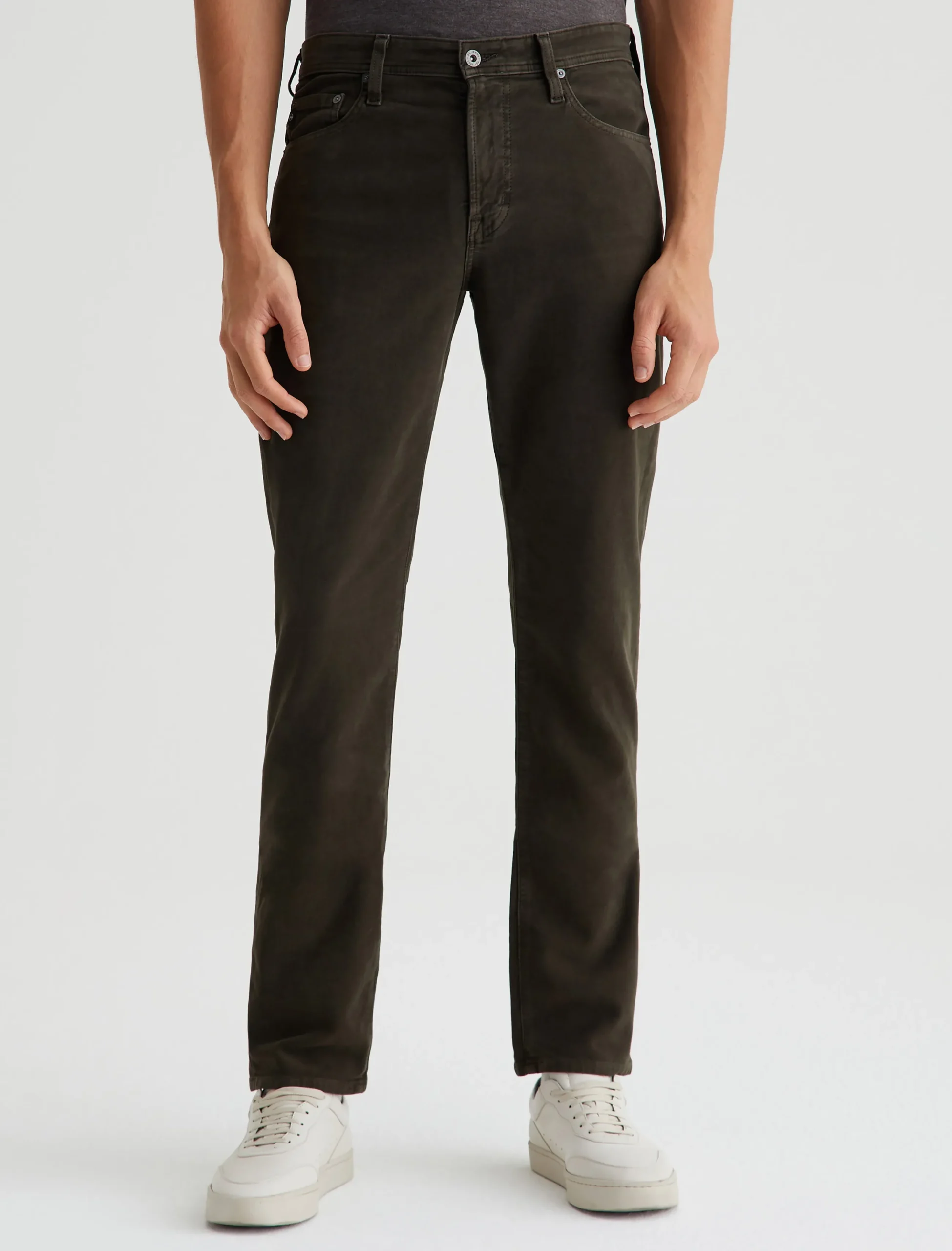Everett is a slim straight jean for men featuring 8.7 oz. Brushed Stretch Moleskin in a sulfur-dyed brown shade. The five-pocket style has a comfortable mid-rise waist and a straight fit that’s relaxed from hip to the knee before slightly tapering at the leg opening.