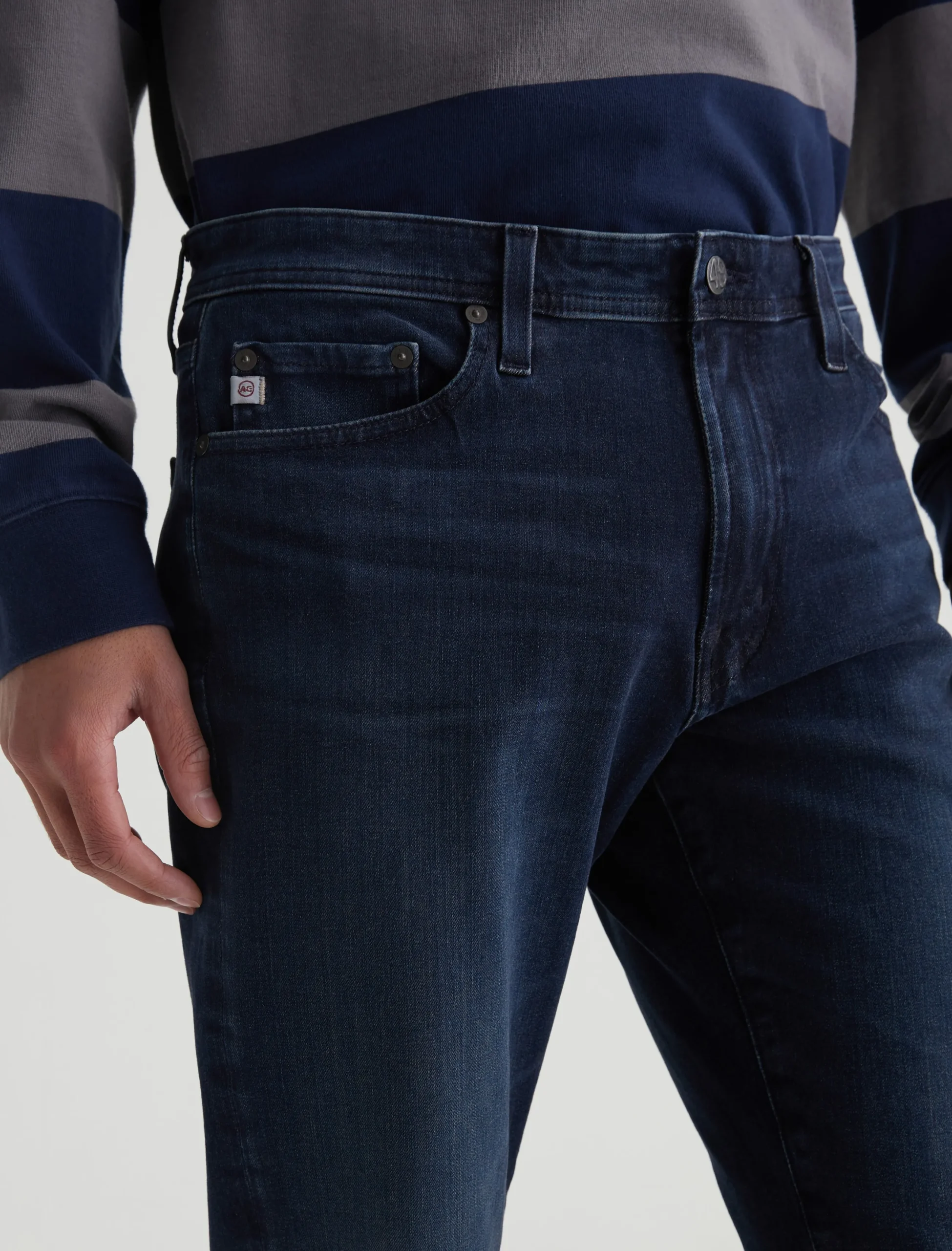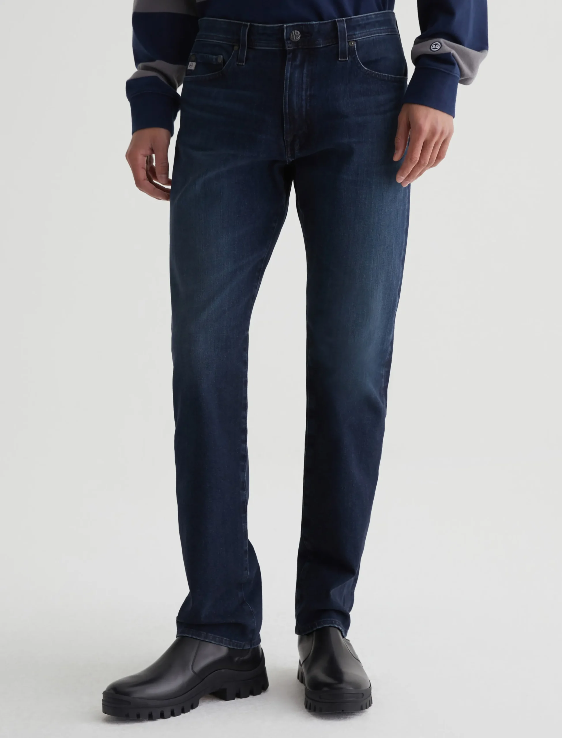 Everett is a slim straight fit for men, featured here in an AG-ed™ dark blue wash with a subtle 3-year fade. The style has a mid-rise waist and a straight fit that’s relaxed from hip to knee before slightly tapering at the leg opening. These slim straight jeans are designed in 9.5 oz. Infinite Bi-Stretch Denim featuring flexible 360° construction for ultra-comfortable wear.