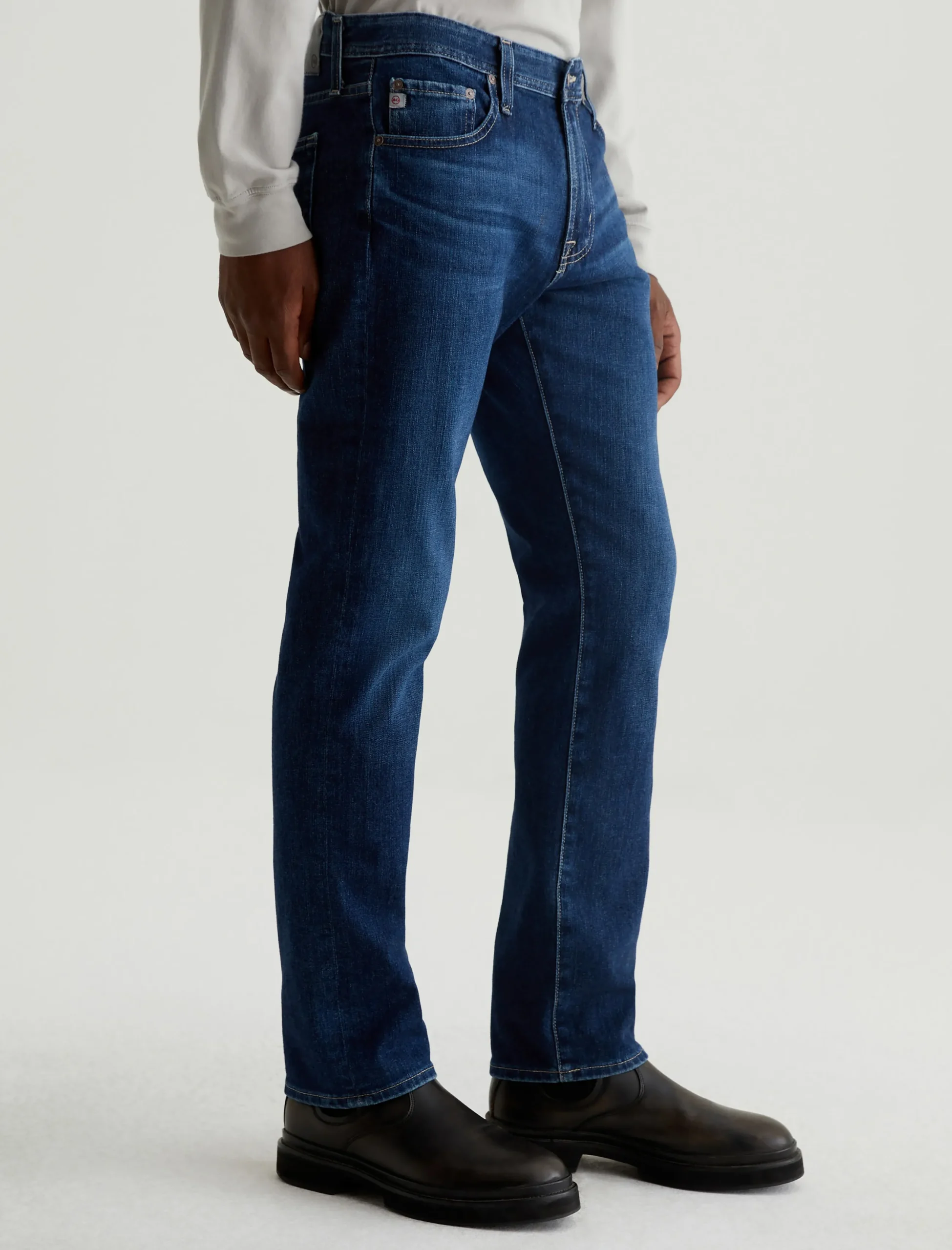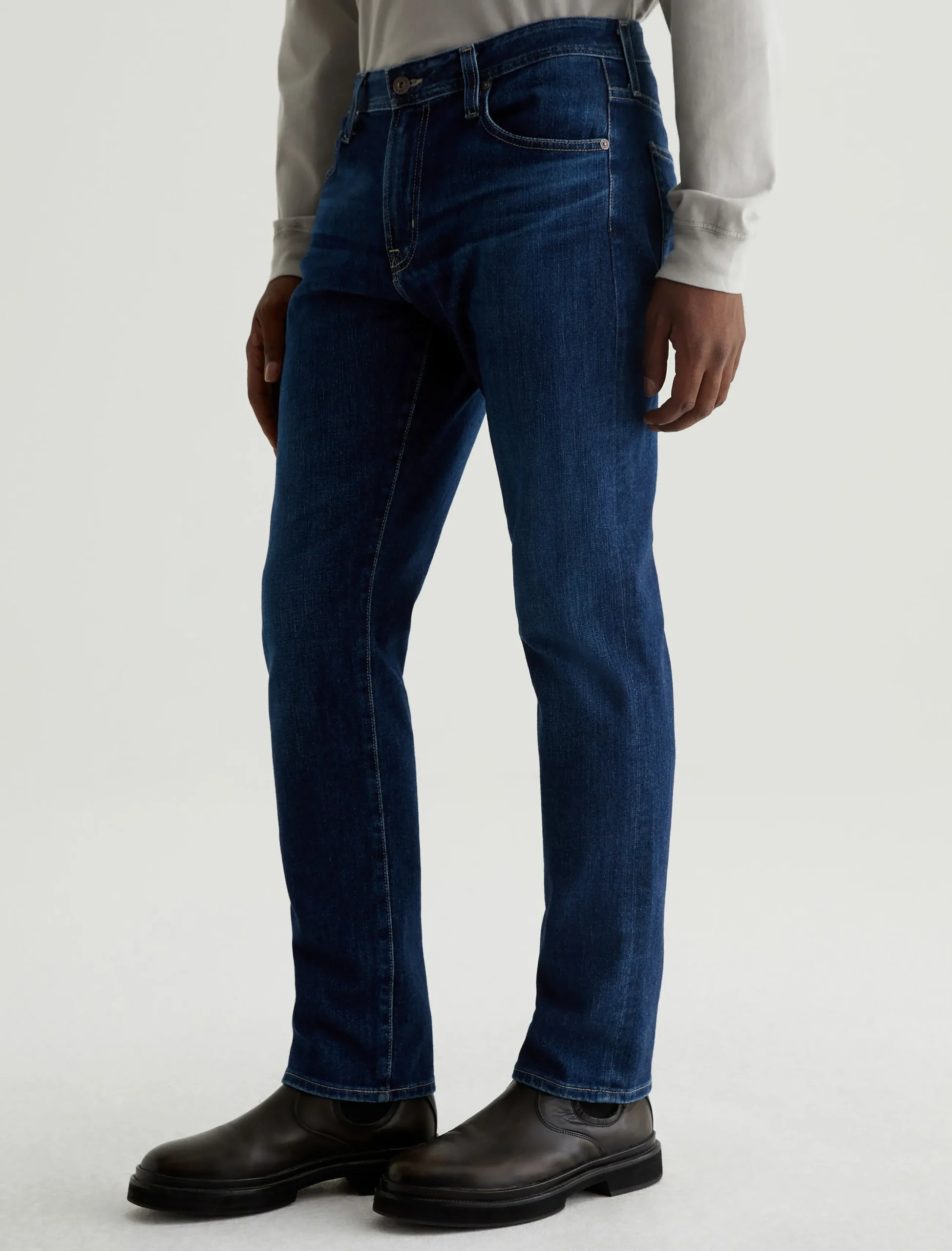 Everett is a slim straight jean for men featuring a dark denim wash—cut in a comfortable mid-rise waist with a straight fit that’s relaxed from hip to the knee before slightly tapering at the leg opening. This men’s slim straight jean is designed in 11 oz. Flex 360° Denim.