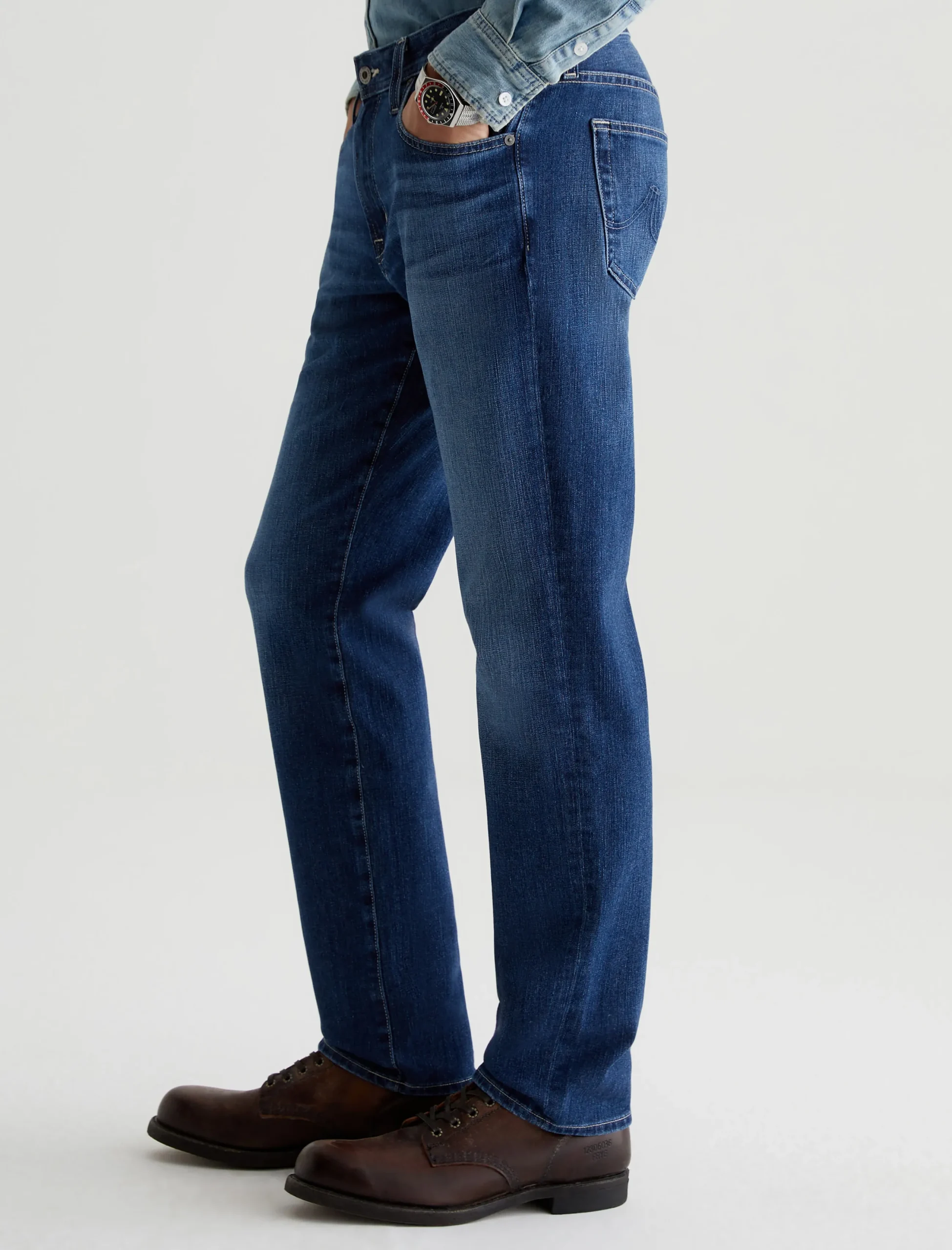 The Everett 360° is a slim-straight fit made from high-tech stretch denim. Anchored by a comfortable mid-rise waist, it’s got a straight fit that’s relaxed from hip to knee before slightly tapering at the leg opening. These men’s slim-straight jeans are designed in 11 oz. Flex 360° Denim and washed to a medium indigo shade with faded details.