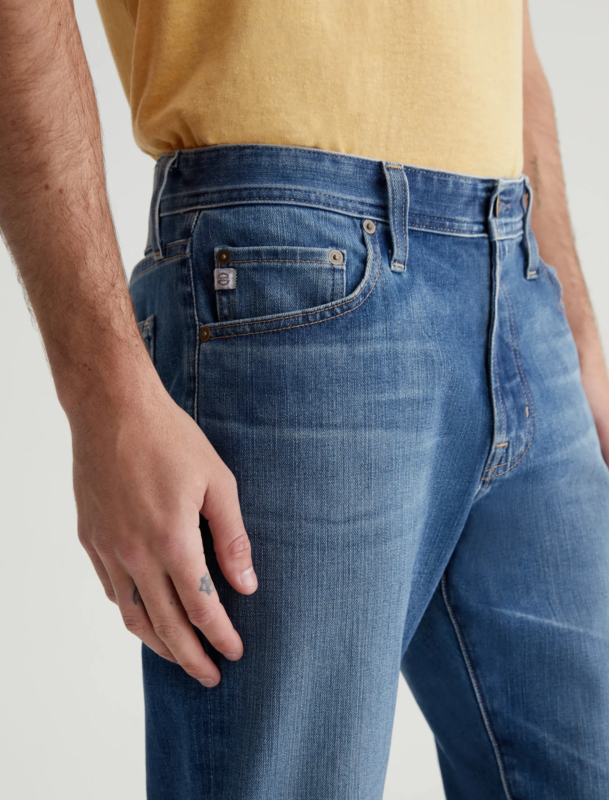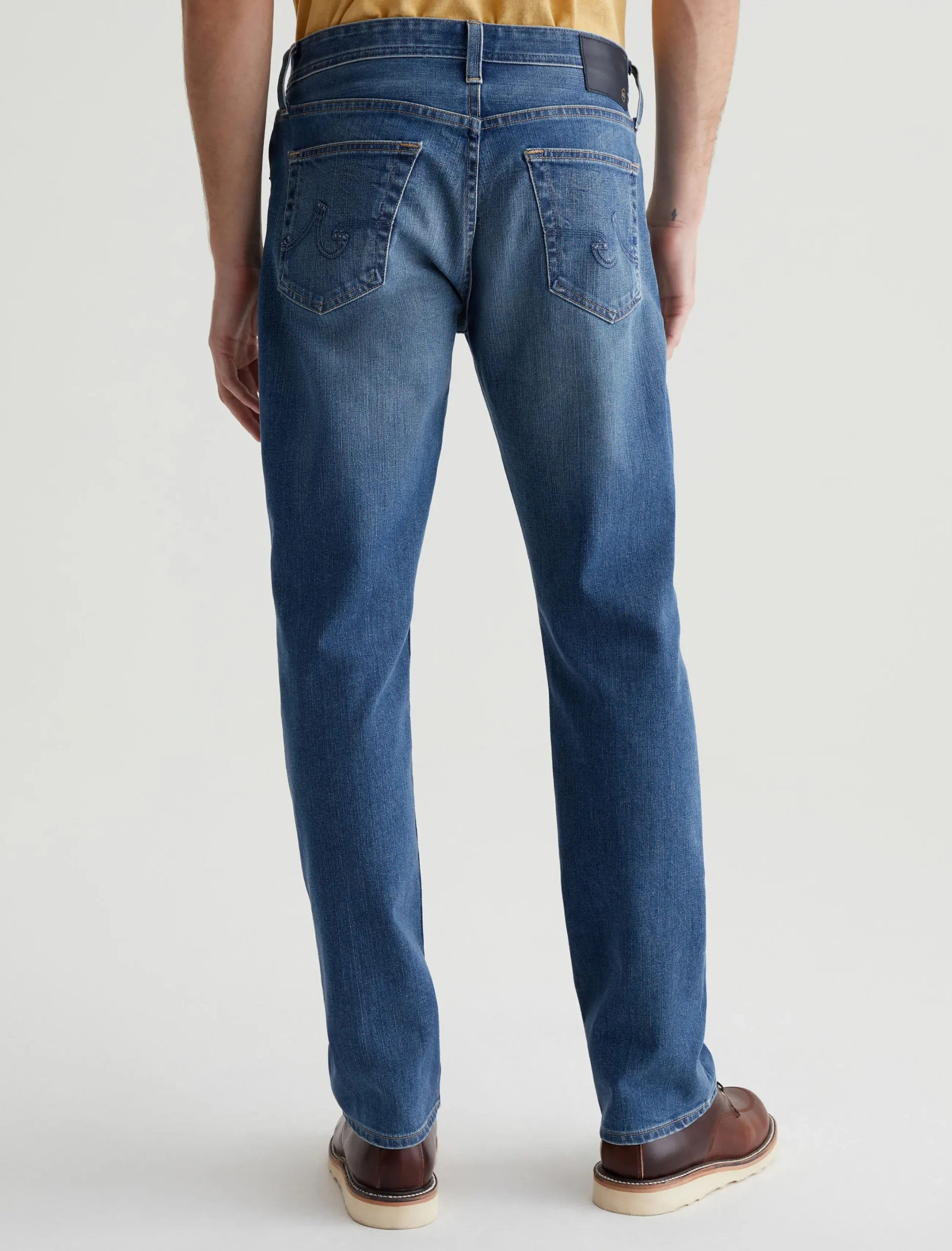 Everett is a slim straight jean for men. It’s designed with a comfortable mid-rise waist and a straight fit that’s relaxed from hip to the knee before slightly tapering at the leg opening. These slim straight men’s jeans feature classic five-pocket construction in 11.5 oz. 360° Denim with high stretch and a faded medium indigo wash.
