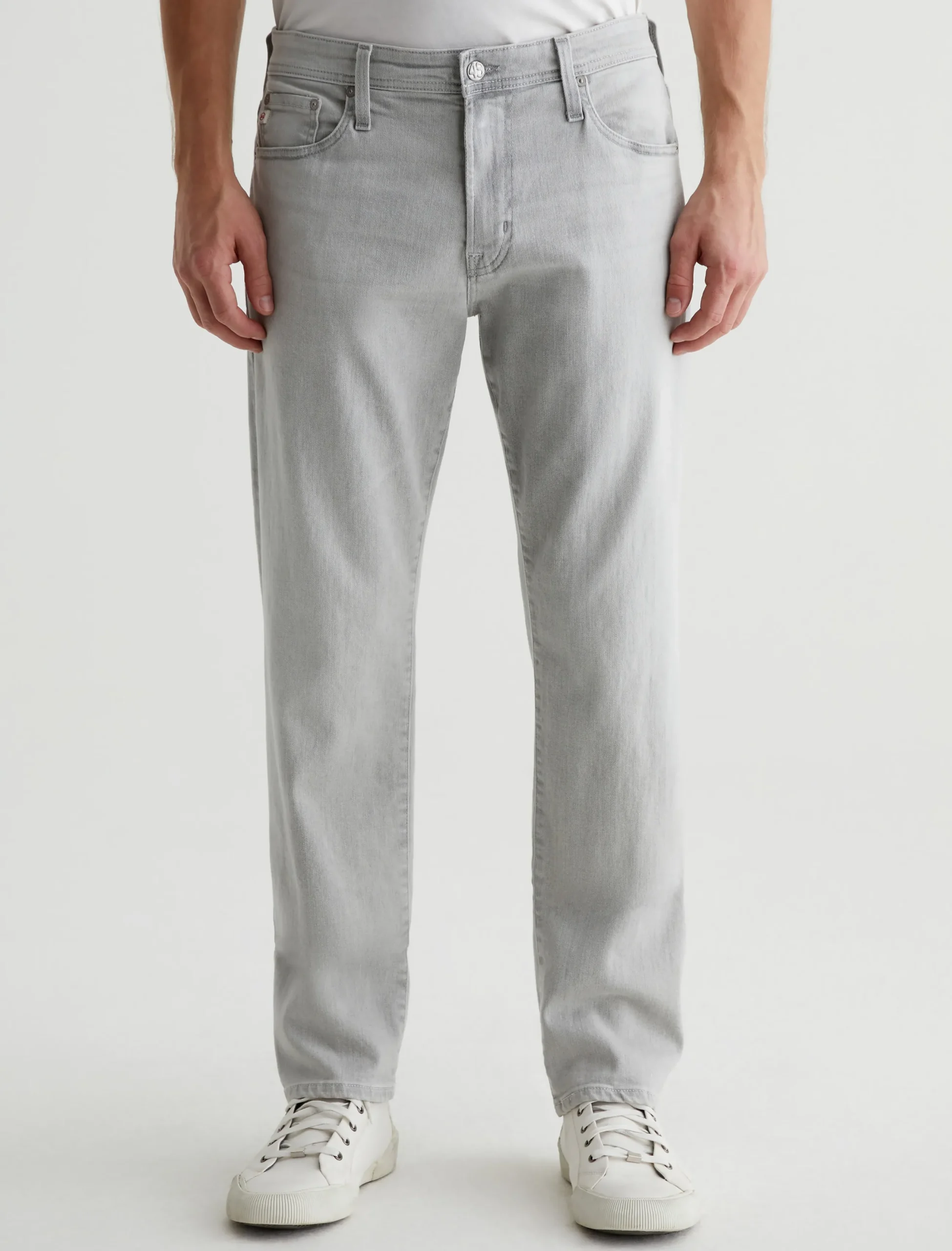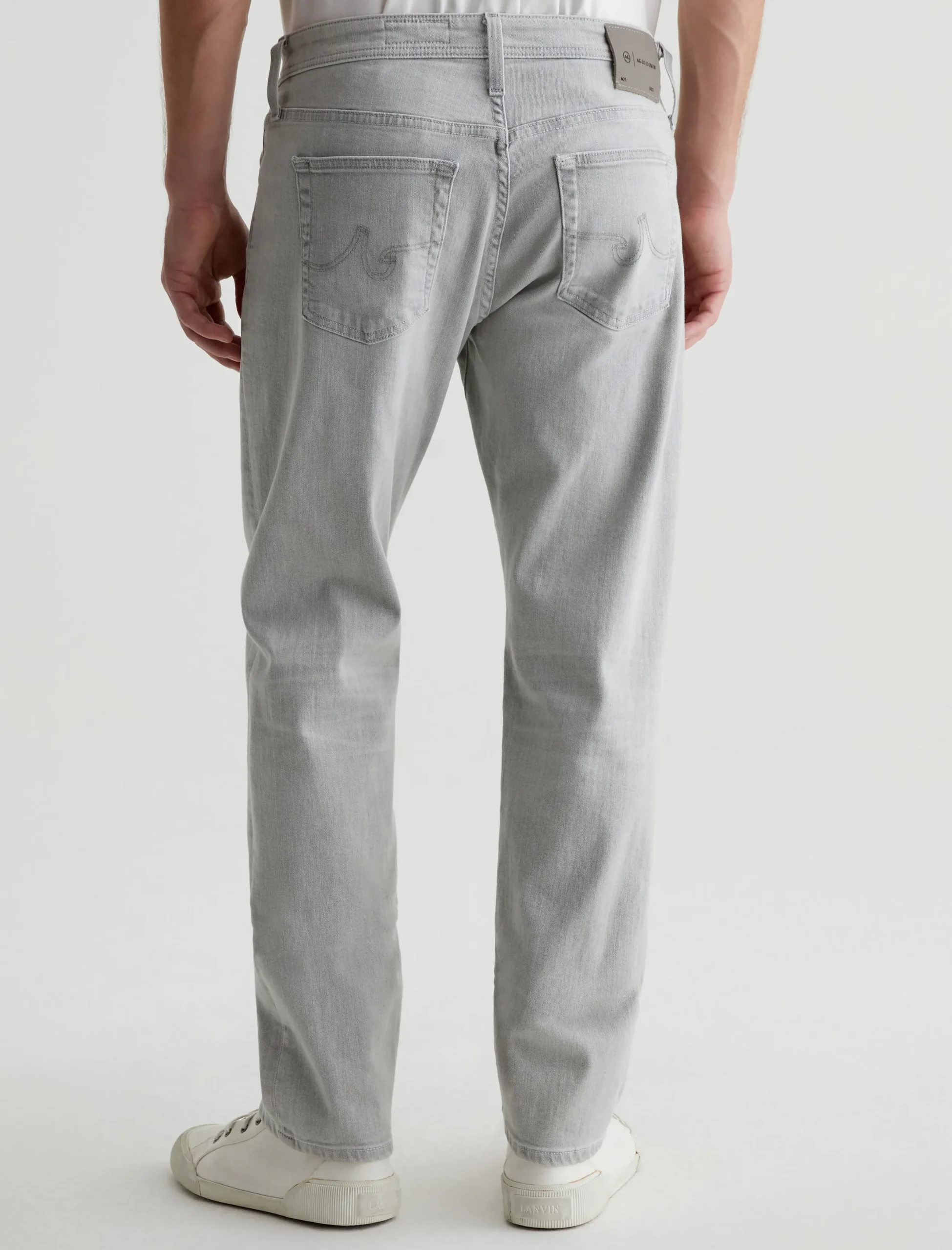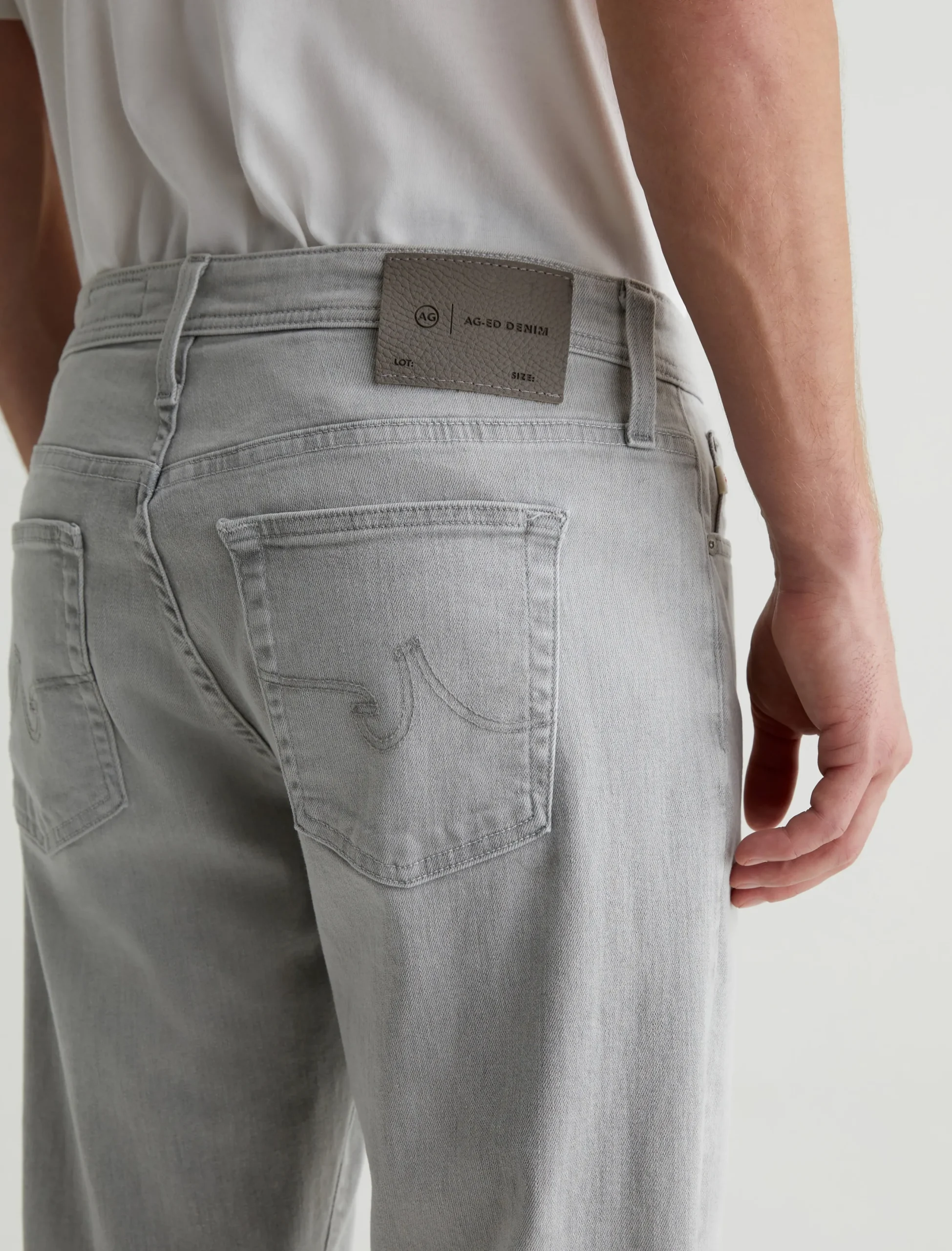 Our Everett slim straight jeans for men, updated here in pale grey with a 22-year AG-ed™ fade. Anchored by a comfortable mid-rise waist, the style has a straight fit that’s relaxed from hip to knee before slightly tapering at the leg opening. These slim straight men’s jeans are cut from 10 oz. Ashen Stretch Denim for elevated ease and enhanced recovery.