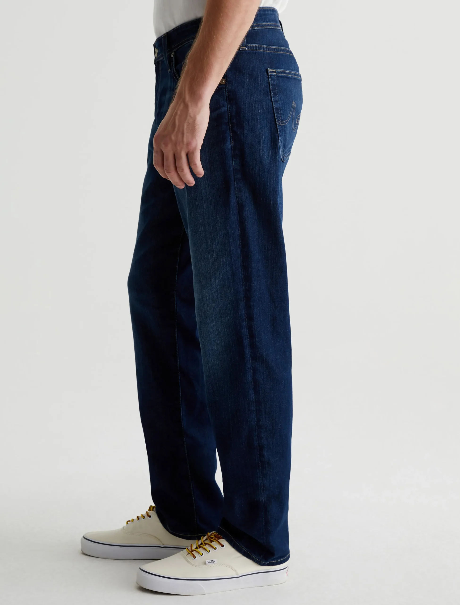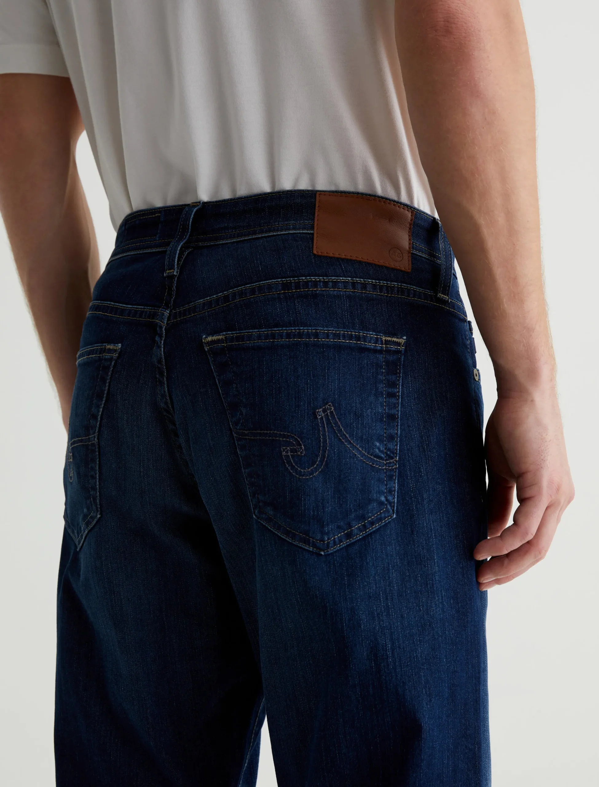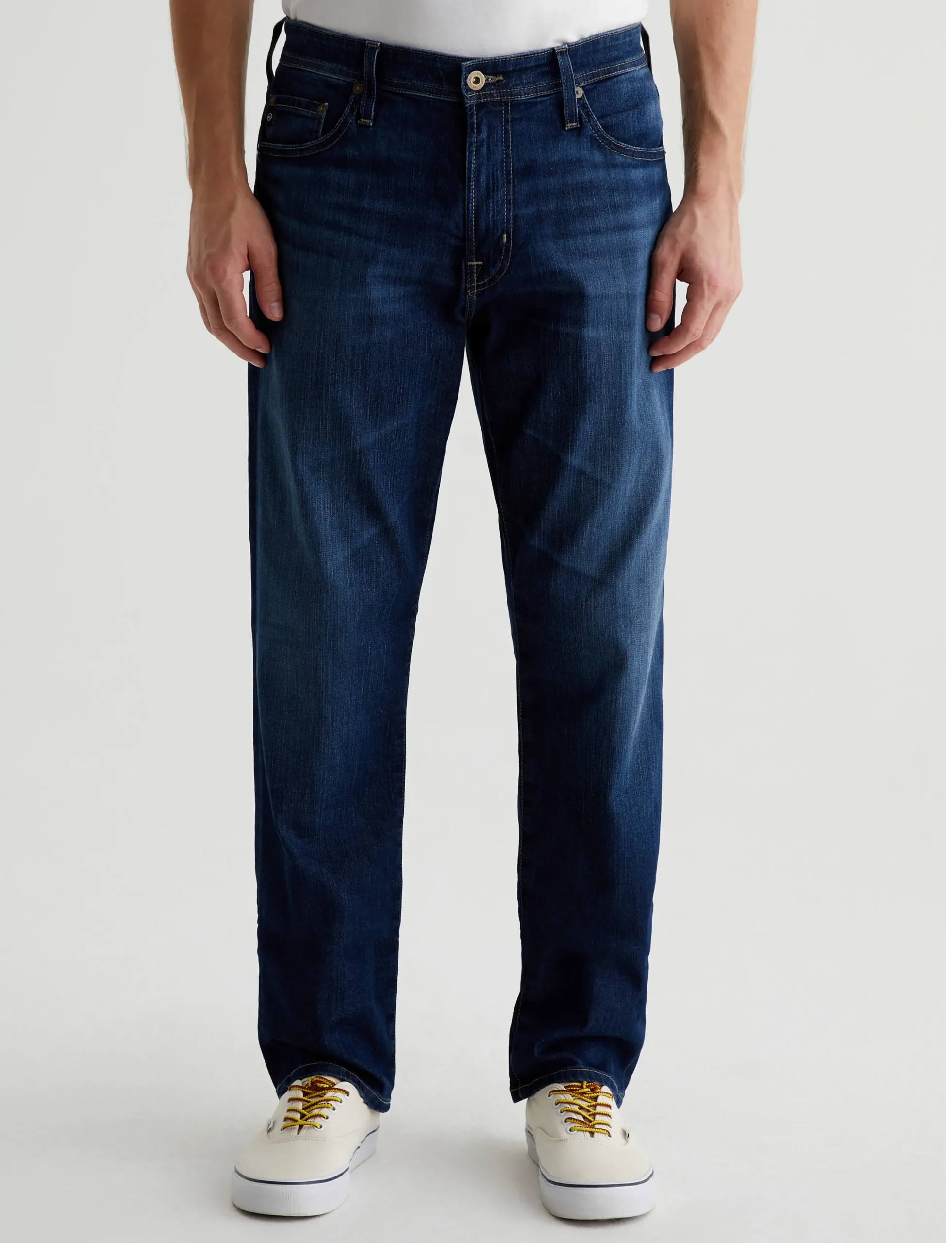 Everett is a slim-straight fit for men, featured here in a dark indigo wash with fading and whiskering. The style has a mid-rise waist and a straight fit that’s relaxed from hip to knee before slightly tapering at the leg opening. These men’s slim-straight jeans are designed in 9 oz. Airluxe™ Aerial Nylon Denim with technical stretch that lets you move with ease.