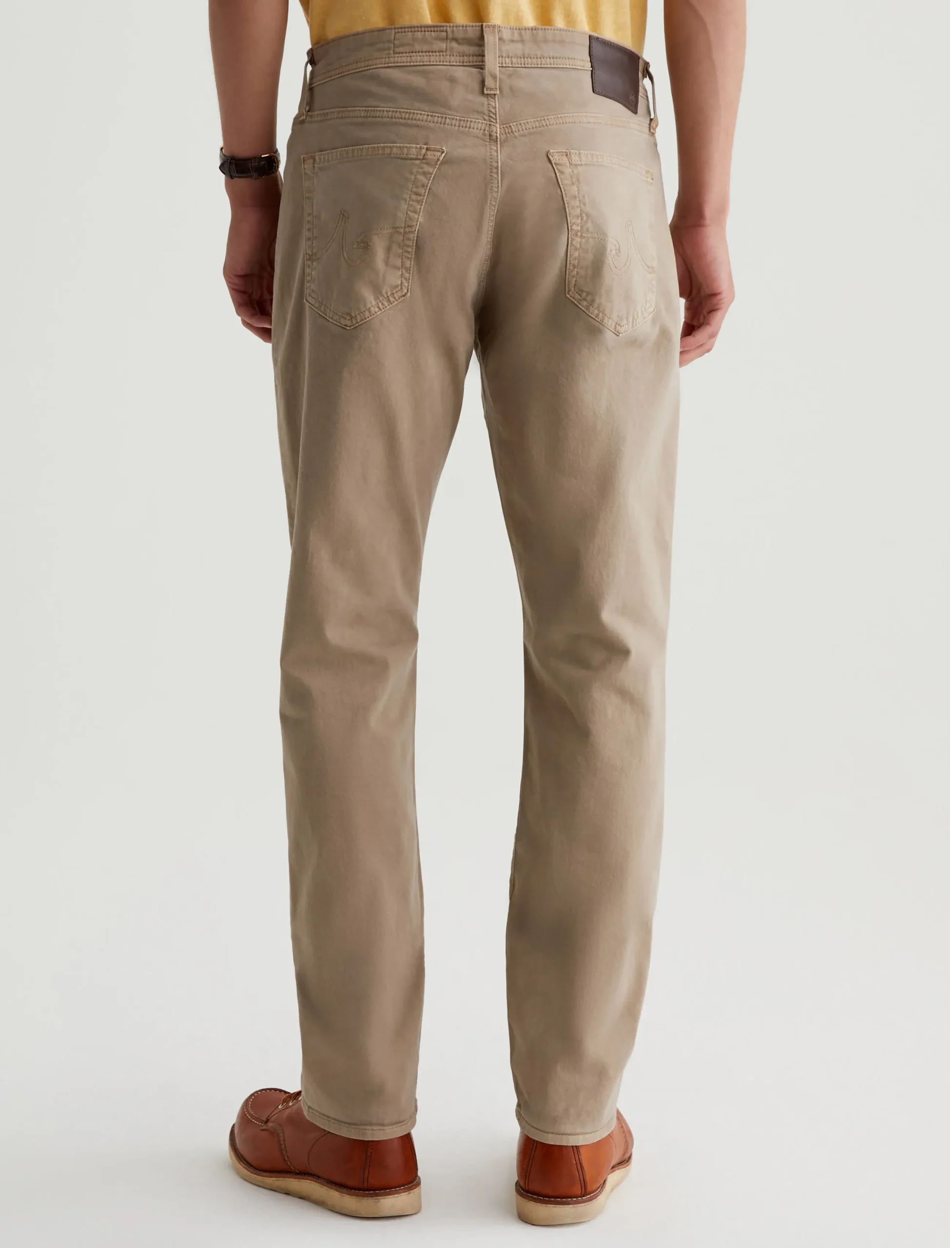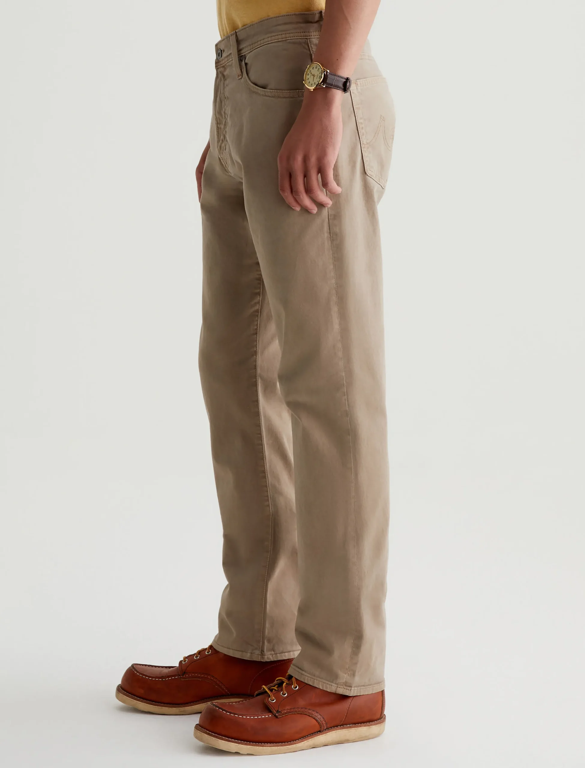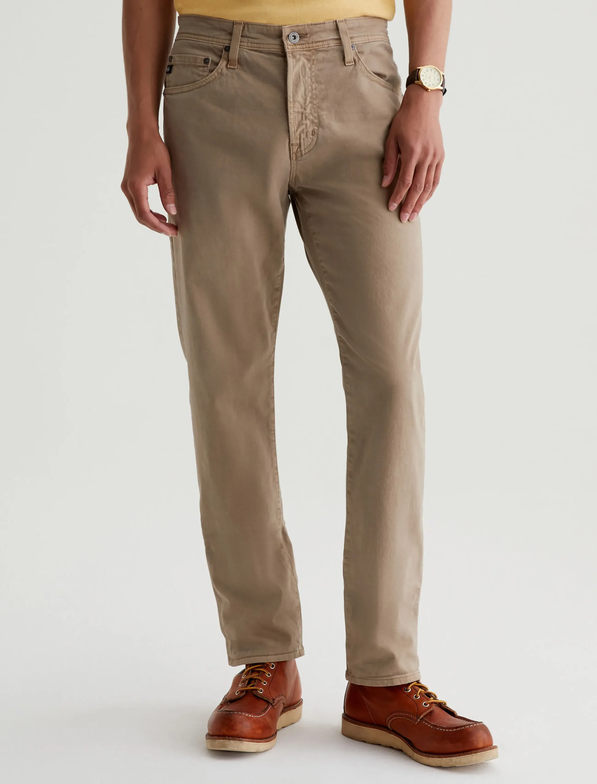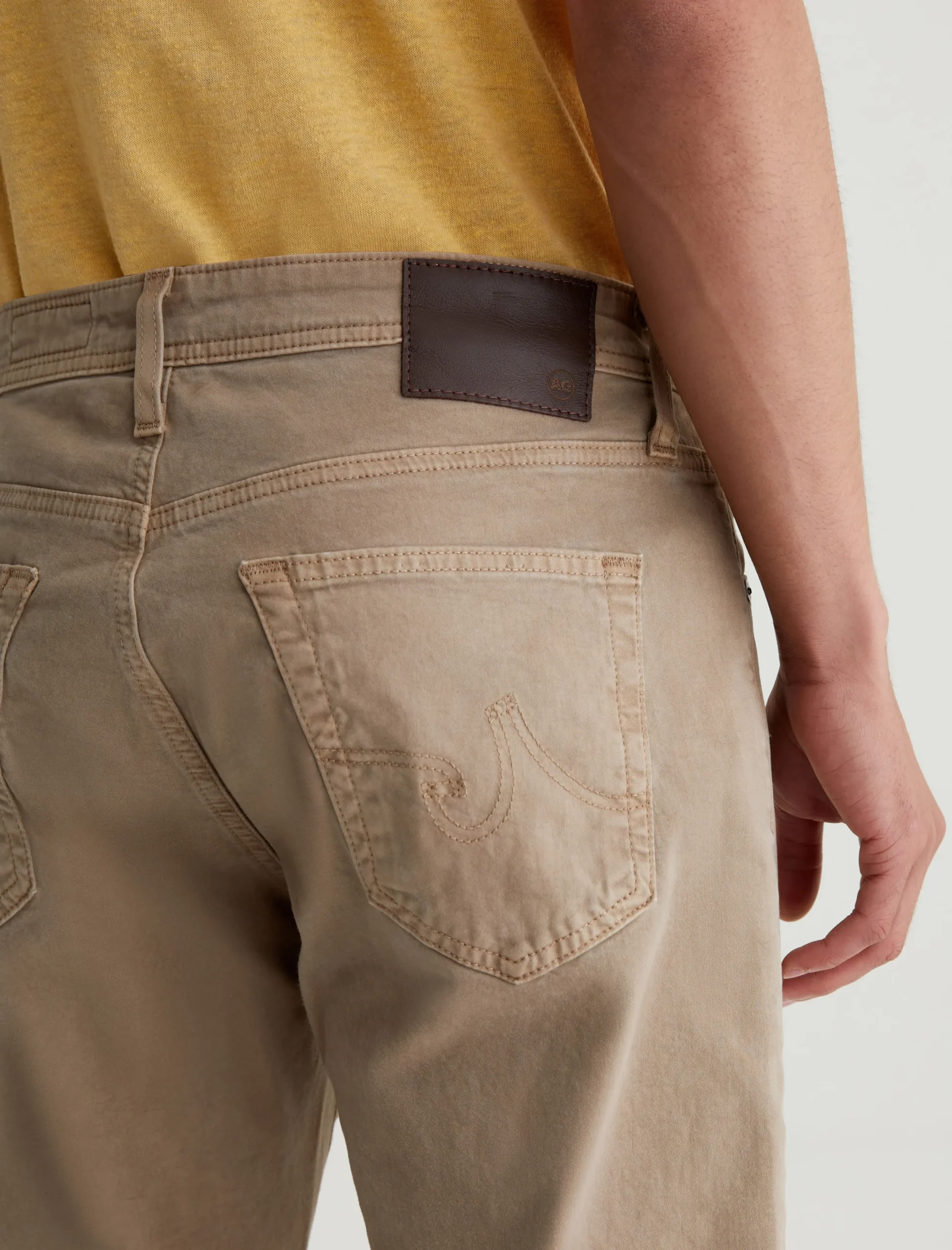Everett is a slim straight men’s jean crafted in 8.4 oz. Sueded Stretch Sateen from Italy. Refined to the touch, it’s been sulfur-dyed for a light brown shade with a gently faded finish. This five-pocket style has a comfortable mid-rise waist and a straight fit that’s relaxed from hip to the knee before slightly tapering at the leg opening.