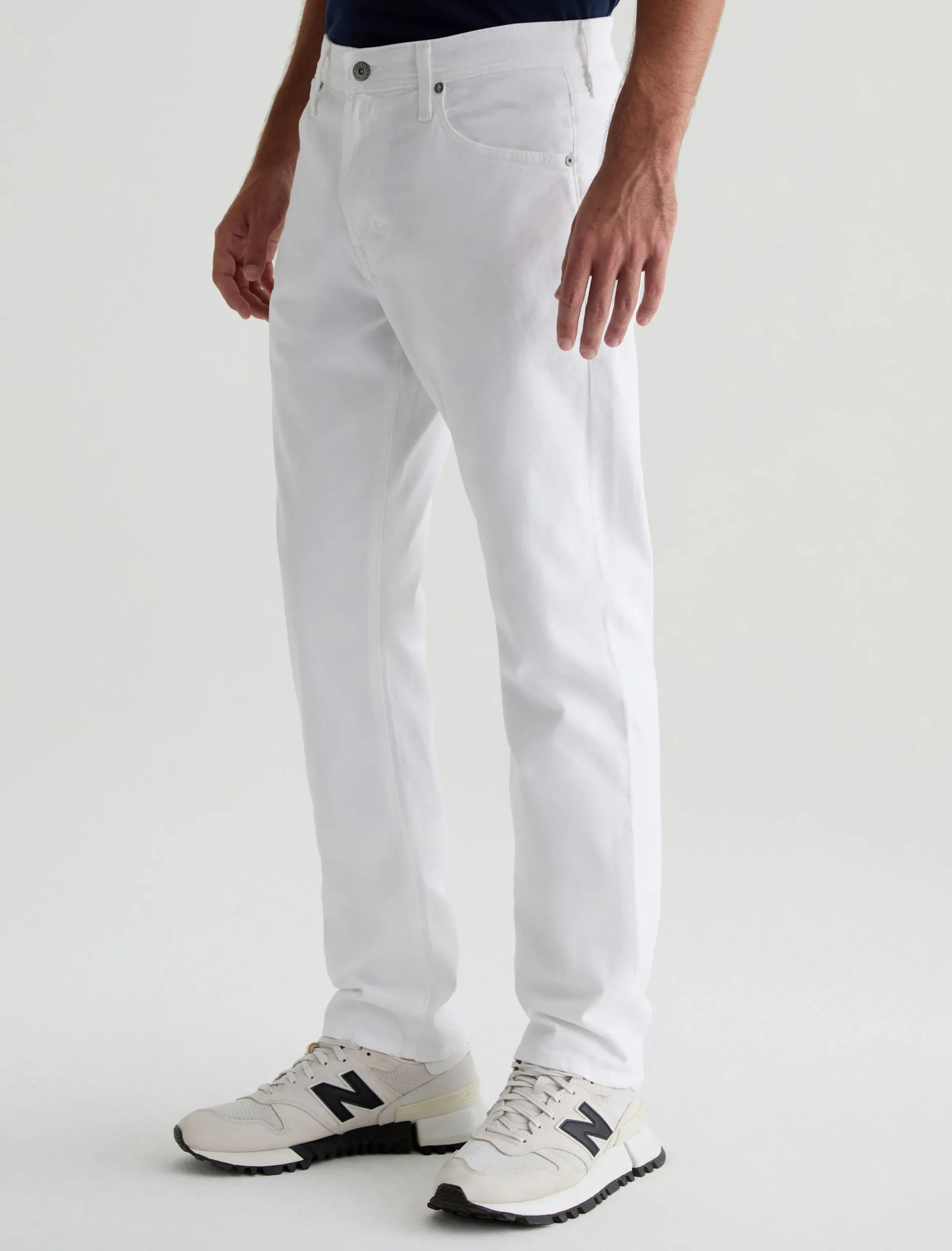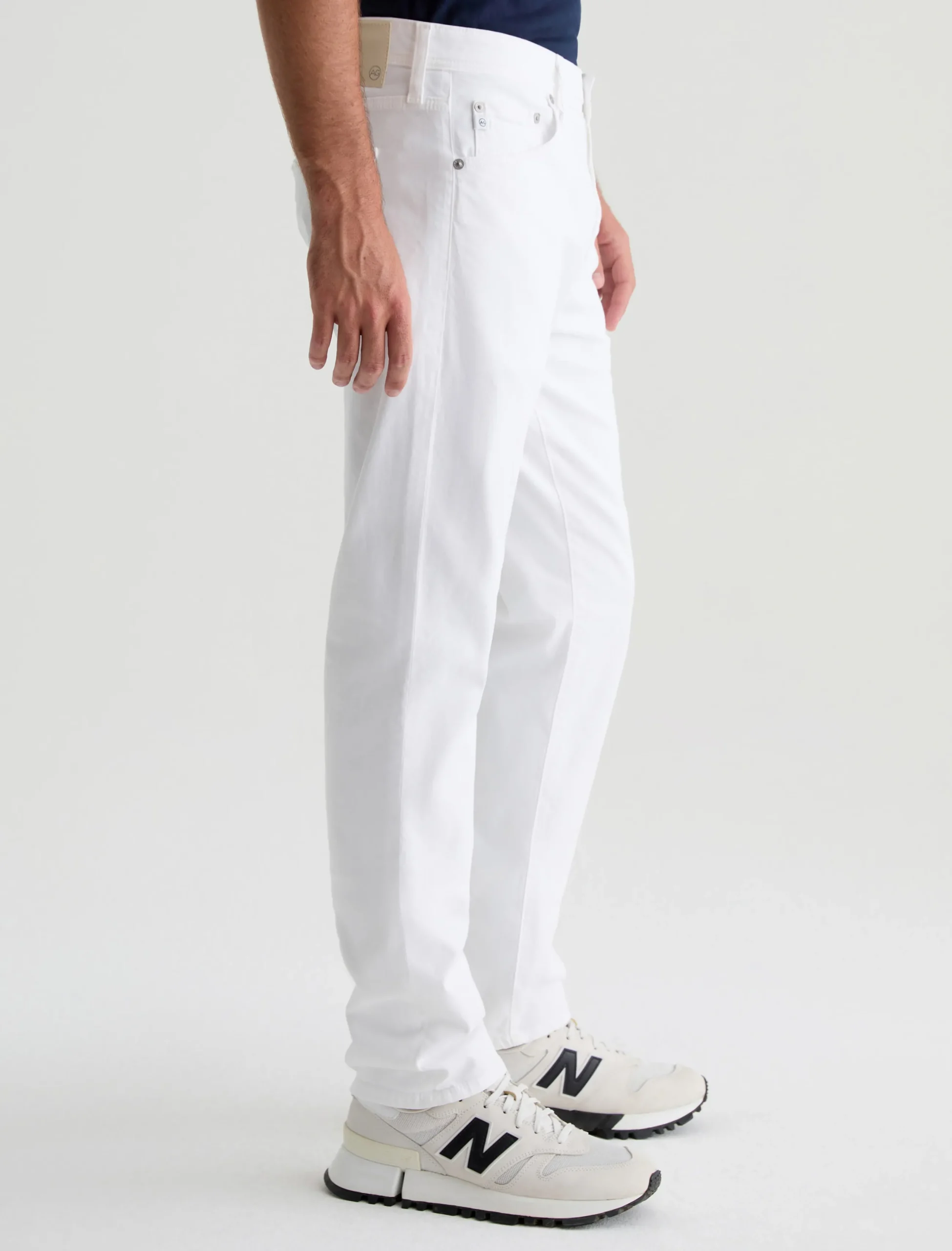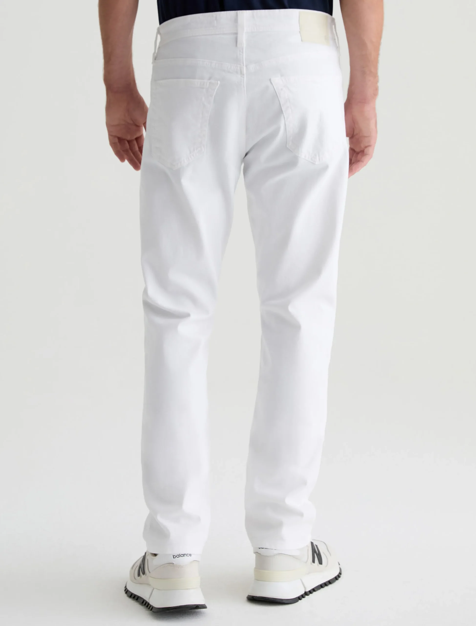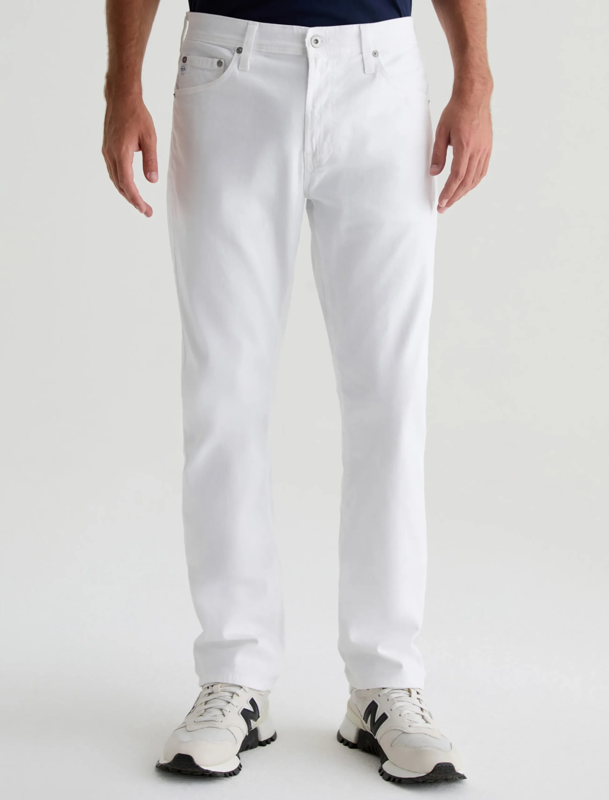 Everett is a slim straight jean for men featuring a white hue—cut in a comfortable mid-rise waist with a straight fit that’s relaxed from hip to the knee before slightly tapering at the leg opening. This men’s slim straight jean is designed in 8.4 oz. Sueded Stretch Sateen, a super stretch fabrication for maximum comfort and understated luxury.