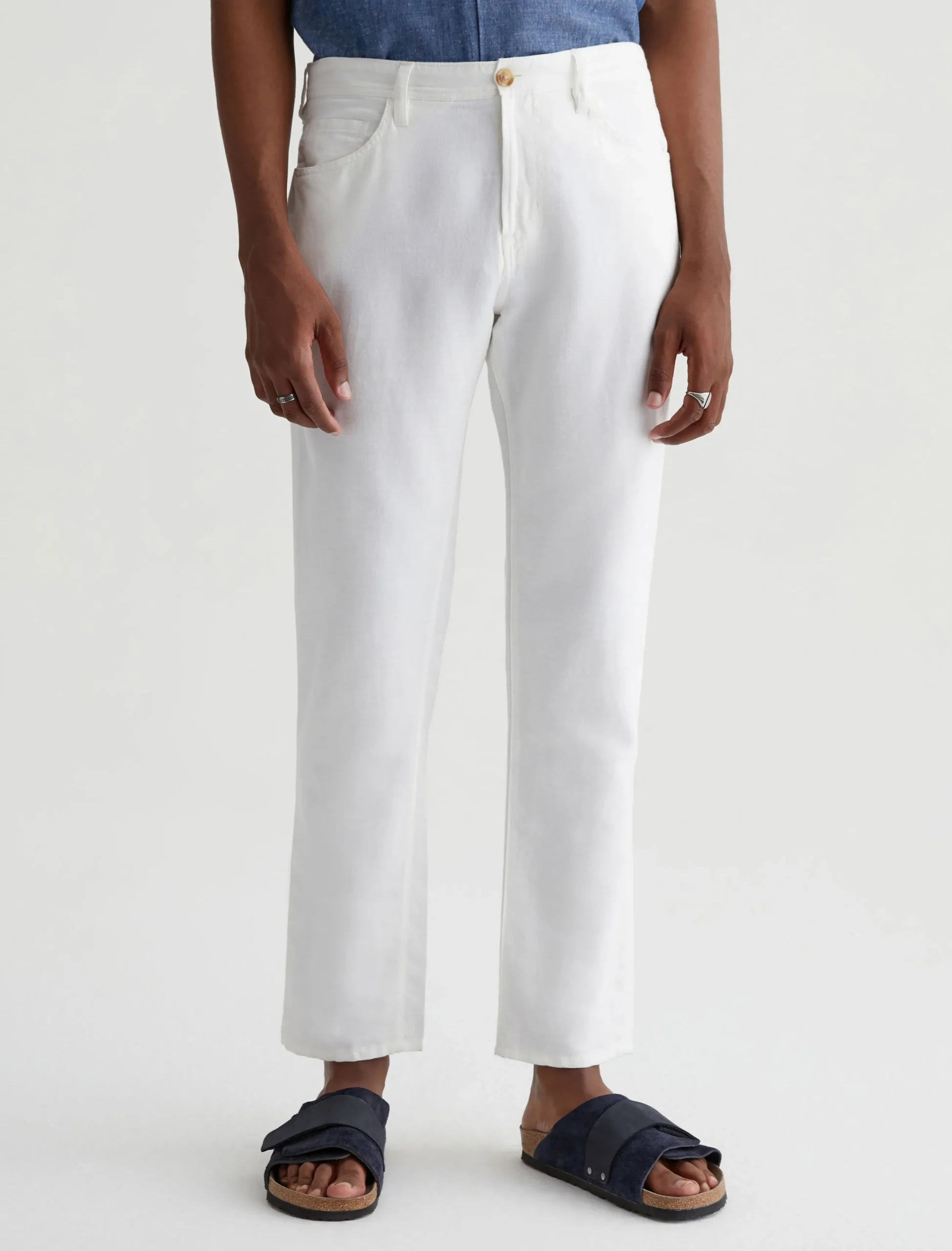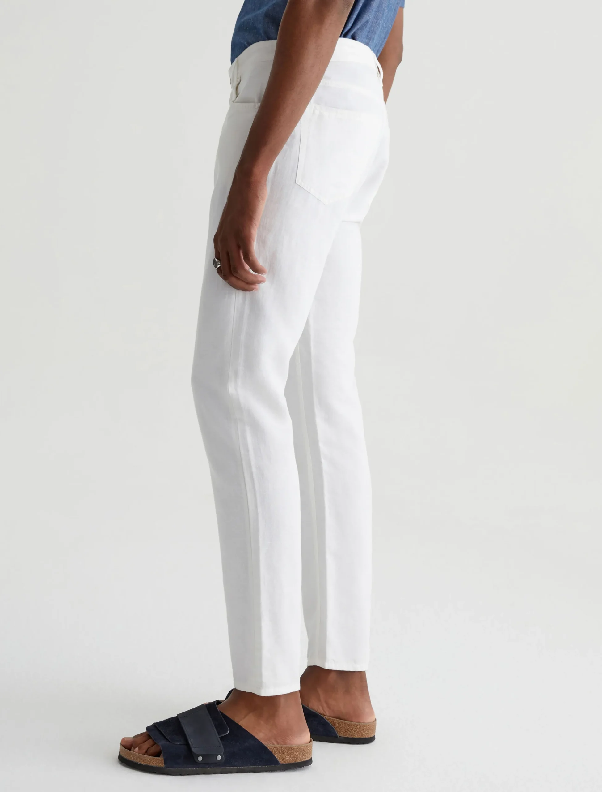 Our Everett slim straight gets a summery update in a white linen blend with a soft, airy feel. It’s cut with a comfortable mid-rise waist and a straight fit that’s relaxed from hip to the knee before slightly tapering at the leg opening. This men’s slim straight pant has classic five-pocket styling with a zip fly and faux-horn button.