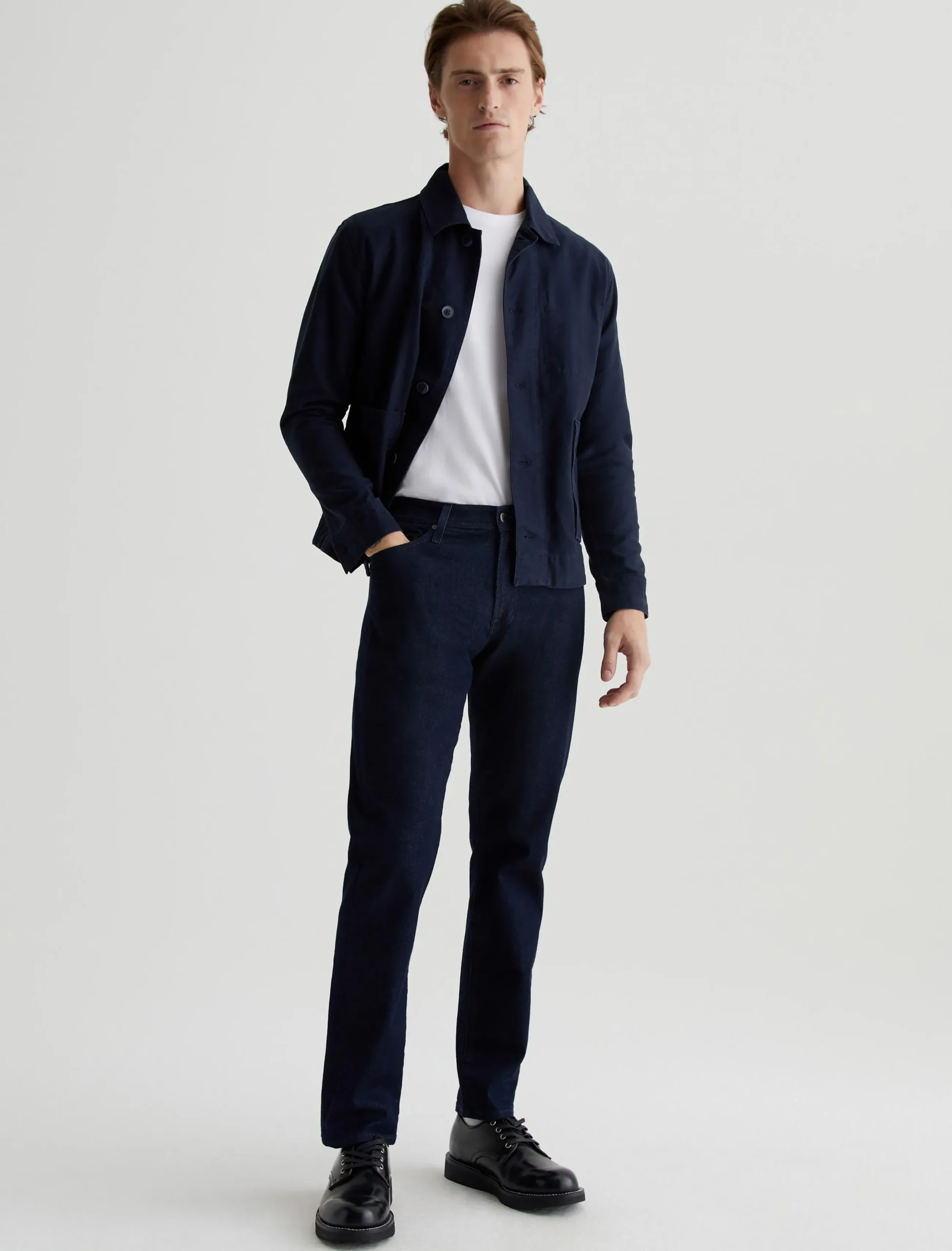 The Graduate is a pair of men’s jeans featuring a tailored-leg silhouette in a clean, dark wash. Designed with a slim mid-rise waist, it’s got a relaxed fit from hip to knee before tapering at the leg opening. This style comes in 9.4 oz. Hyper Soft Indigo Denim, a velvety-soft left-hand twill from our AG Cloud Soft Denim™ collection. The fabric’s special construction allows the yarns to gently relax and untwist for a supple feel that gets softer with every wear. Dual-elastic performance fibers offer premium stretch and recovery.