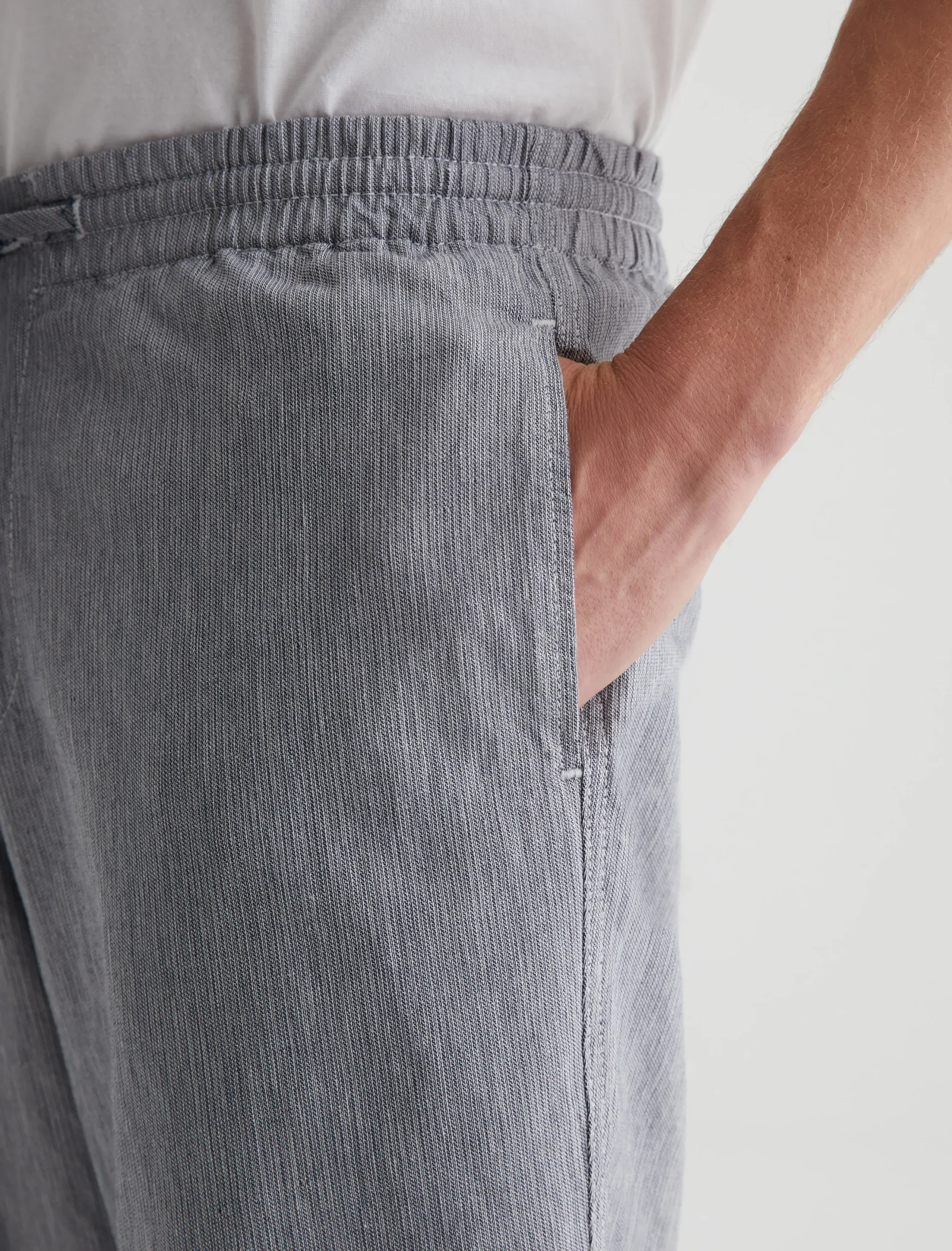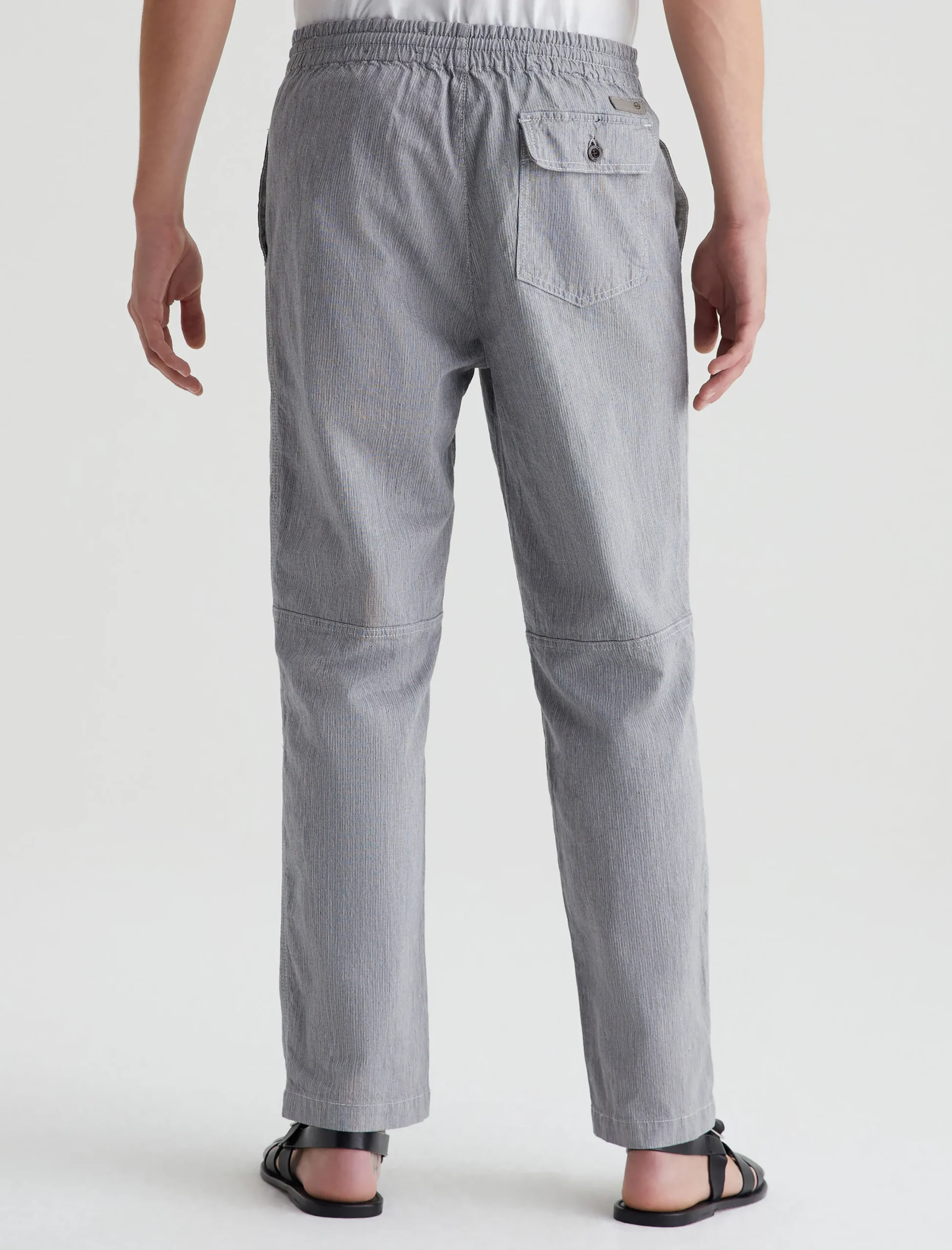 The Henry relaxed drawstring pant keeps your weekend style on point. Lightweight and subtly striped in ayarn-dyed comfortable elasticized waist with a contrasting drawstring, these cotton pants have an easy fit with on-seam pockets and paneled knees.