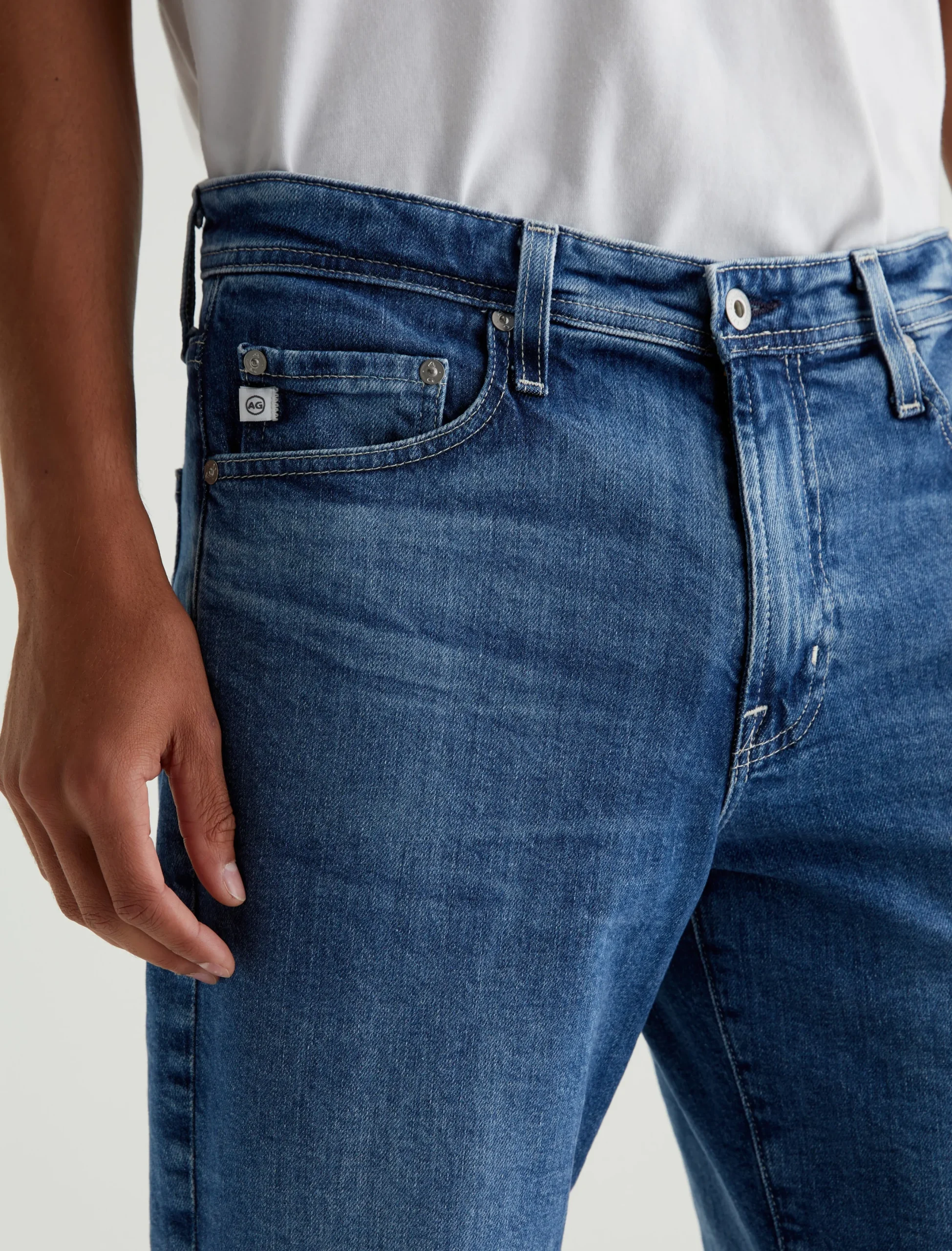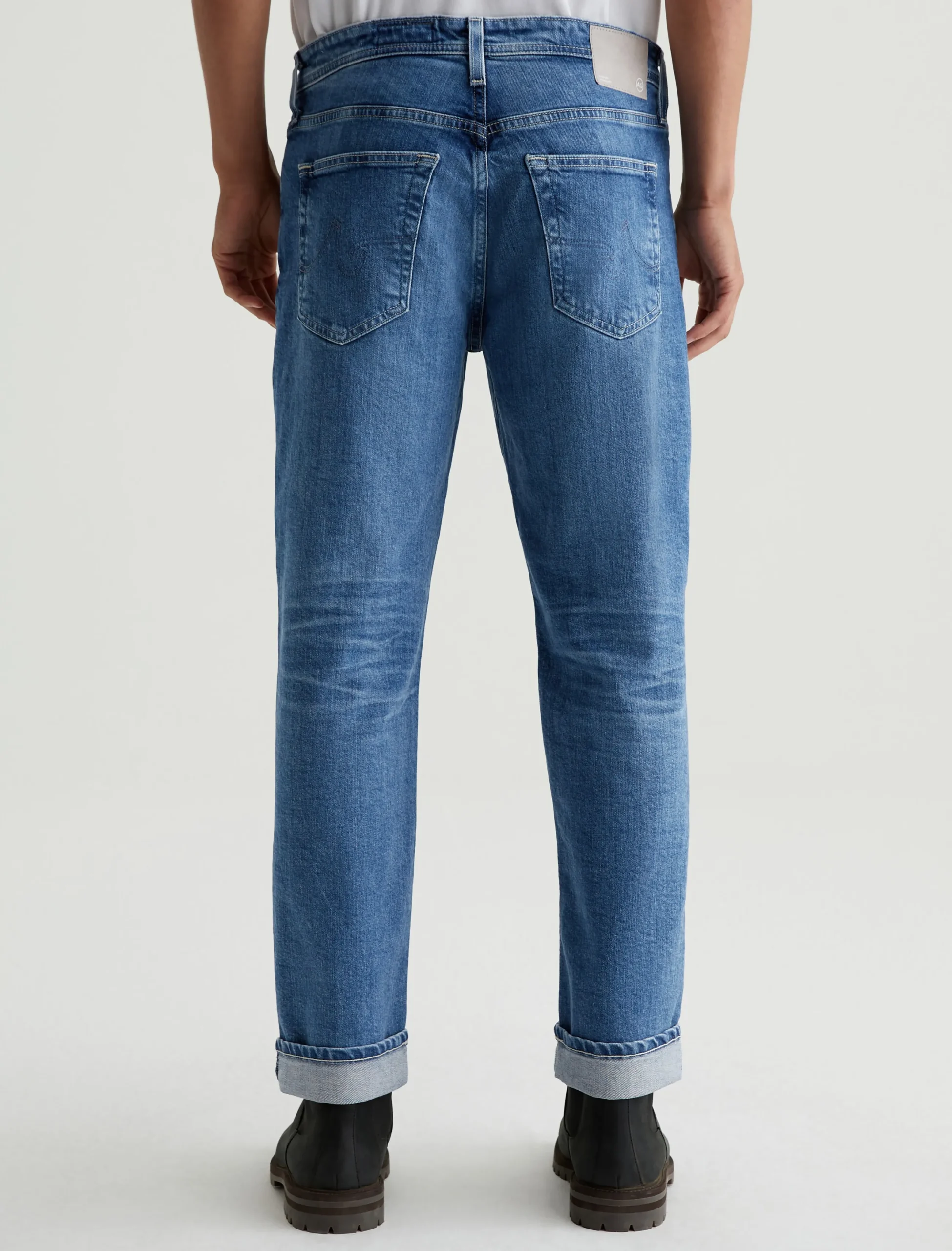 The Kace 28 updates our classic straight fit in a slightly cropped length that’s easy to wear cuffed. Crafted from 11.75 oz. Vintage Comfort Stretch Denim, the pair here features a medium indigo shade achieved through eco-friendly AG Vapor Wash™ technology. These men’s straight-leg jeans have a mid-rise waist and a relaxed fit from hip to knee before tapering at the leg opening. Our AG Vapor Wash™ process significantly reduces the use of water, chemicals, and energy to lessen environmental impact. Finished with a vegan and 100% biodegradable cellulose patch at the back waistband.
