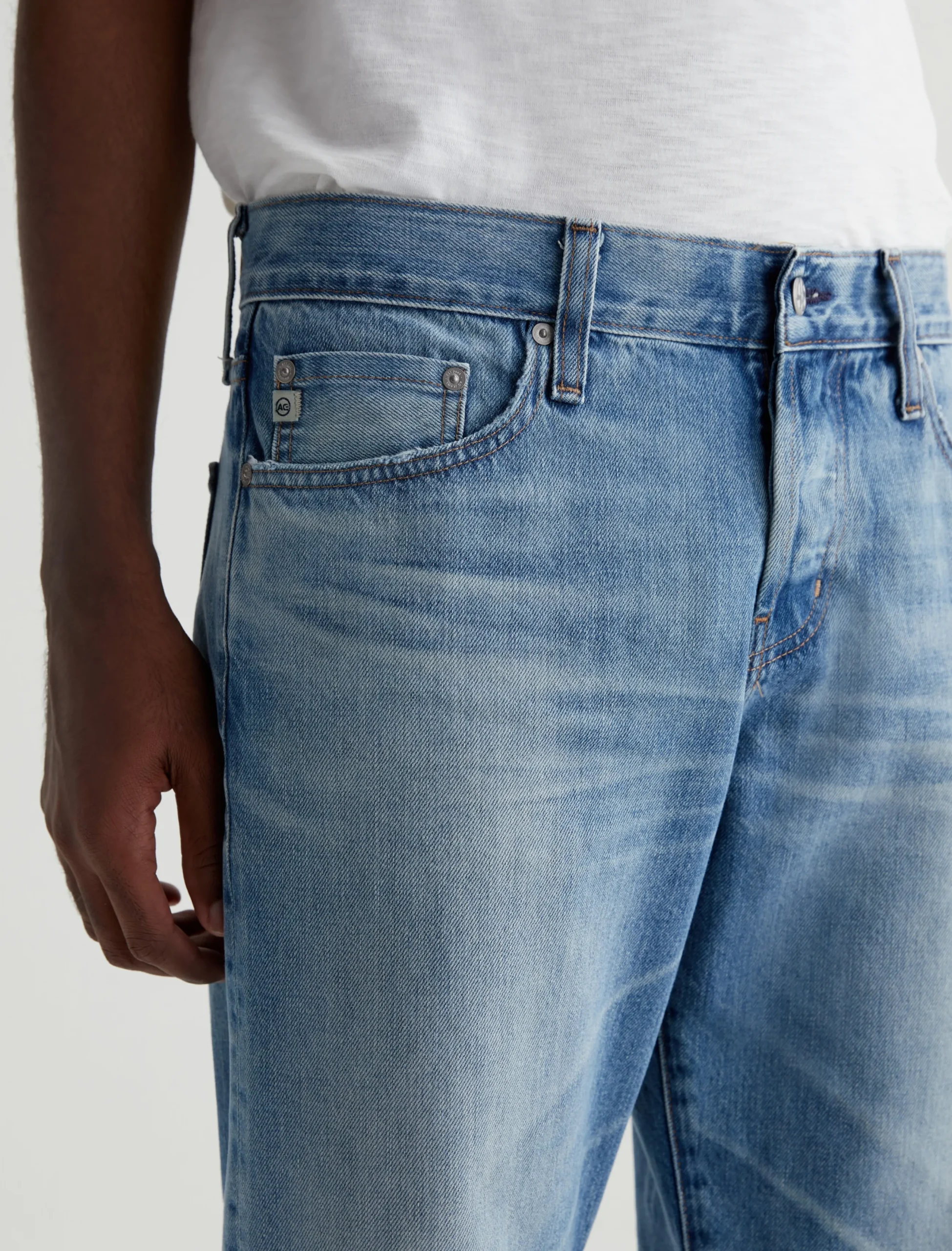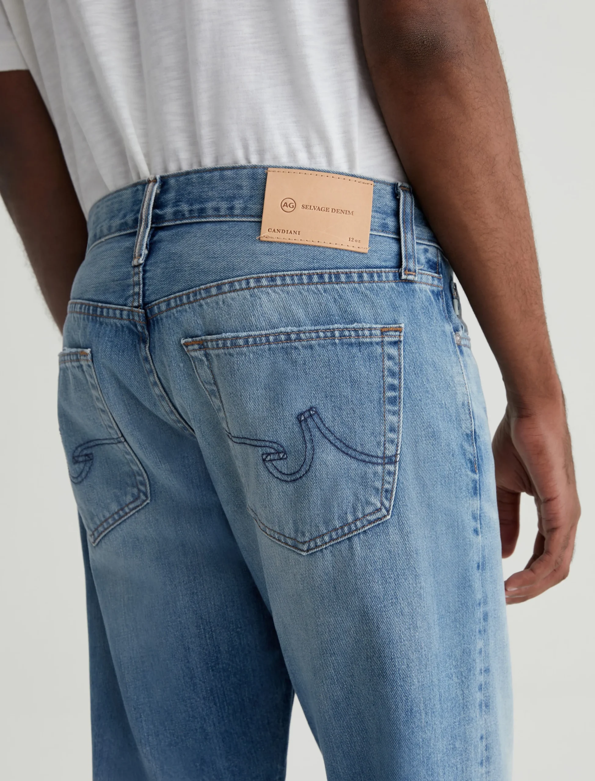 Kace is a modern straight-leg jean, updated here with a button fly, cropped inseams, and an AG-ed™ medium indigo wash with a 16-year fade. Anchored by a mid-rise waist, the style has a relaxed fit from hip to the knee before tapering to a cuffed leg opening. These 5-pocket men’s jeans are designed in Robechetto Rigid Selvage Denim from Italy and feature subtle wear at the edges for a naturally lived-in character.