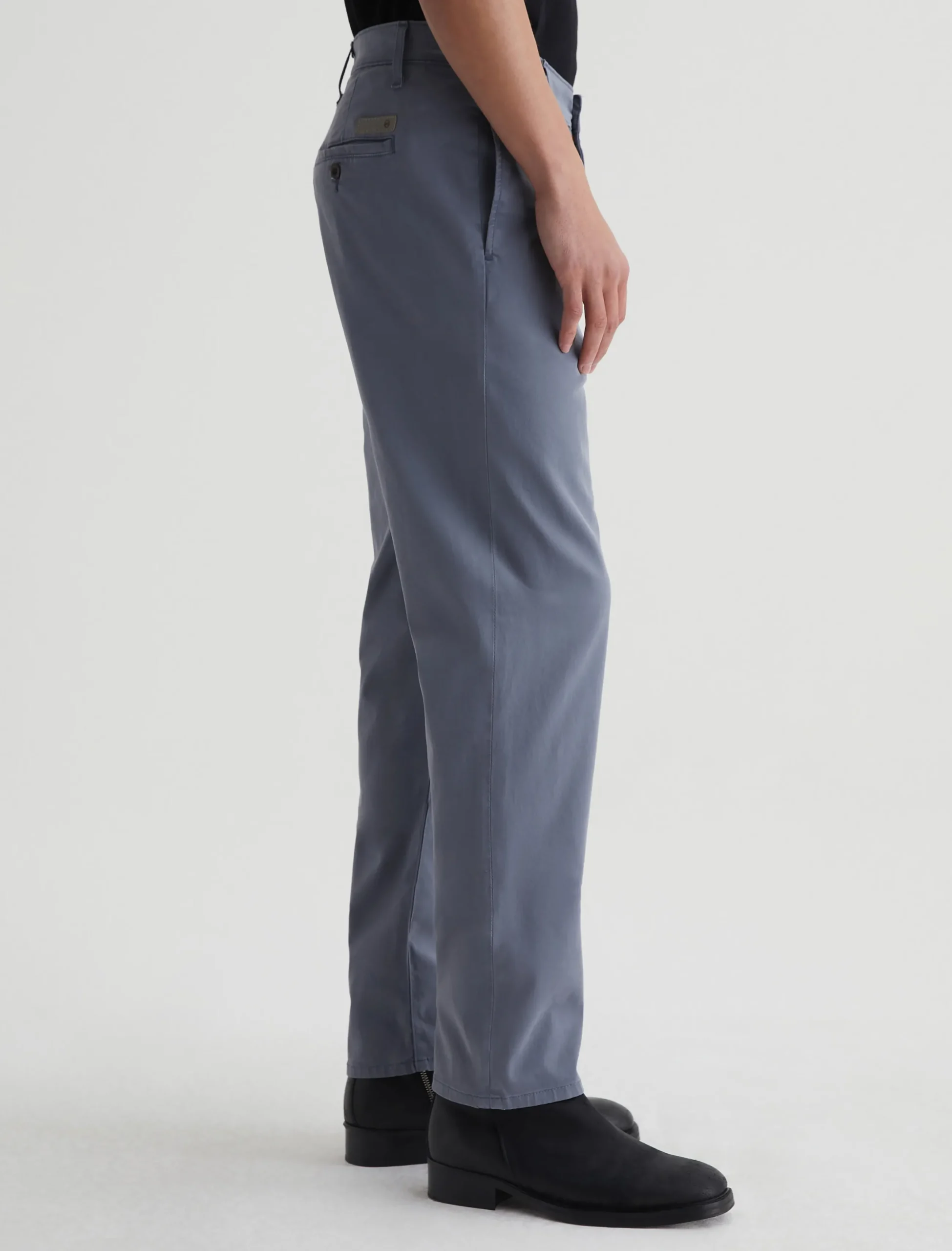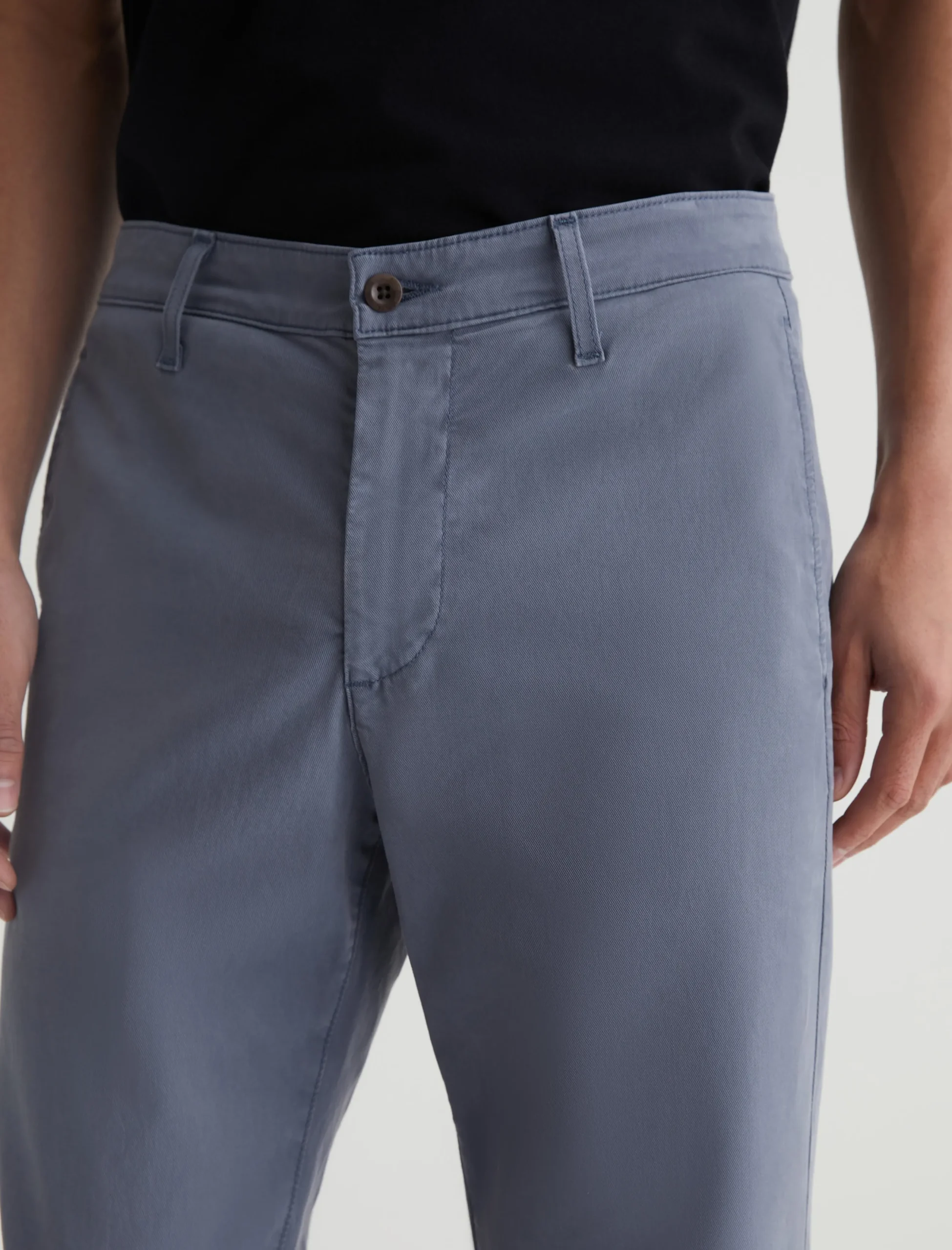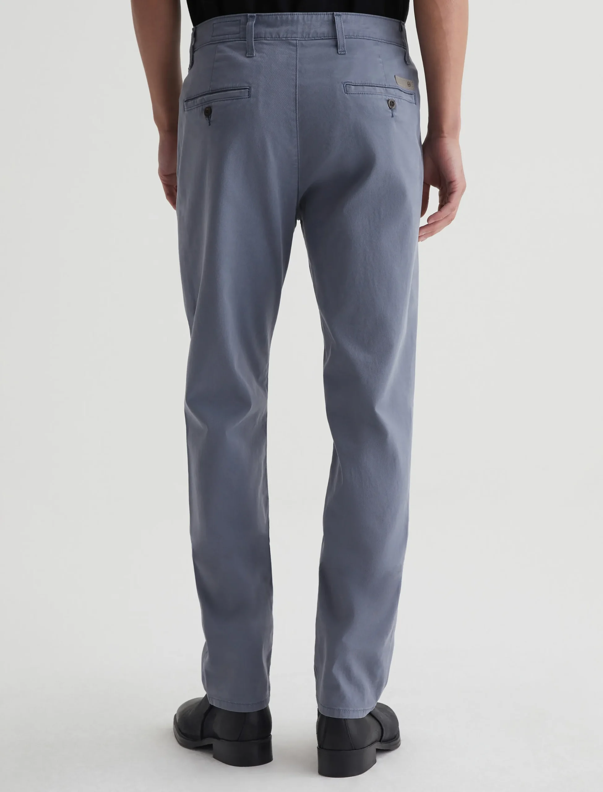 Kullen is a slim trouser crafted from 7.9 oz. Sorrento Stretch Twill, a refined Italian fabric in a light blue shade. These slim-cut men’s pants feature on-seam pockets for a streamlined aesthetic. Welt pockets at the back complete the look.