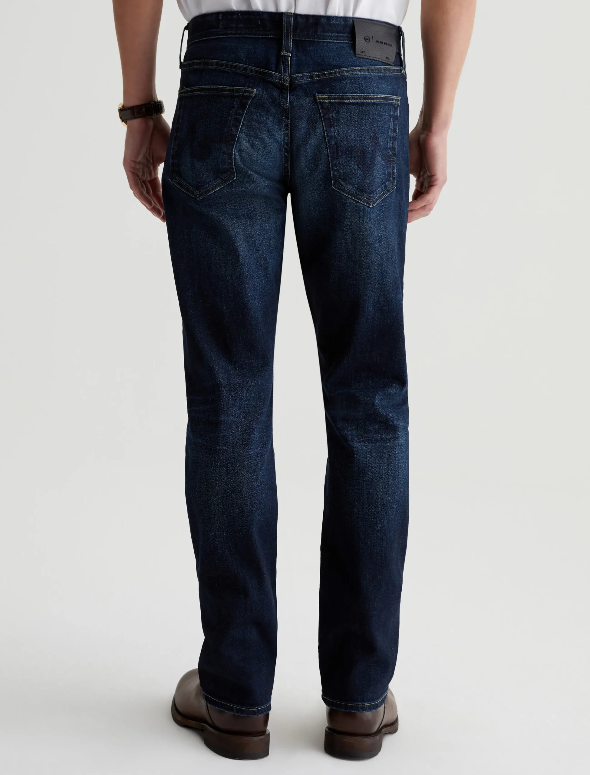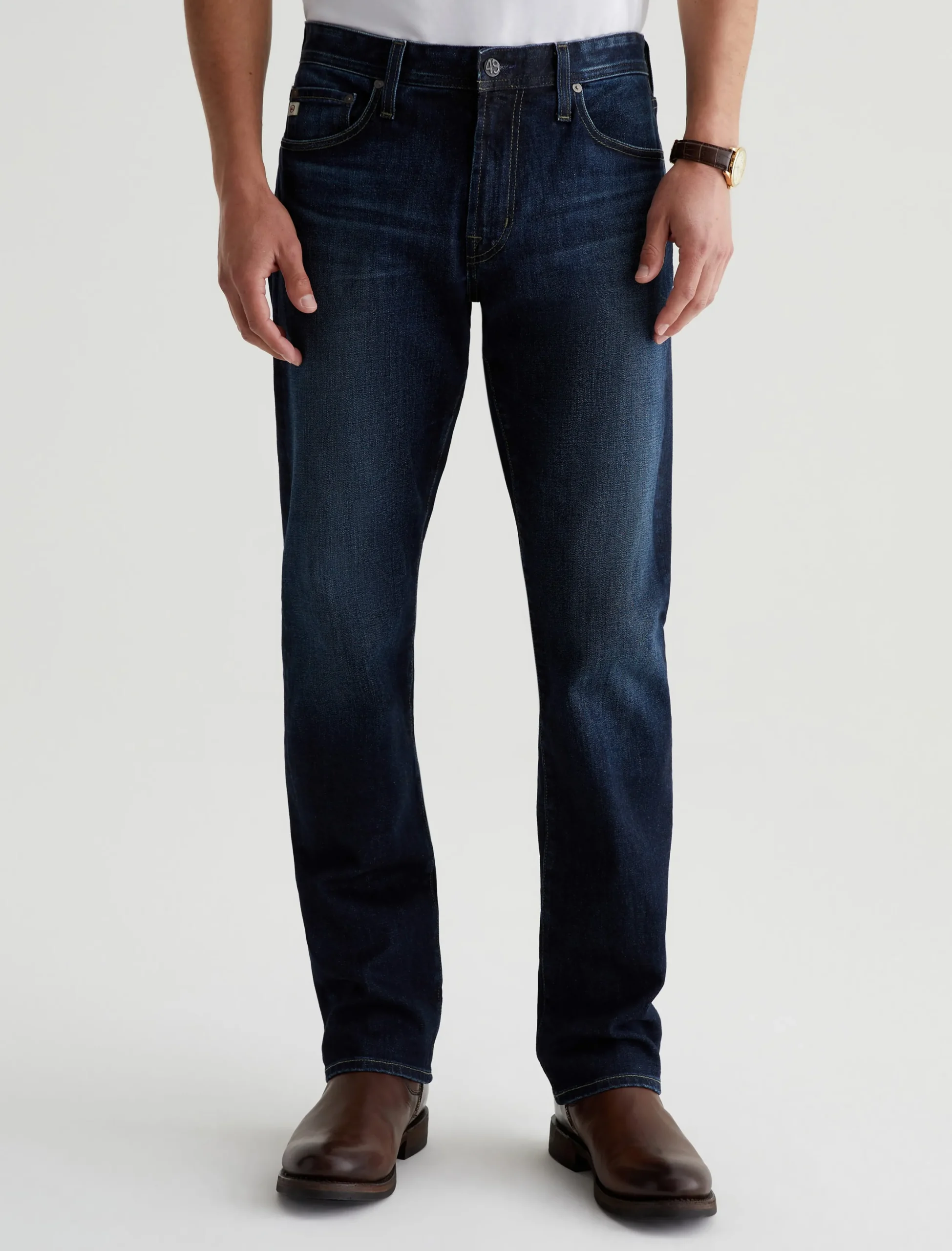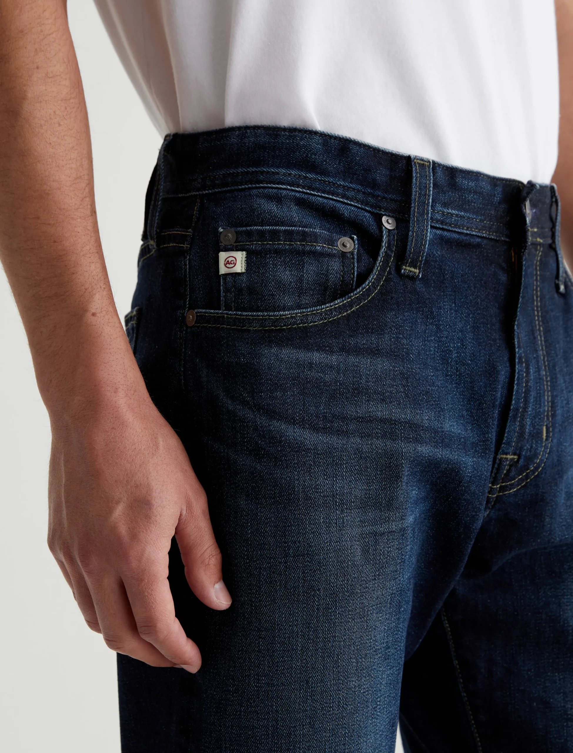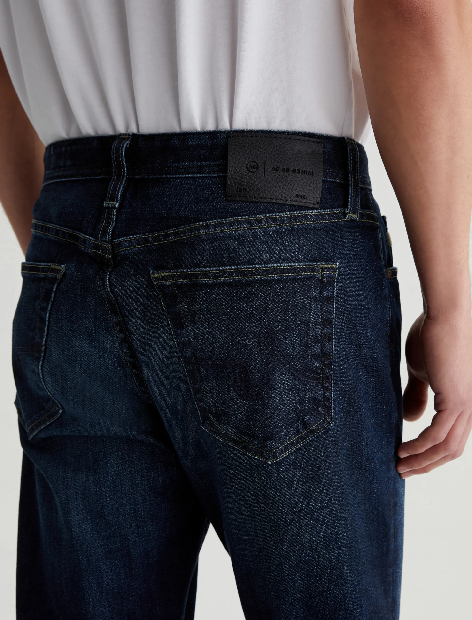 Our Protégé classic straight fit returns in 11.2 oz. New Union Dark Denim from Italy. Washed to a versatile indigo shade, it’s got an AG-ed™ 5-year fade with whiskering and contrast stitching. These men’s straight-leg jeans have an easy fit through the thighs and a clean finish at the leg openings.