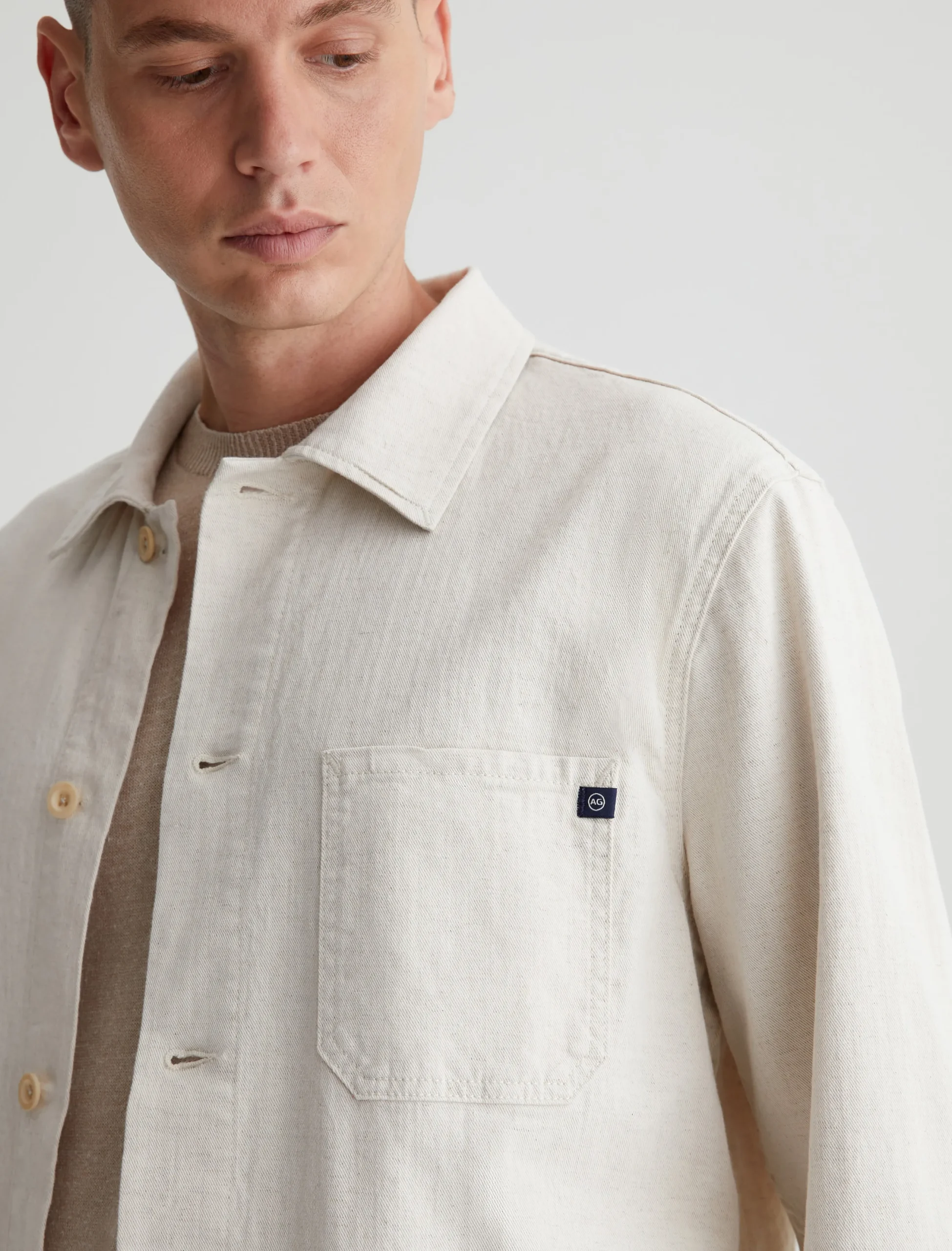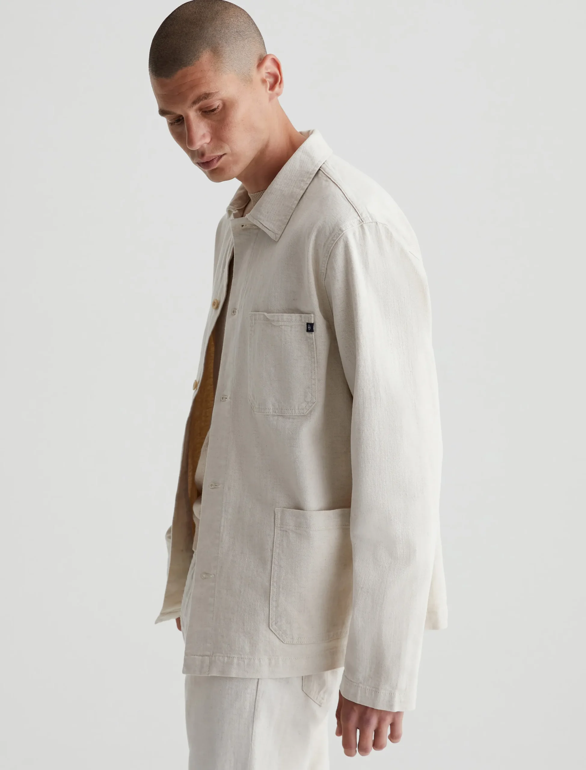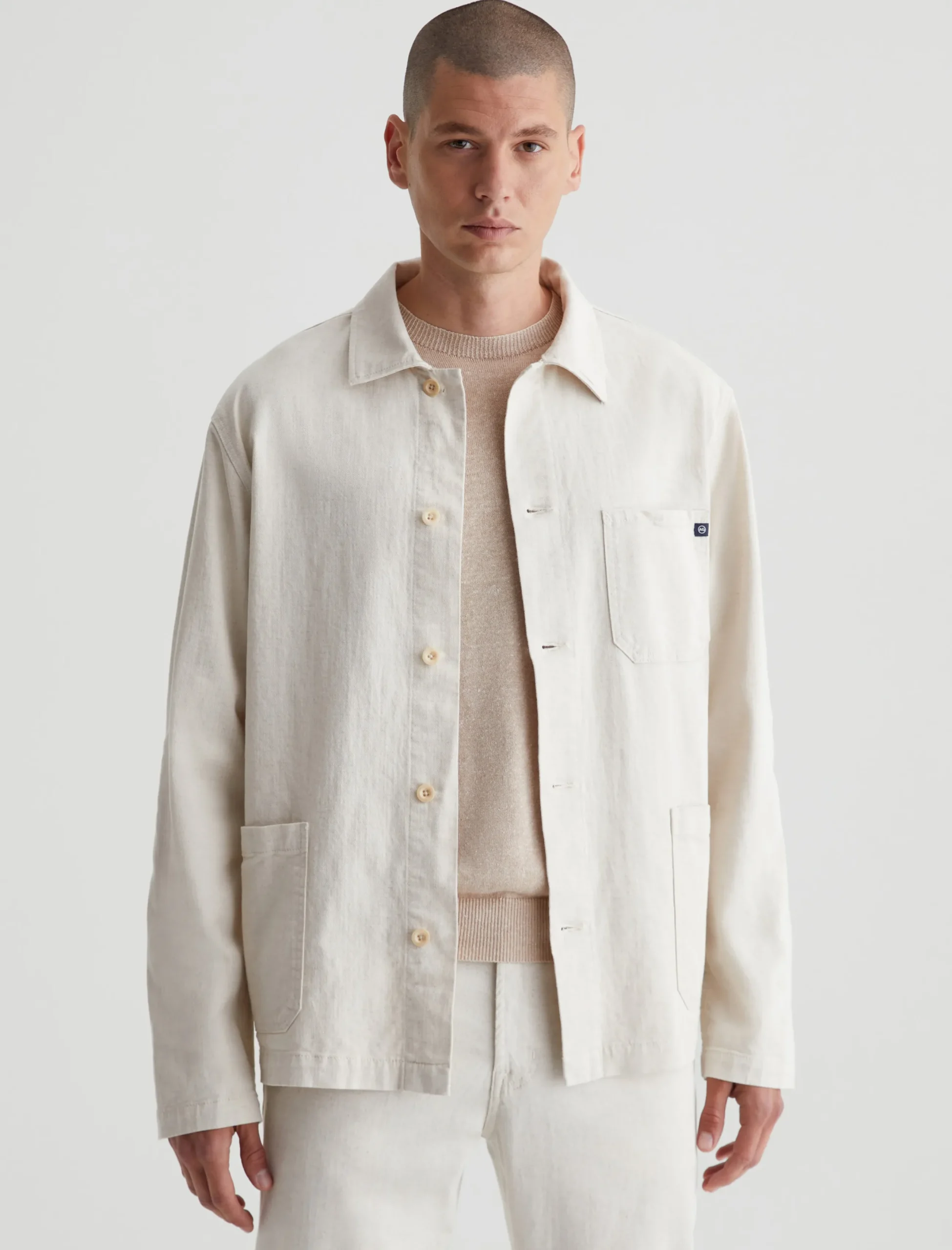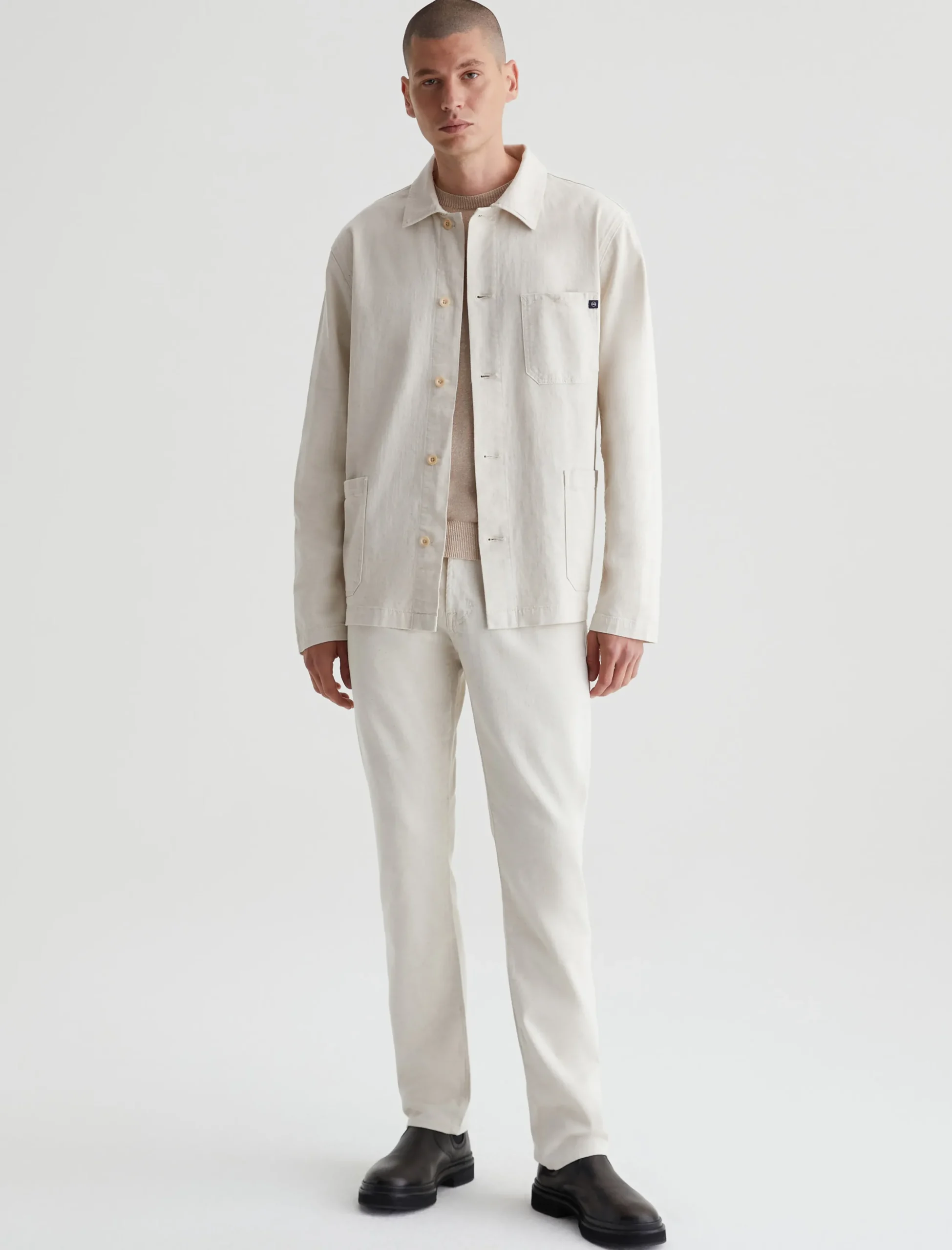 A lightweight layer inspired by the classic French chore coat. The Roari jacket has a loose fit with a slightly longer length and three patch pockets at the front. Fastened by tonal buttons at the front, it’s made from 7.8 oz. Simple Linen Twill with a touch of stretch.