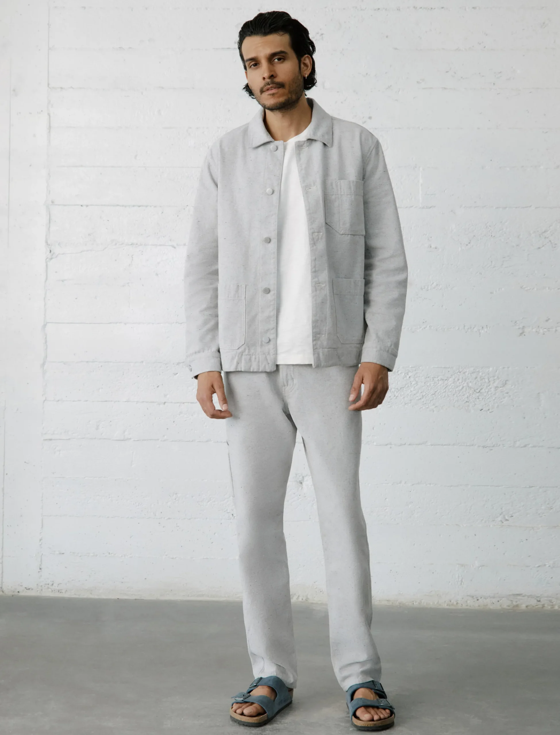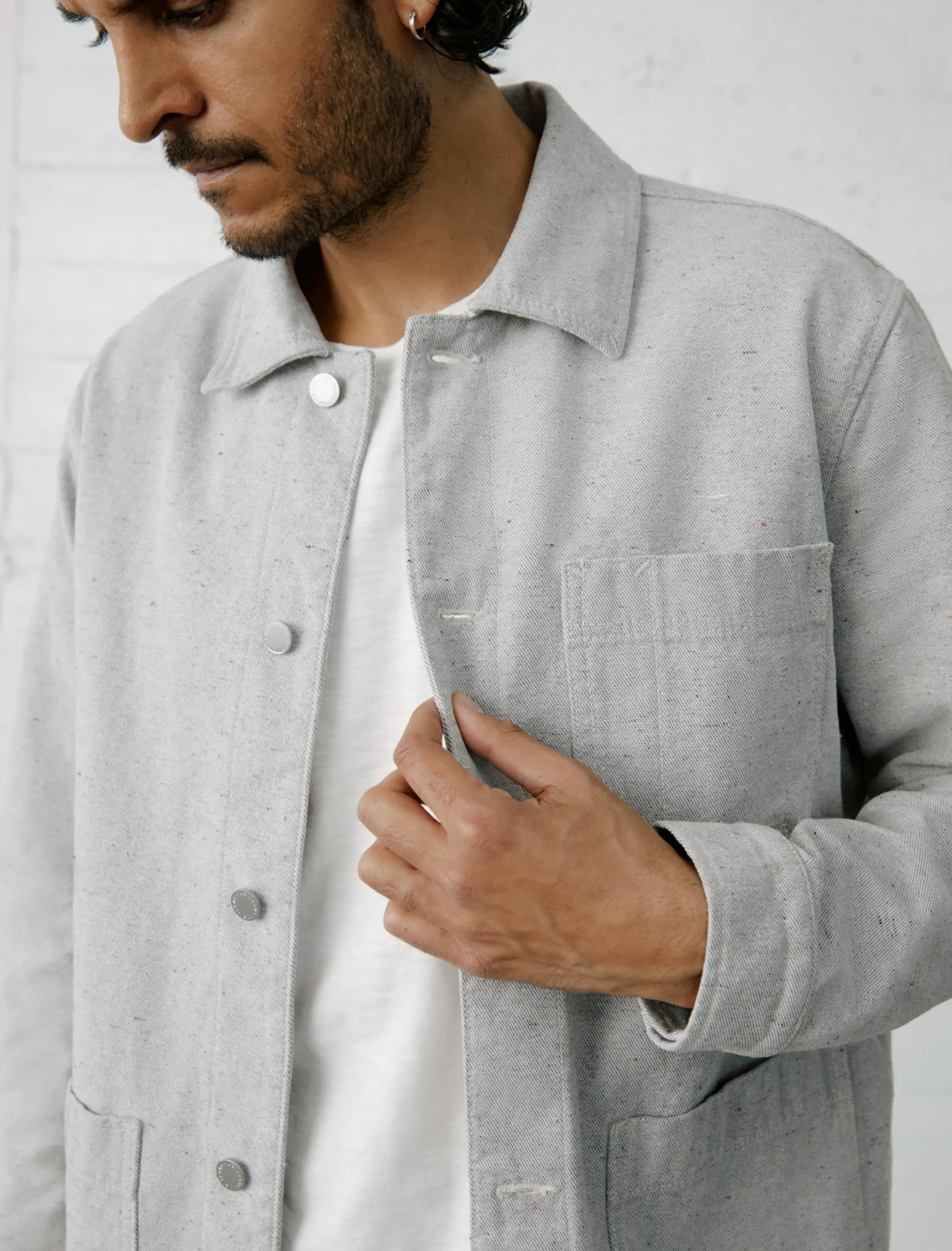 A modern take on the classic French chore coat. The Roari jacket has a loose fit with a slightly longer length and three patch pockets at the front. Part of our Circular Denim initiative from the Jean of Tomorrow collection, it’s crafted from 10.6 oz. Unify Taupe Twill made with recycled cotton and features colorful slubs from the post-consumer goods.
