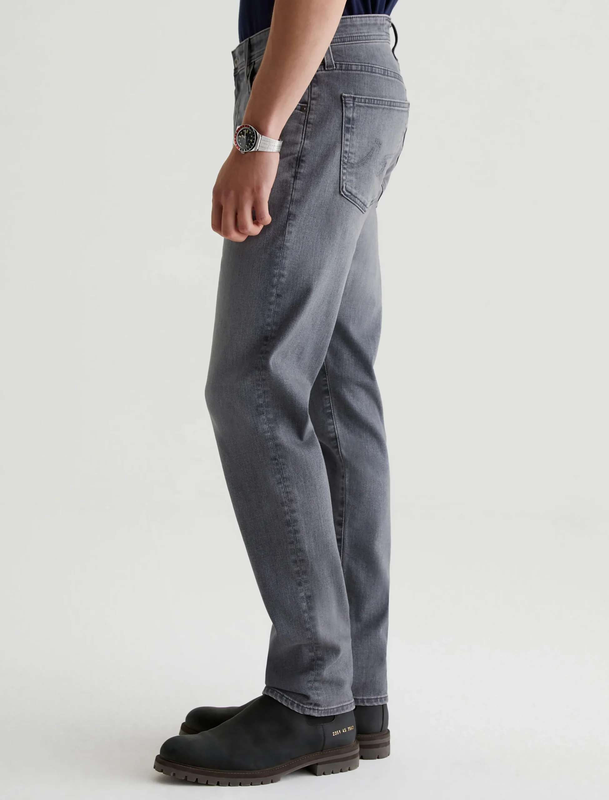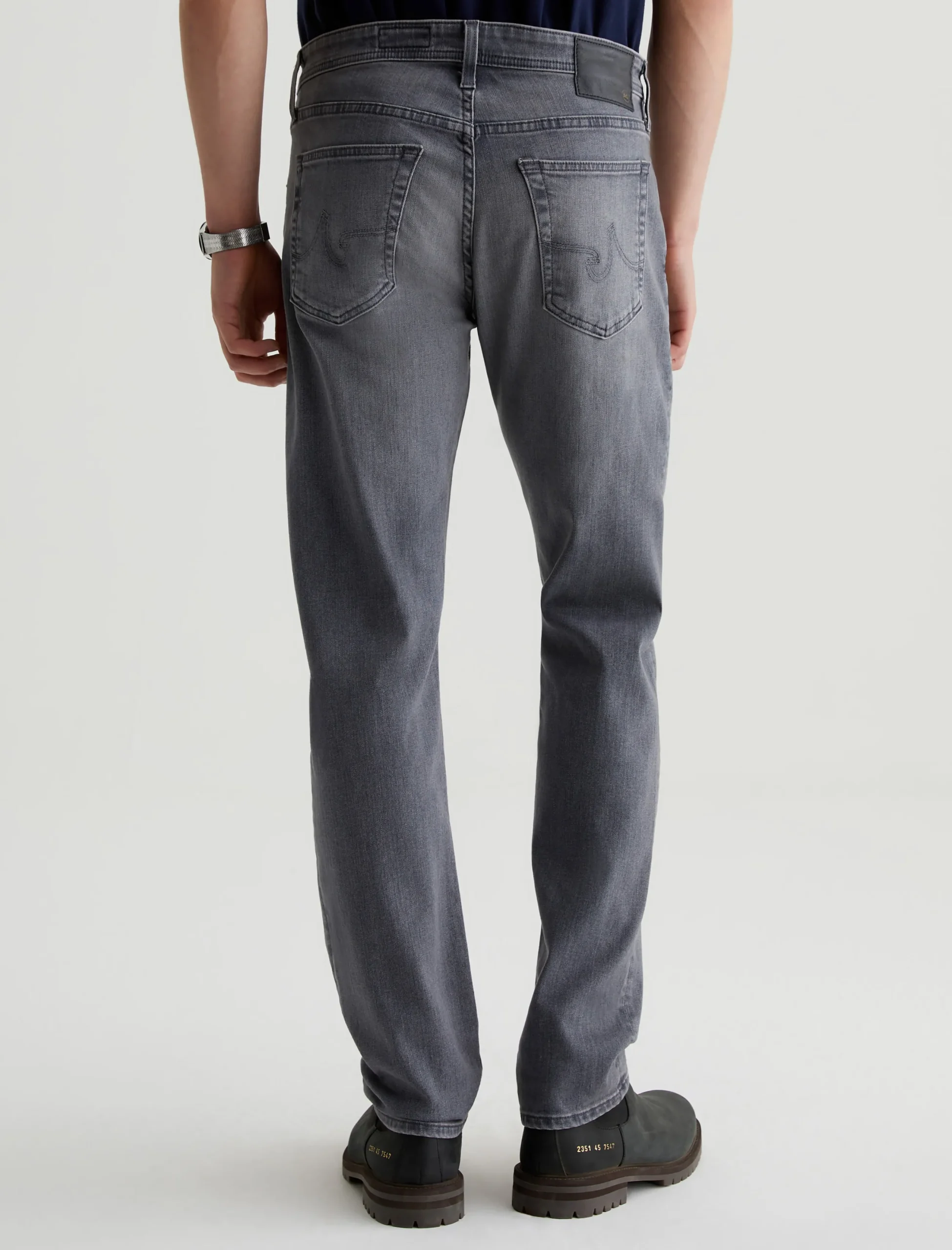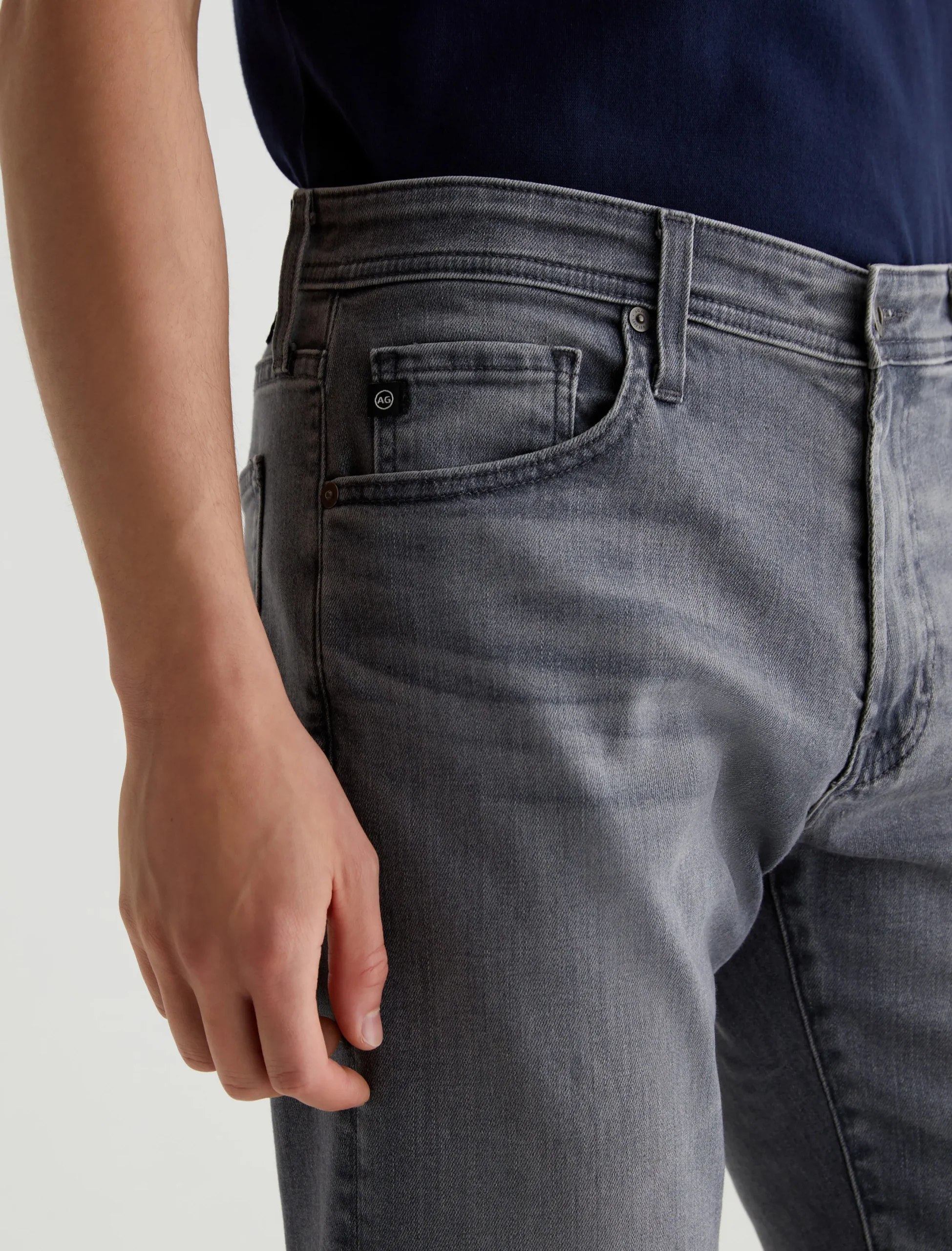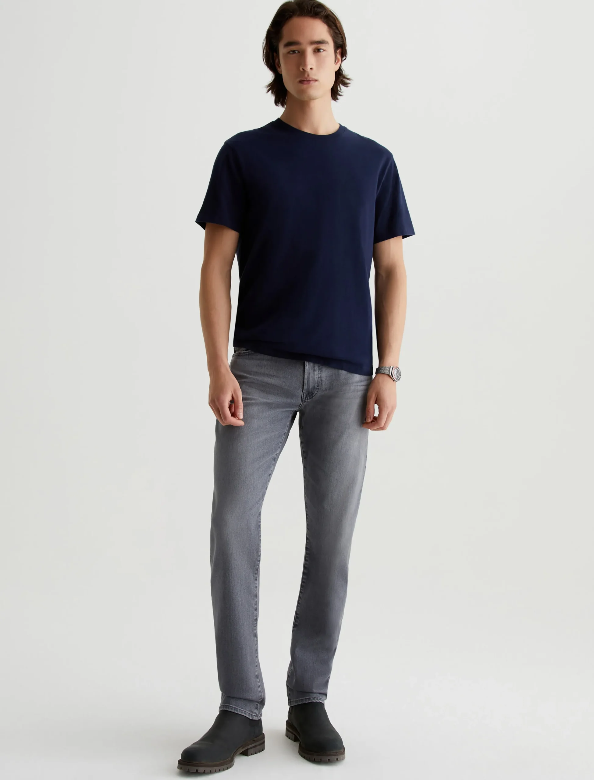 Tellis is a modern slim fit updated in a faded grey wash with hazy whiskering. Characterized by a fitted upper block and tapered leg openings, these five-pocket men’s jeans are designed in 10 oz. Ashen Stretch Denim for enhanced comfort. Our AG Vapor Wash™ process significantly reduces the use of water, chemicals, and energy to lessen environmental impact. Finished with a vegan and 100% biodegradable cellulose patch at the back waistband.