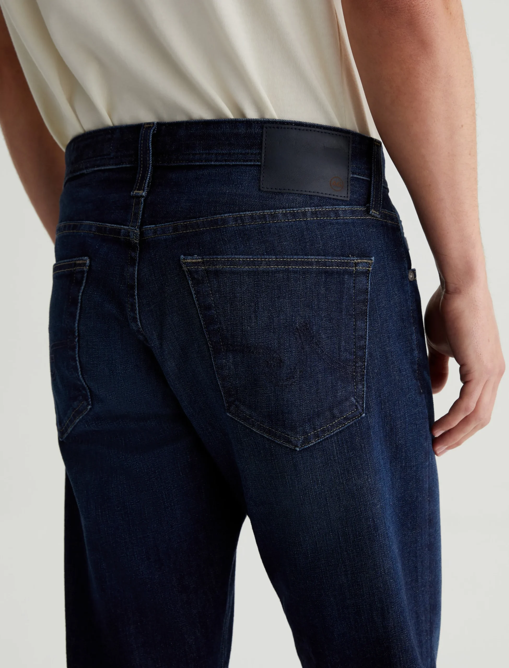 Our Tellis 360° is a modern slim featuring a fitted upper block and tapered leg opening. It’s done in a dark indigo wash with a bit of fading and whiskering. These slim-cut men’s jeans are incredibly comfortable and easy to wear in 11 oz. Flex 360° Denim from Japan.