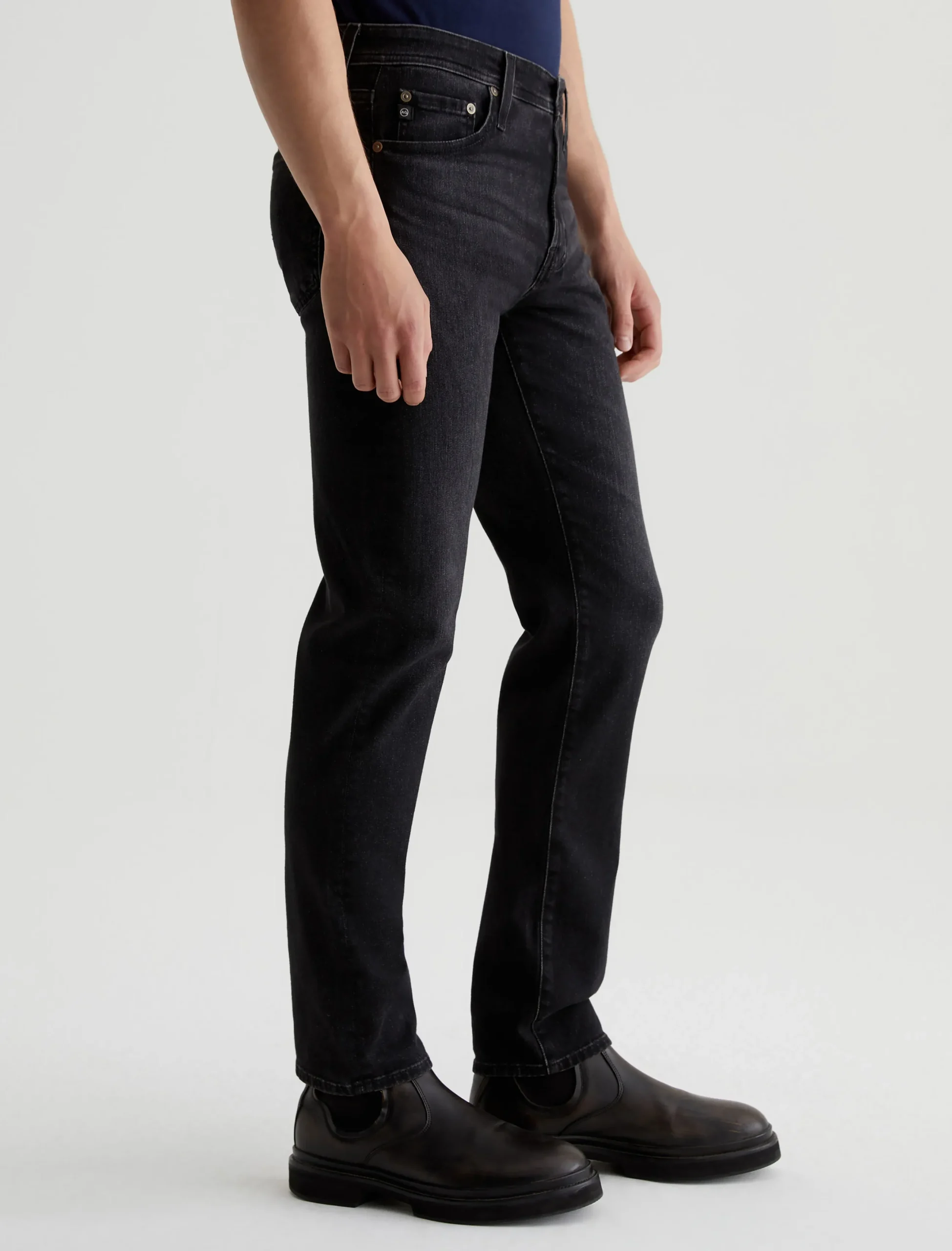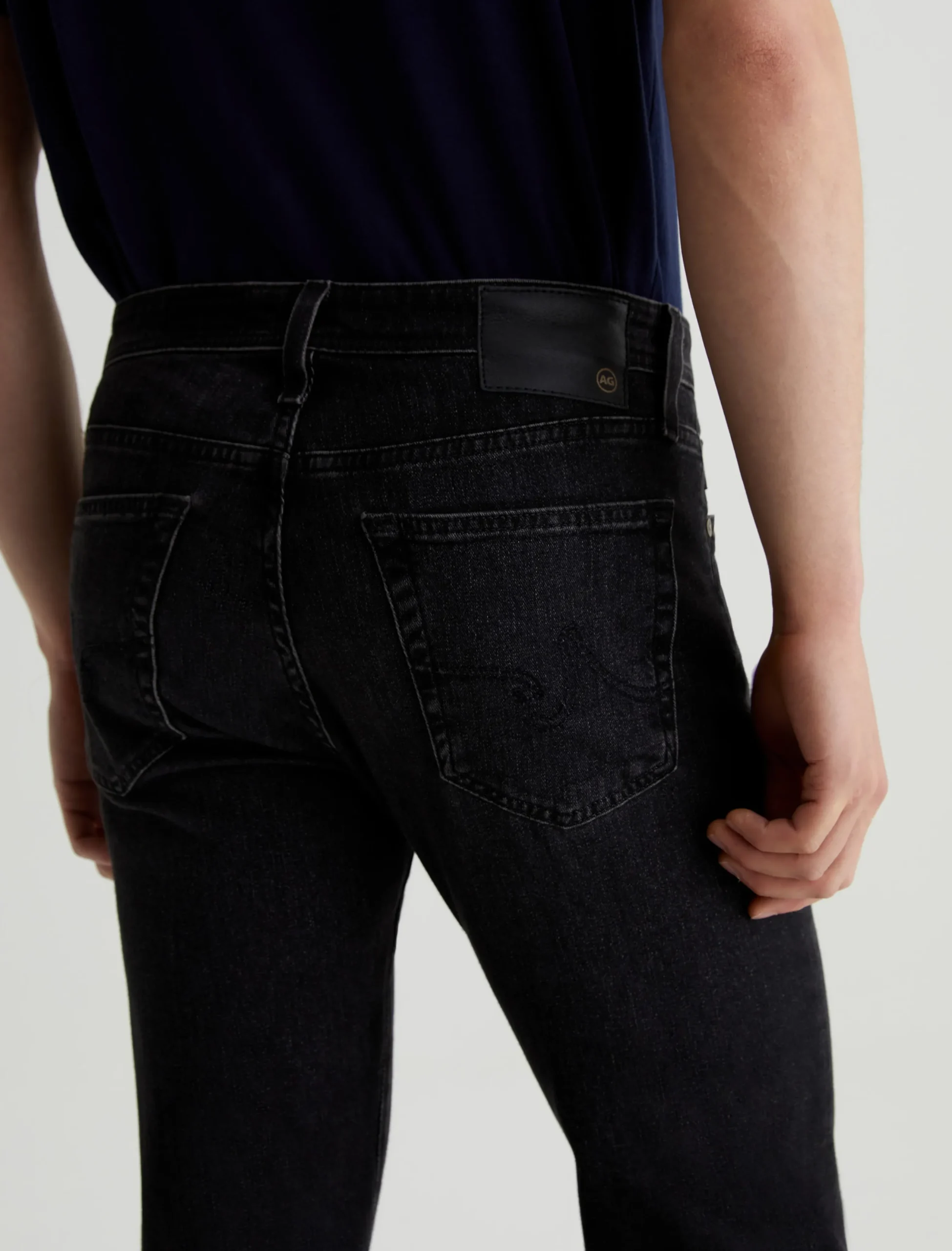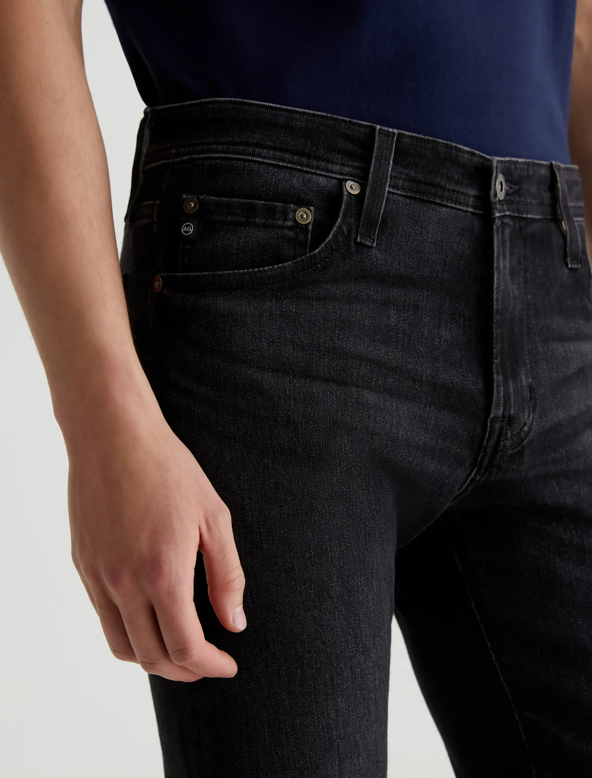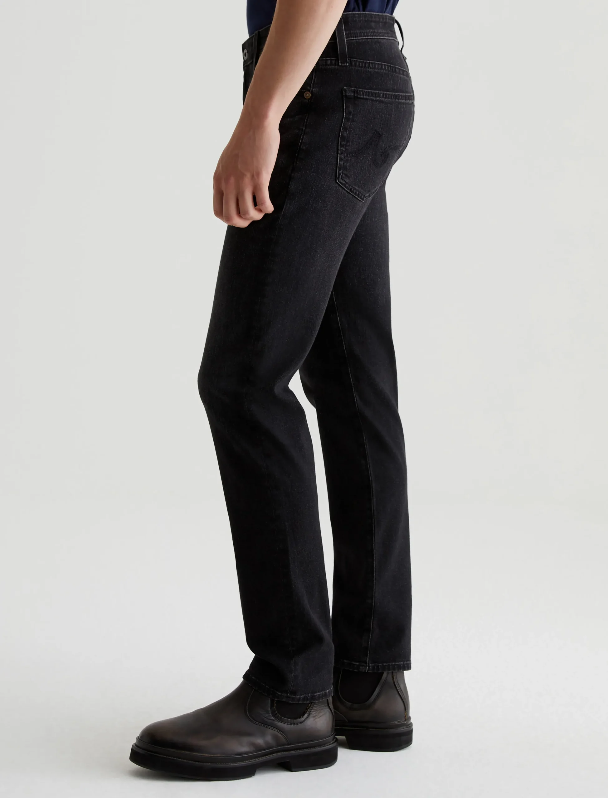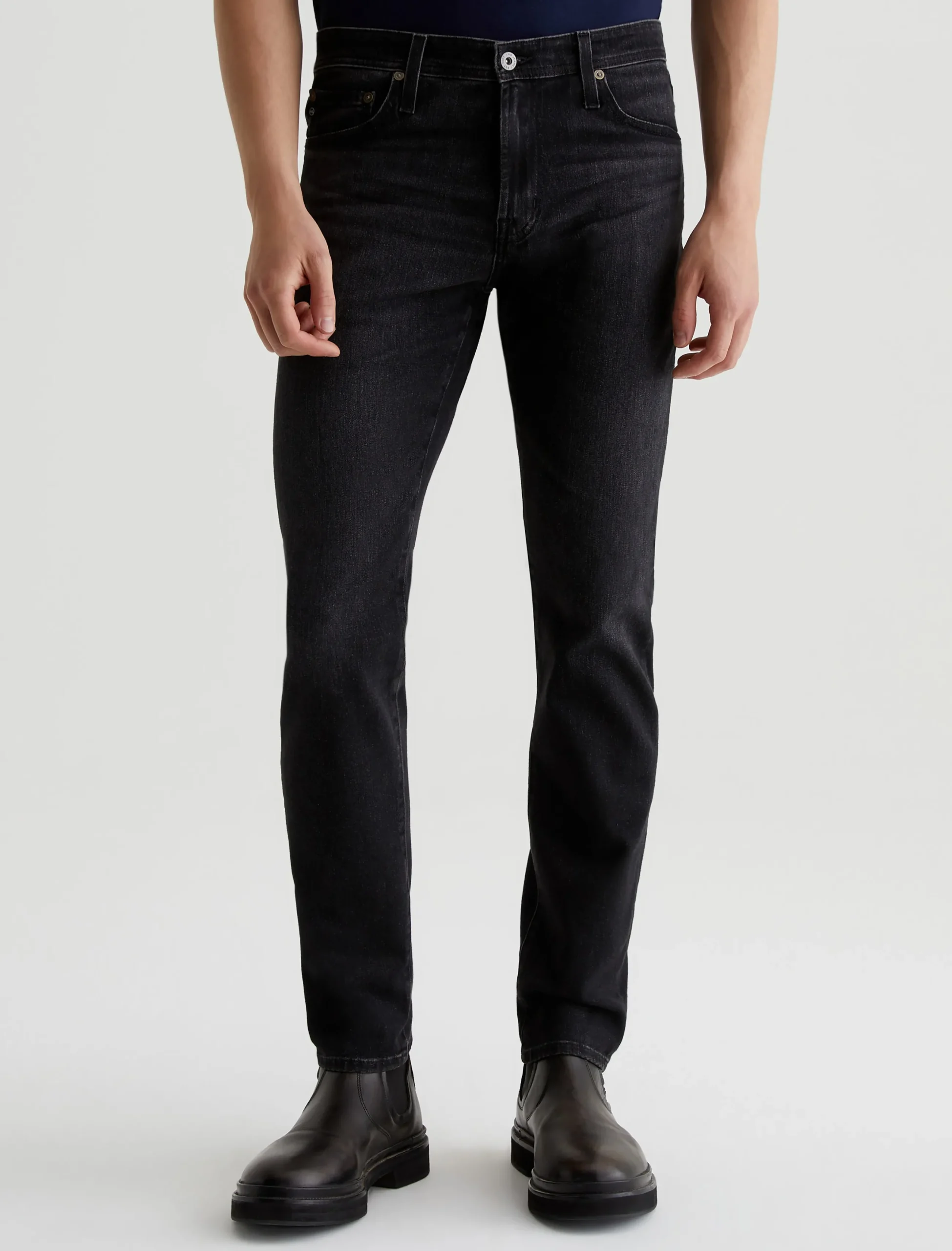 Tellis is a modern slim jean for men, updated here in 9.1 oz. Hypersoft Black denim with added stretch for premium comfort. Subtle fading and whiskering give these slim black jeans a naturally worn-in character. The five-pocket style has a fitted upper block and a tapered leg opening.