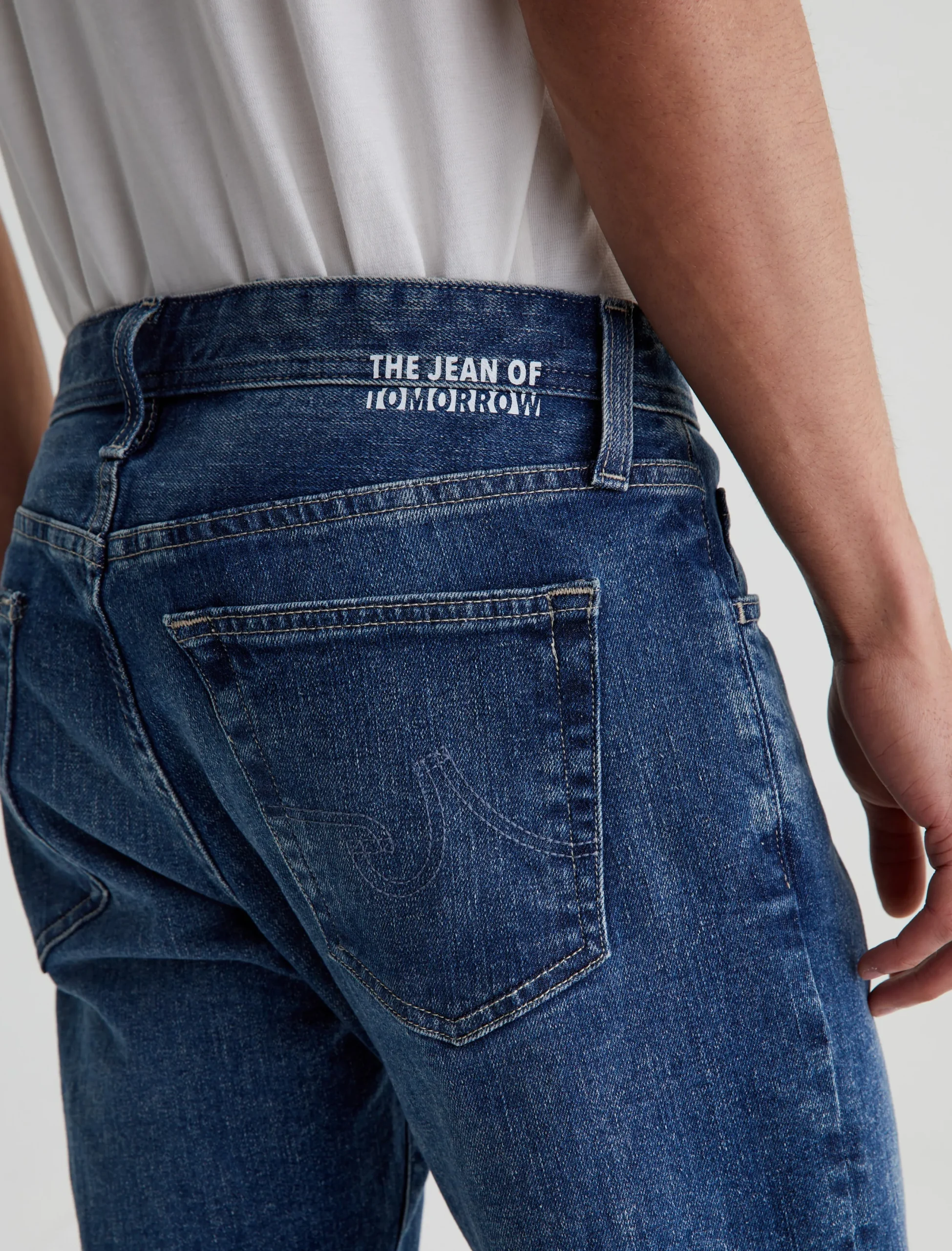 The Tellis modern slim fit is defined by a fitted upper block and a tapered leg opening. Part of our Circular Denim initiative from The Jean of Tomorrow™ collection, this pair comes in 12.5 oz. Revival Denim made from recycled AG jeans. It’s a soft cotton blend with a bit of stretch and a faded medium indigo wash.
