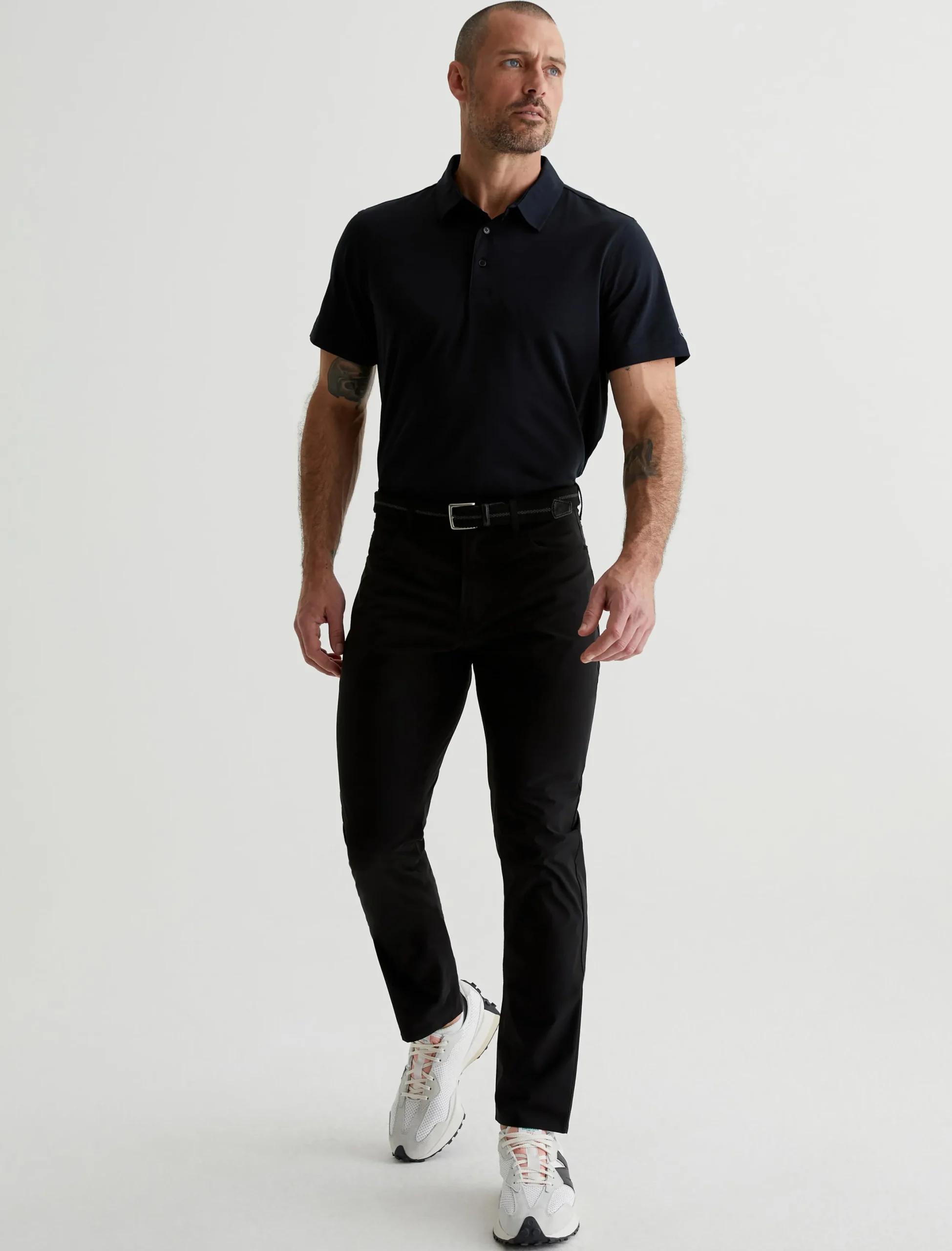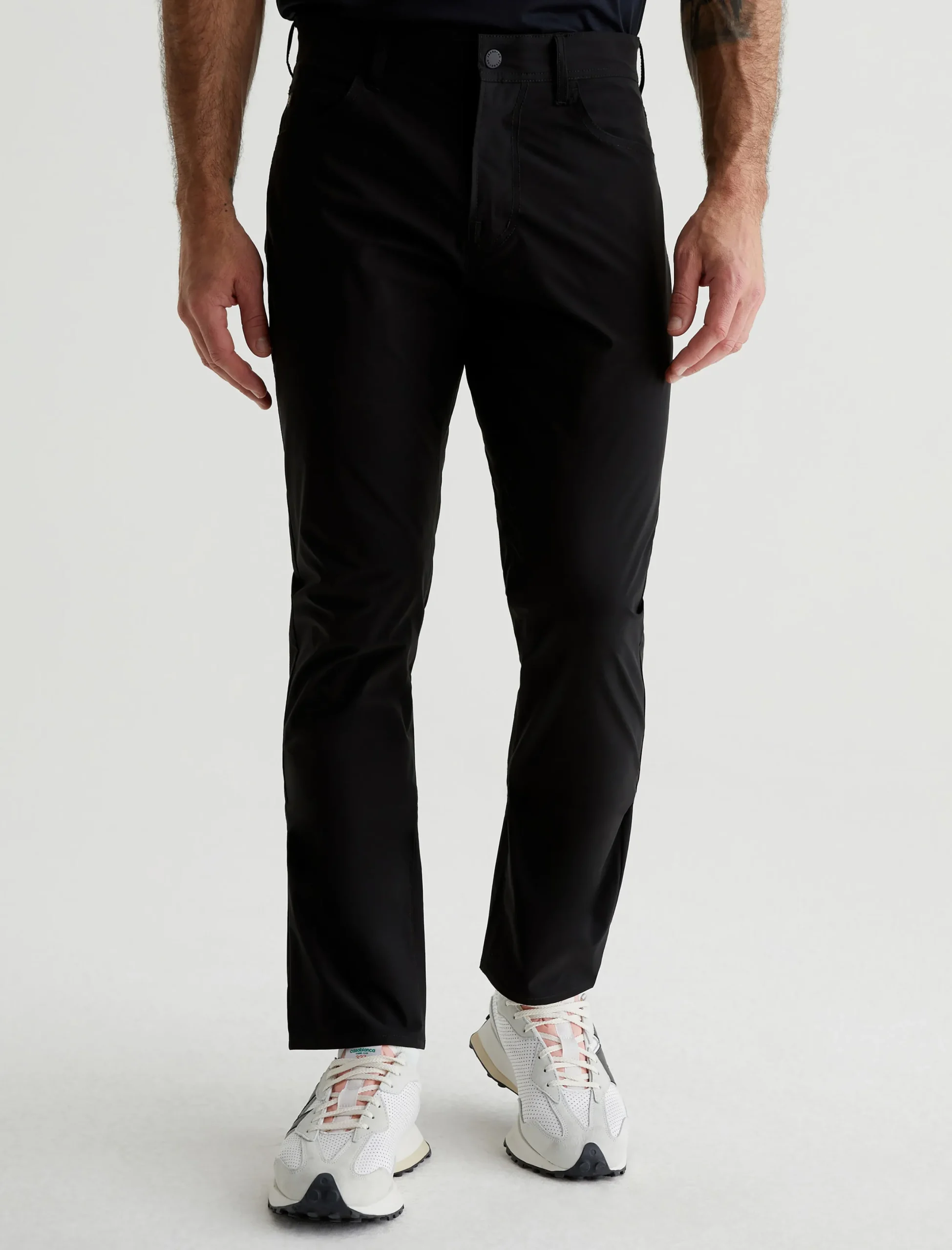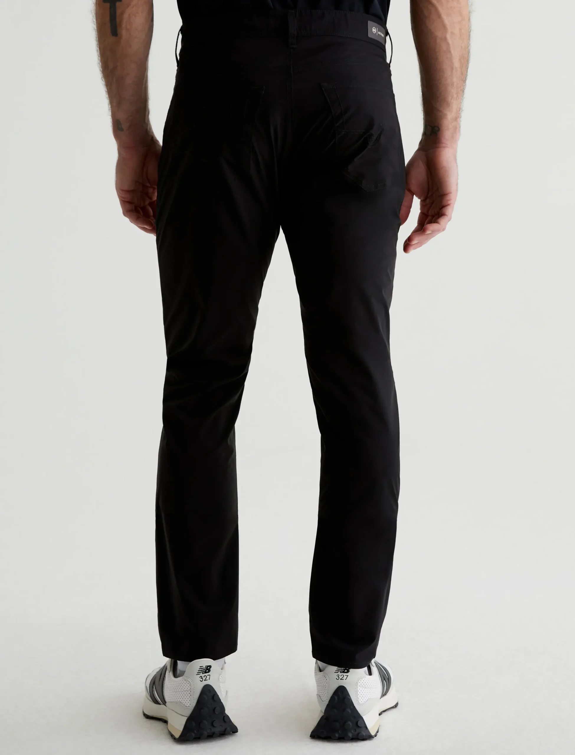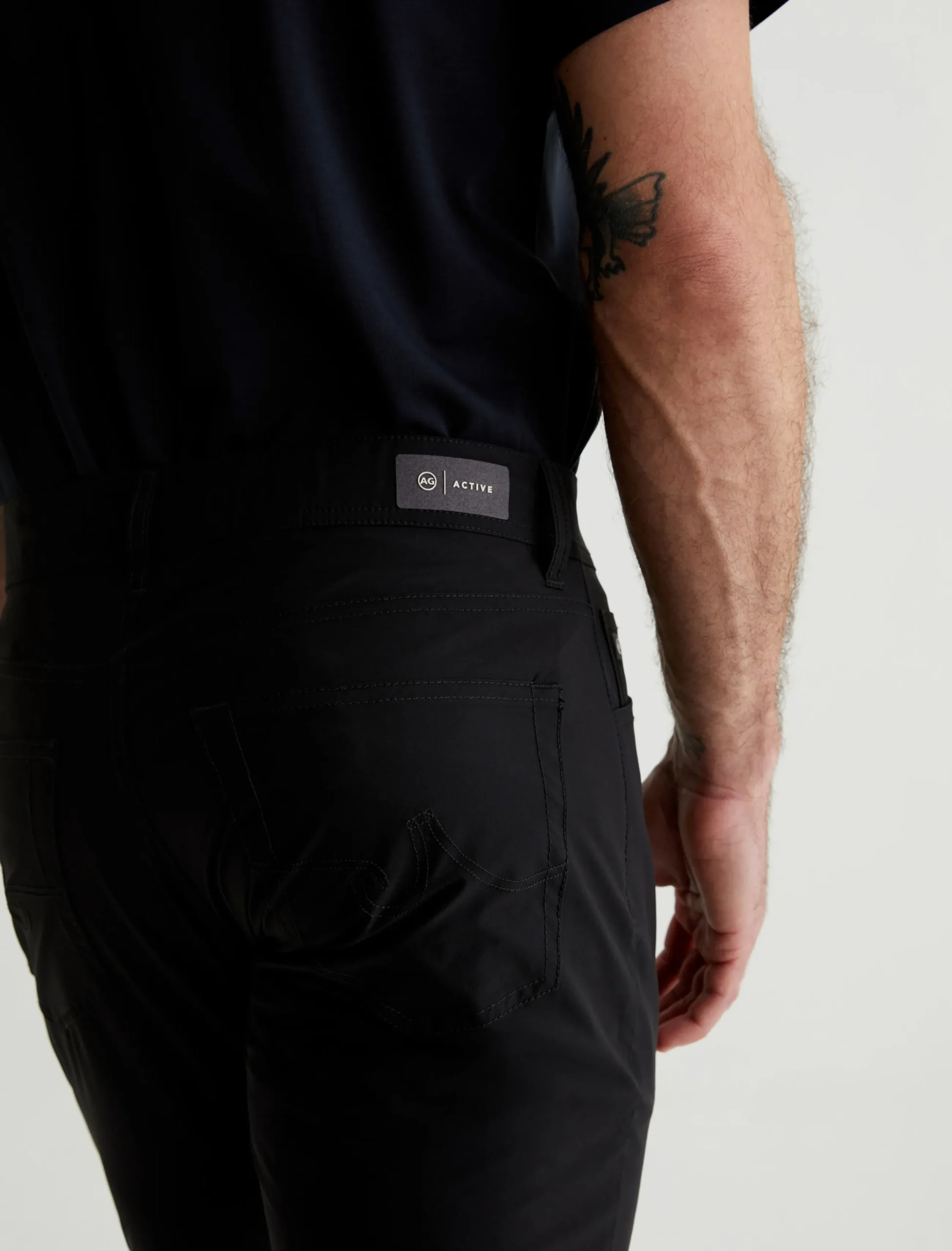 Our signature modern slim, updated for maximum mobility. The Tellis Active Performance pants feature a fitted upper block and slim legs with a tapered finish, plus an elastic interior waistband and snap closure. Made from 360° Lightweight Endurance Woven fabric in black, it’s got bi-stretch construction that’s quick drying, water resistant, and avoids wrinkling. A silicone heat transfer logo brands the back waistband.