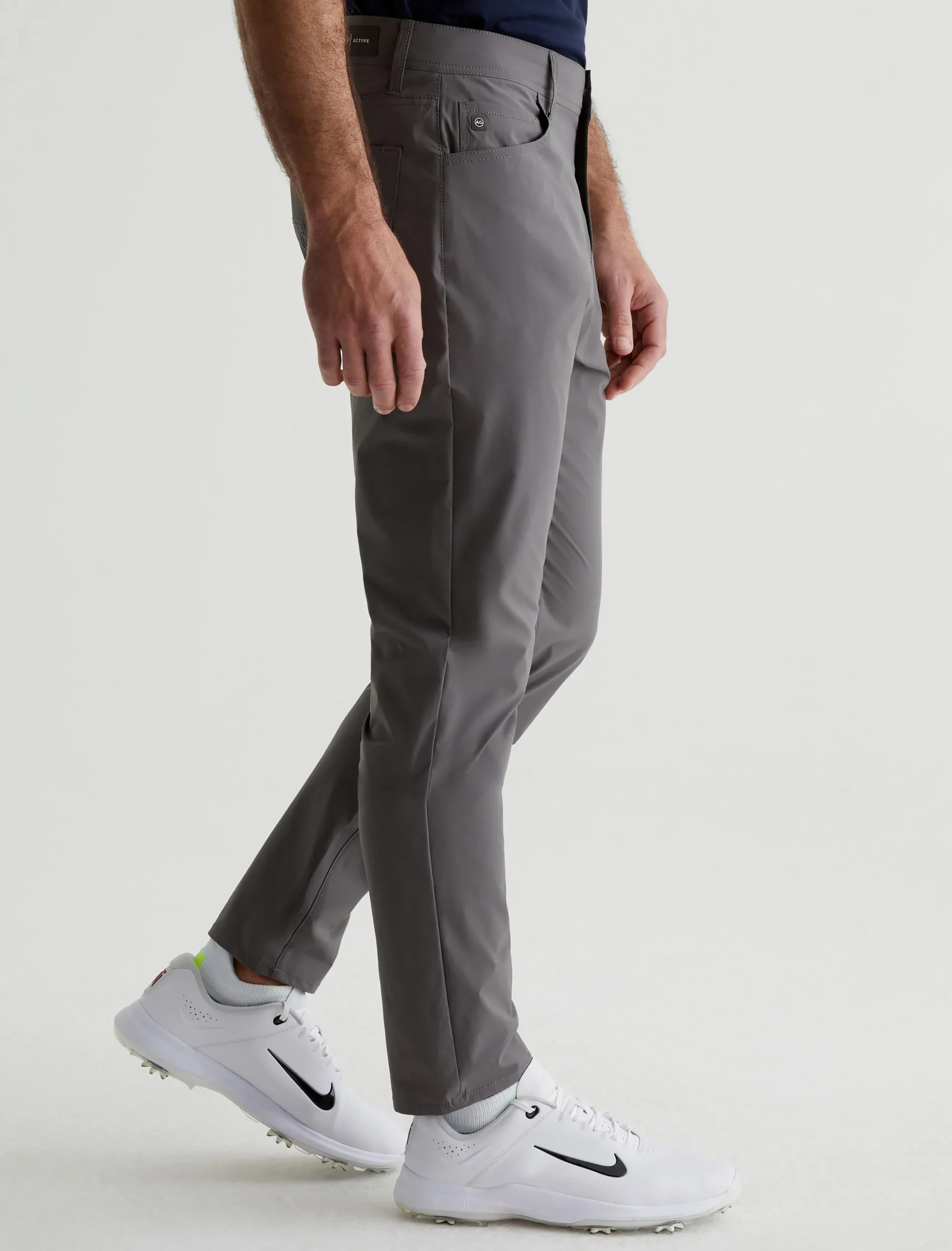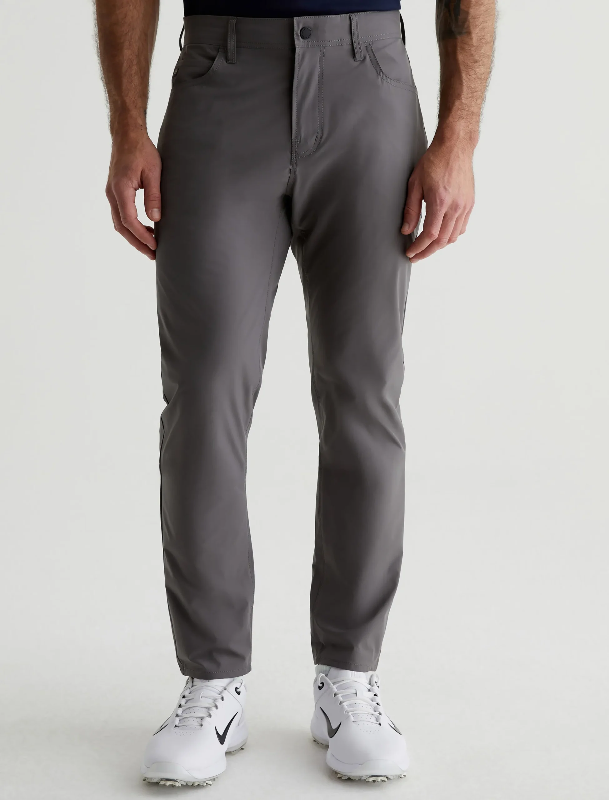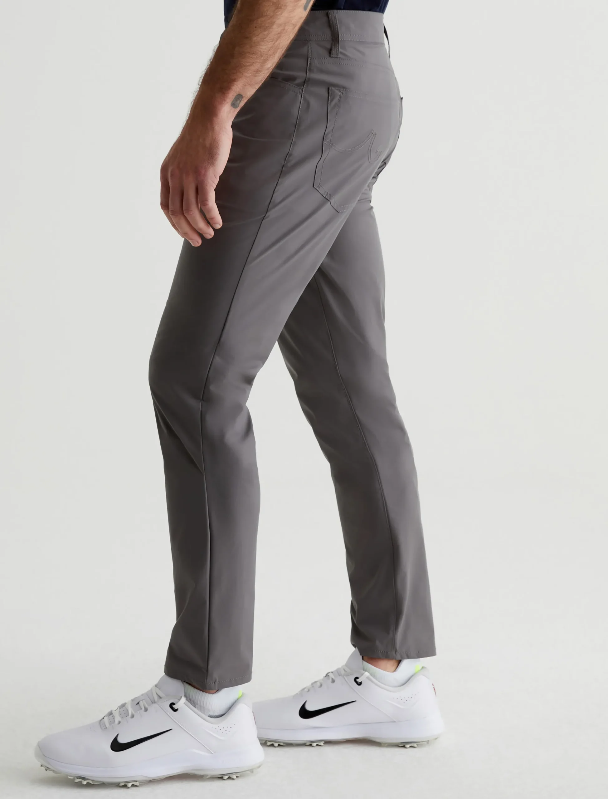 Our signature modern slim, updated for maximum mobility. The Tellis Active Performance pants feature a fitted upper block and slim legs with a tapered finish, plus an elastic interior waistband and snap closure. Made from 360° Lightweight Endurance Woven fabric in grey, it’s got bi-stretch construction that’s quick drying, water resistant, and avoids wrinkling. A silicone heat transfer logo brands the back waistband.