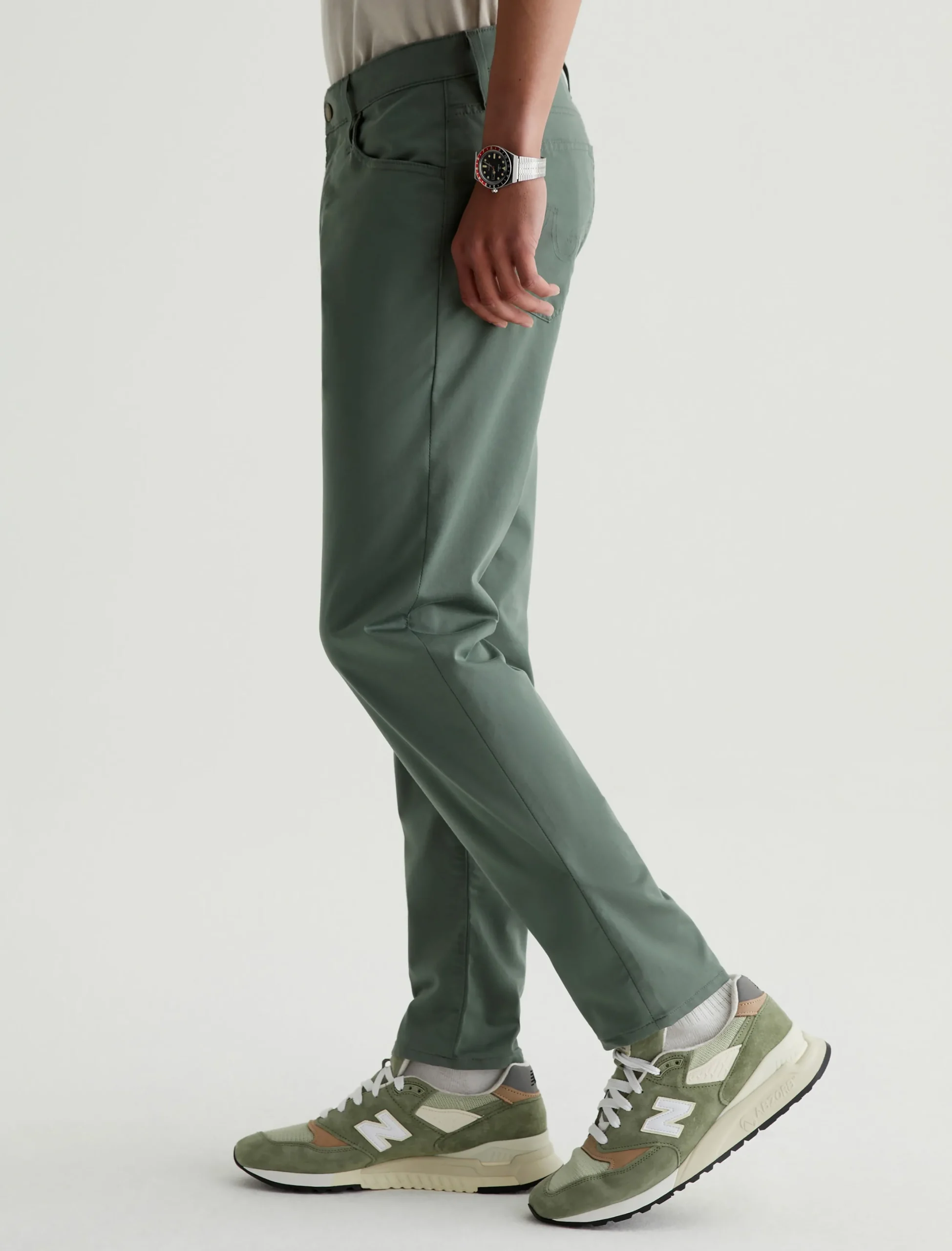The Tellis Performance pants feature our signature modern slim fit in exclusive 5.9 oz. Airluxe™ Commuter Performance Sateen. Updated here in a spring green shade, the fabric has a soft, refined texture and premium stretch for enhanced mobility. With a fitted upper block and tapered leg opening, these five-pocket men’s pants offer equal parts style and comfort to keep your look elevated in any situation.