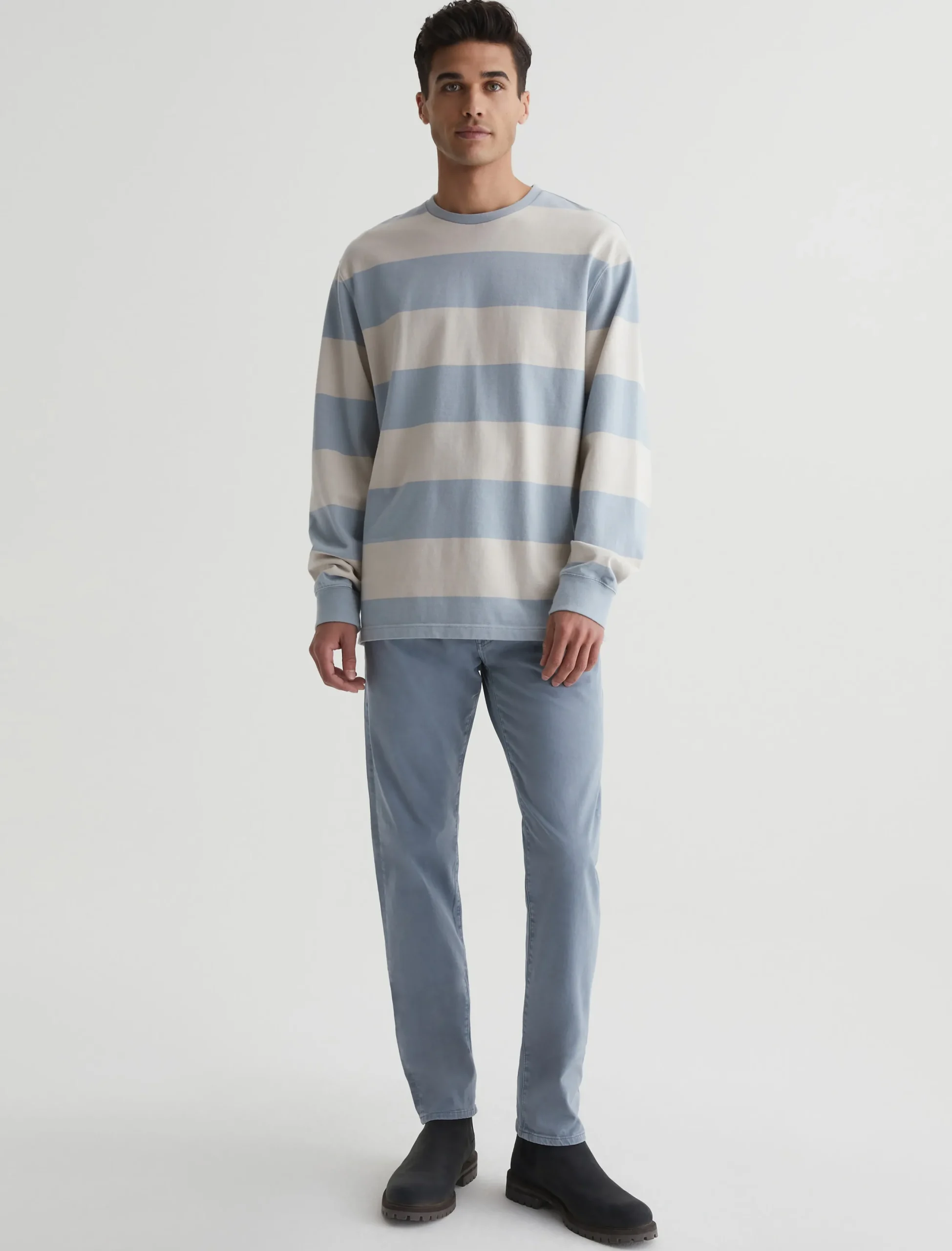 Tellis is our modern slim fit for men, updated here in a sulfur-dyed shade of blue with a gently faded look. The style has a fitted upper block and tapered leg opening. These five-pocket men’s pants are cut from lightweight 8.4 oz. Sueded Stretch Sateen from Italy—it’s soft, refined, and incredibly comfortable.