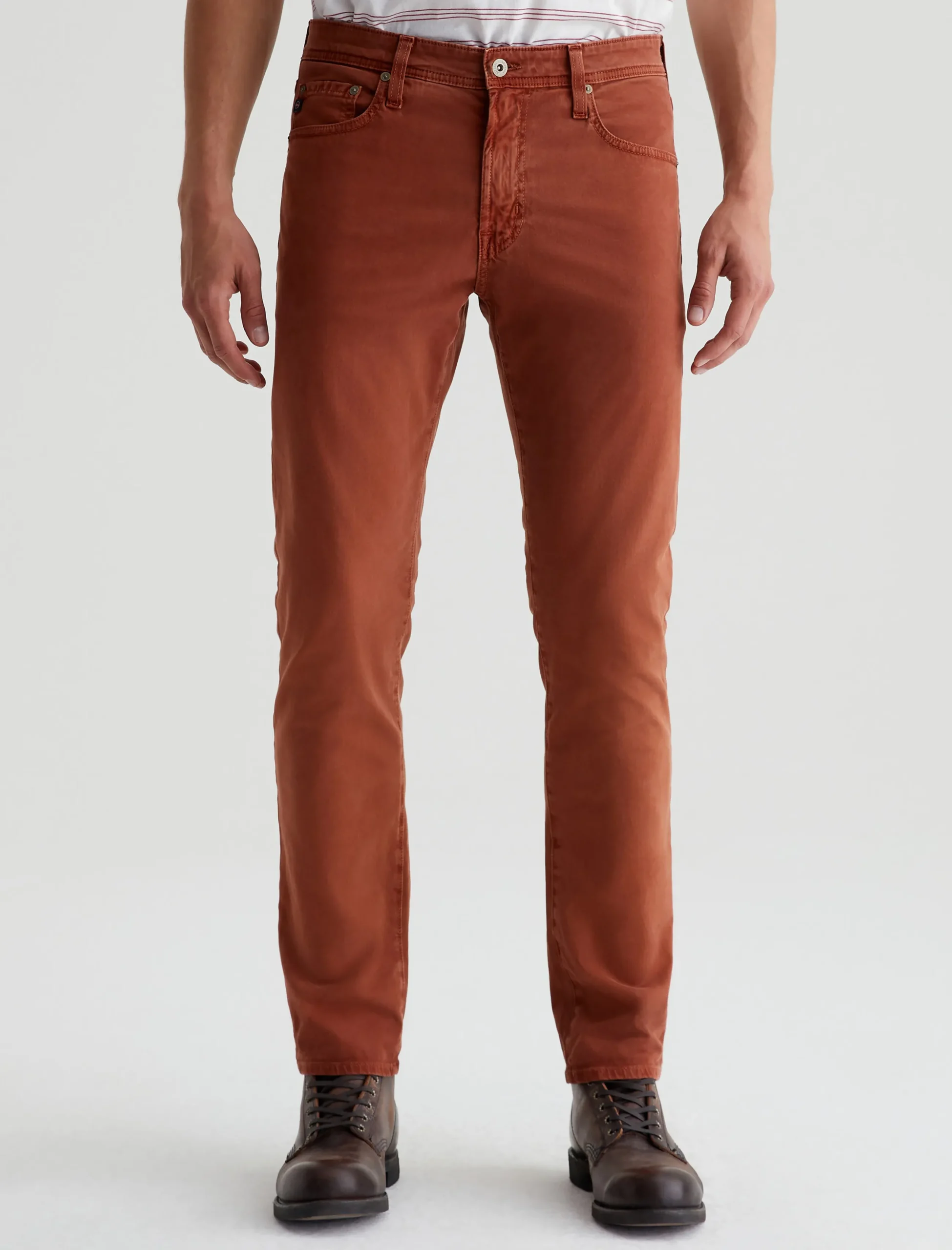 Tellis is our modern slim fit with a fitted upper block and a tapered leg opening. Sulfur-dyed for a faded cinnamon-red shade, these five-pocket men’s pants are soft, refined, and incredibly comfortable in lightweight Sueded Stretch Sateen from Italy.